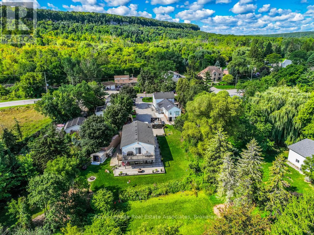 Welcome to 79 Tremaine Road, where country charm meets modern convenience in perfect harmony. Nestled on the outskirts of Milton, just moments from the scenic Kelso Conservation Area, this captivating property offers the best of both worlds-tranquil rural living with easy access to all the amenities the town has to offer. Step inside the main century-old home and be greeted by the warmth of rustic hardwood flooring that flows through the inviting living room. A bright and airy office at the front of the home provides the perfect workspace, while a well-appointed four-piece bathroom adds to the homes functionality. Upstairs, two generously sized bedrooms and an additional bathroom provide comfort and space for the whole family. At the heart of the home, the expansive open-concept dining room and kitchen create an inviting atmosphere for gatherings. A striking wood ceiling, stainless steel appliances, and a convenient side entrance enhance this space, blending character with modern updates. But the real showstopper? A breathtaking primary suite that exudes elegance and tranquility. Featuring soaring wood cathedral ceilings, skylights, and an abundance of natural light, this retreat is nothing short of spectacular. California shutters throughout the home offer an extra touch of sophistication. And just when you think it cant get any better-it does! This property also boasts an impressive 25' x 50' heated workshop, equipped with two 60-amp electrical panels to support all your business, hobby, and entertainment needs. The upper level of this versatile space is a fully finished entertainment oasis, complete with laminate flooring, pot lights, a balcony, heating and air conditioning, a 3pc bathroom, wet bar, games room, and a dedicated movie room. To top it all off, the stunning views of the Niagara Escarpment provide an ever-changing backdrop of natural beauty, making this home a rare gem. Plus, the deleted 401 bridge, now has traffic on Tremaine road down to a minimum. (id:51158)
