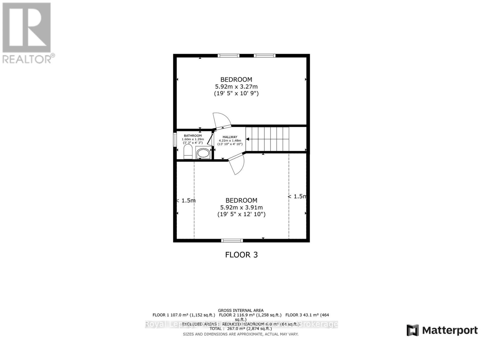 3.1 m x 2.9 m |