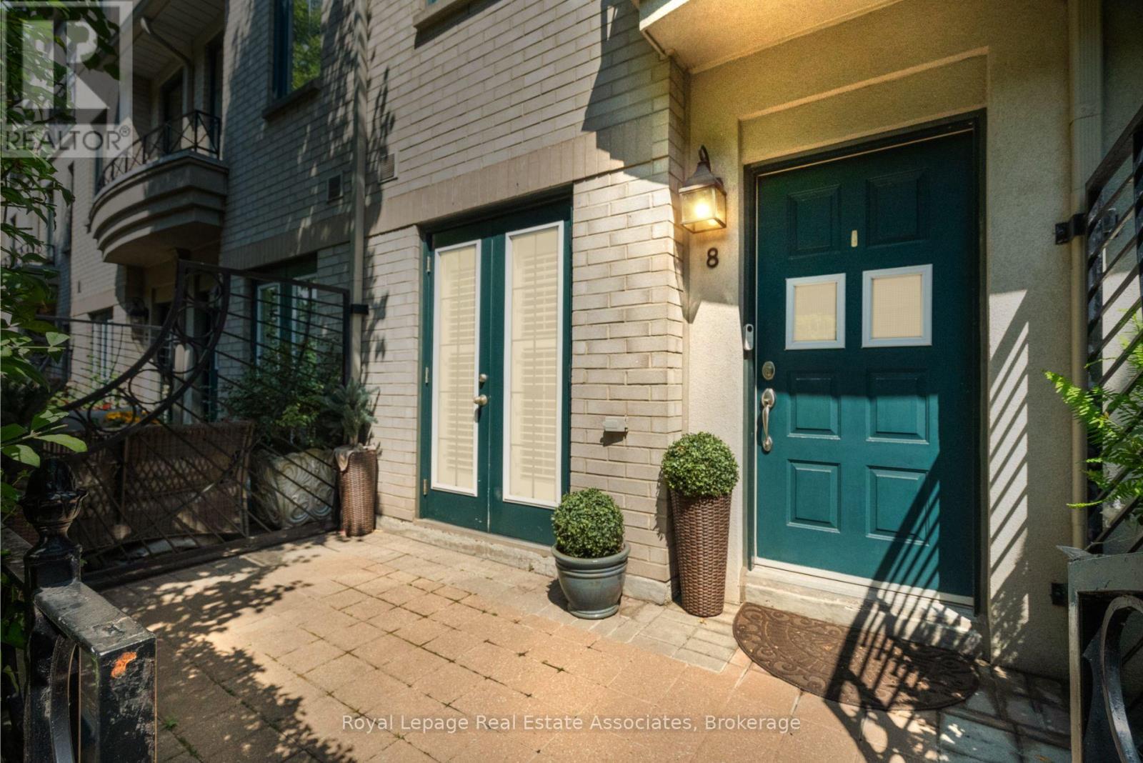 Welcome To #8 1 Baxter Street, A Rarely Offered Condo Townhome In The Gated Courtyards Of Rosedale, One Of Torontos Most Prestigious Neighbourhoods & walking distance to Yorkville's upscale shopping &fine dining. Offering Over 1,800 Sq. Ft. Of Refined Living Space, This 3+1 Bedroom, 3 Bathroom HomeWelcomes You Through A Tranquil Shared Courtyard Lined With Terraces And Mature TreesA Private OasisIn The Heart Of The City. The Front Terrace, Just Off The Beautifully Appointed Kitchen, Is Perfect ForMorning Coffee. Inside, The Open-Concept Main Level Features Granite Waterfall Countertops, Built-InAppliances, A Large Peninsula, And Direct Walkout To The Terrace, Seamlessly Flowing Into The Dining AndLiving Areas With A Juliette BalconyIdeal For Entertaining. The Second Level Hosts Two Bright BedroomsAnd A 4-Piece Bath, While The Third Floor Is A True Retreat With A Primary Suite Boasting Soaring Ceilings,A Walk-In Closet, And A Spa-Like 5-Piece Ensuite With Soaker Tub, Glass Shower, And Double Vanity.Above, A Loft With Walkout To The Rooftop Terrace Provides A Perfect Home Office Space. The Lower LevelOffers An Additional Bedroom, 3-Piece Bath, Laundry Closet, And Direct Garage Access. Steps To Budd Sugarman Park, Ramsden Park, Art Galleries, Top Schools, TTC, Shops, And Restaurants, This ExclusiveResidence Offers A Lifestyle Of Sophistication, Privacy, And Urban Convenience You Wont Want To Miss. (id:51158)