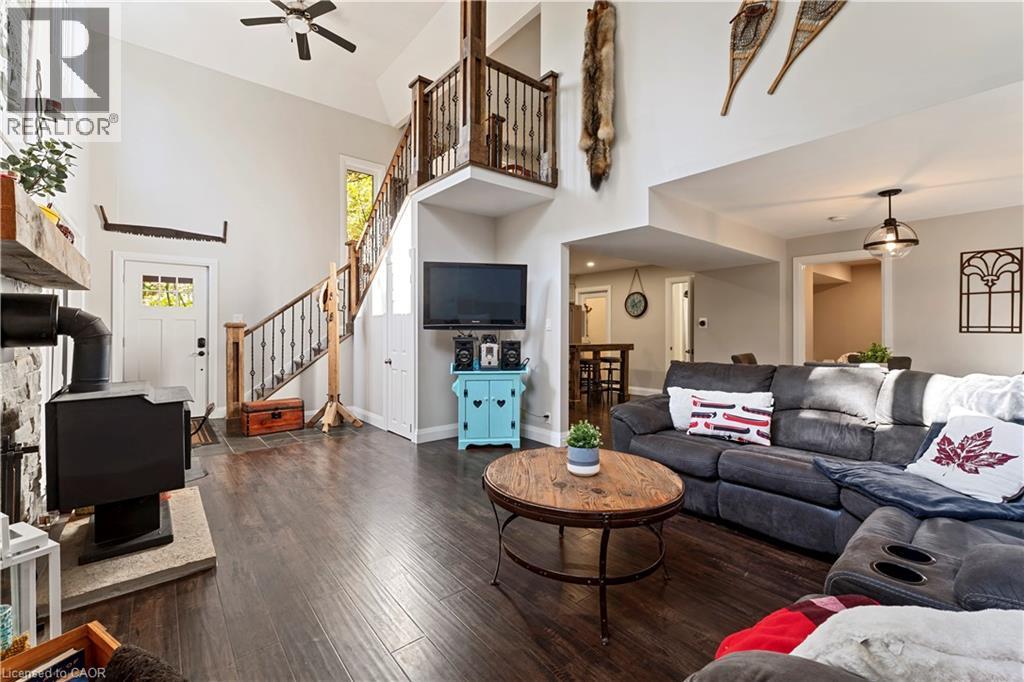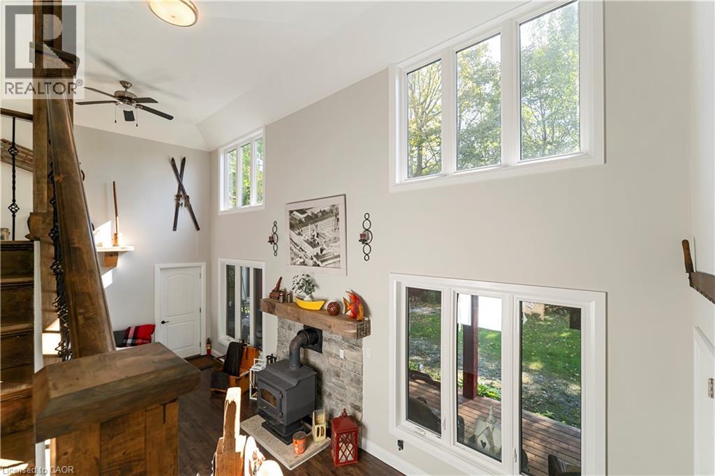 Welcome to this beautiful 3-bedroom bungaloft in the sought-after Mallory Beach community. Offering year-round living or the perfect luxury getaway, this home combines comfort, character, and natural beauty. The main floor features a bright open-concept layout with soaring ceilings, a cozy woodstove in the living room, and a spacious primary bedroom. A full bathroom on the main level adds everyday convenience, while the loft offers two additional bedrooms, a 2-piece bath, and a private deck - an ideal retreat for kids or overnight guests. Just steps away, enjoy access to Colpoys Bay with its clear, sparkling waters - perfect for swimming, paddling, watching the sunrise or simply soaking in the spectacular scenery. Thoughtfully maintained and offered furnished (along with some household items), this home is ready for you to move in and enjoy. The wraparound deck, inviting front porch with swing, firepit, and oversized shed make outdoor living just as enjoyable as the indoors. Backing onto the escarpment and close to Bruce Trail access, it’s the perfect setting for nature lovers. Enjoy the quiet surroundings while still being only minutes from downtown Wiarton and its amenities. Whether you’re looking for a home away from home or a peaceful year-round residence, this property offers it all- with a furnace and woodstove to keep you cozy in every season. (id:51158)