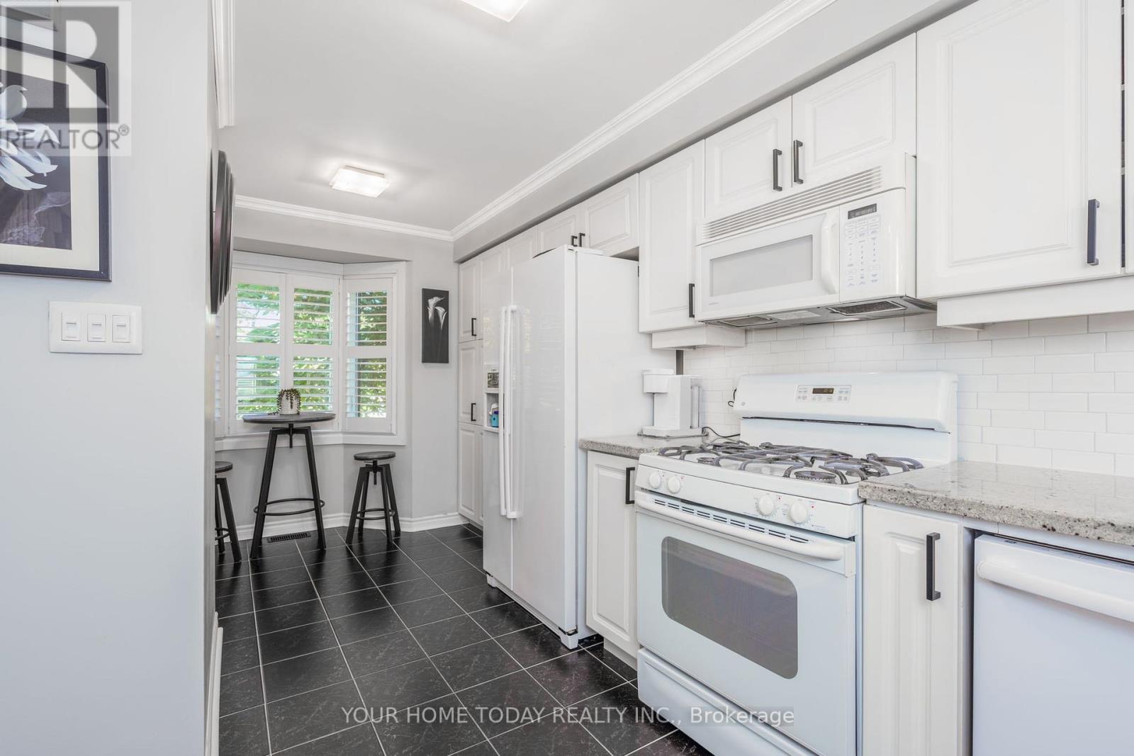$750 MonthlyWelcome to this lovely end unit townhouse located in the prestigious Georgetown Estates, an exclusive enclave of executive townhomes nestled amidst mature grounds with the complex backing on to conservation governed land for added privacy. Lovely landscaping and a covered porch welcome you into this spacious 3-bedroom, 4-bathroom home with a walkout from the nicely finished lower level. The main level features a well-designed open concept floor plan with stylish flooring, crown molding, California shutters and tasteful decor. The well-designed kitchen offers neutral white cabinetry, granite counters, breakfast bar, large pantry, subway tile backsplash and breakfast area with bay window overlooking the quiet mature street. The living room overlooks the backyard and is open to a back foyer/entry offering added storage and access to an updated powder room and the deck (perfect for barbequing). A staircase from the deck to the yard is a bonus! The upper level offers 3 good-sized bedrooms, 2 full bathrooms and laundry. The primary suite enjoys a large walk-in closet and luxurious 4-piece with soaker jet tub and glass enclosed shower. The finished lower level adds to the living space with large L shaped rec room boasting hardwood flooring, gas fireplace, pot lights and walkout to the patio and beautifully landscaped fenced yard with no home directly behind! A 2-piece bathroom and storage/utility space complete the package. A private heated in-ground community pool situated in a resort-like setting with an extensive patio area and lovely gardens add to the allure. Close to the charming and scenic village of Glen Williams, Credit River, trails, shops and more. Move in and enjoy sophisticated low-maintenance living in one of Georgetown's most desirable enclaves! (id:51158)
