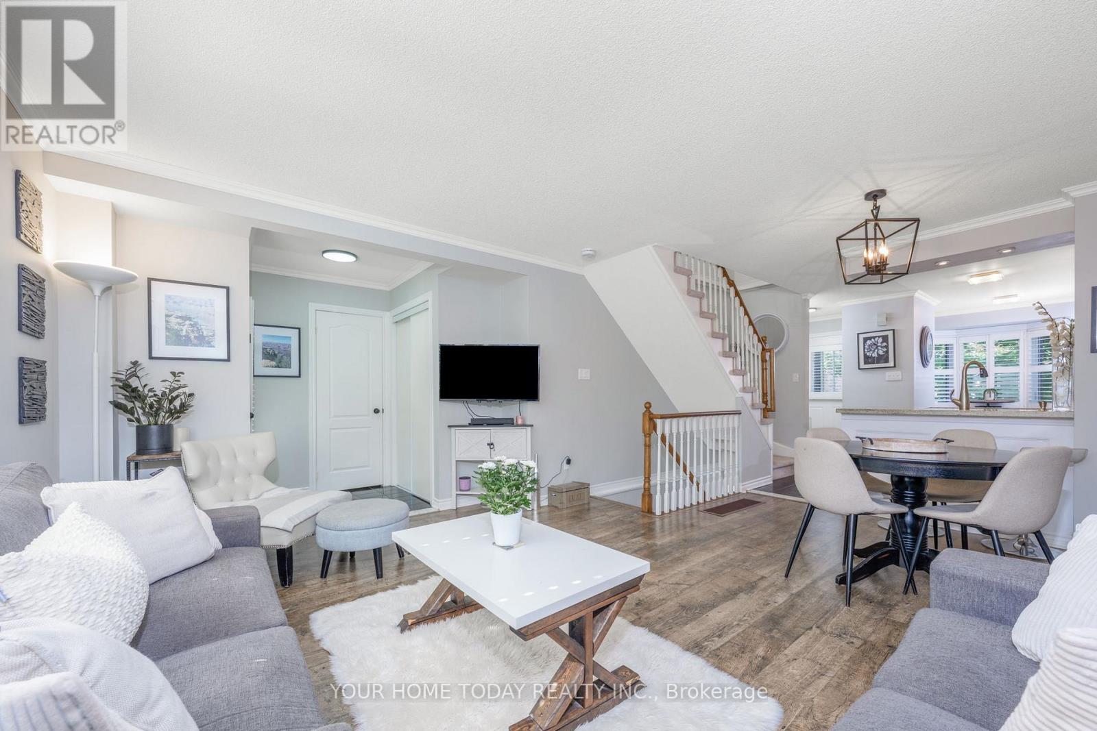$750 MonthlyWelcome to this lovely end unit townhouse located in the prestigious Georgetown Estates, an exclusive enclave of executive townhomes nestled amidst mature grounds with the complex backing on to conservation governed land for added privacy. Lovely landscaping and a covered porch welcome you into this spacious 3-bedroom, 4-bathroom home with a walkout from the nicely finished lower level. The main level features a well-designed open concept floor plan with stylish flooring, crown molding, California shutters and tasteful decor. The well-designed kitchen offers neutral white cabinetry, granite counters, breakfast bar, large pantry, subway tile backsplash and breakfast area with bay window overlooking the quiet mature street. The living room overlooks the backyard and is open to a back foyer/entry offering added storage and access to an updated powder room and the deck (perfect for barbequing). A staircase from the deck to the yard is a bonus! The upper level offers 3 good-sized bedrooms, 2 full bathrooms and laundry. The primary suite enjoys a large walk-in closet and luxurious 4-piece with soaker jet tub and glass enclosed shower. The finished lower level adds to the living space with large L shaped rec room boasting hardwood flooring, gas fireplace, pot lights and walkout to the patio and beautifully landscaped fenced yard with no home directly behind! A 2-piece bathroom and storage/utility space complete the package. A private heated in-ground community pool situated in a resort-like setting with an extensive patio area and lovely gardens add to the allure. Close to the charming and scenic village of Glen Williams, Credit River, trails, shops and more. Move in and enjoy sophisticated low-maintenance living in one of Georgetown's most desirable enclaves! (id:51158)