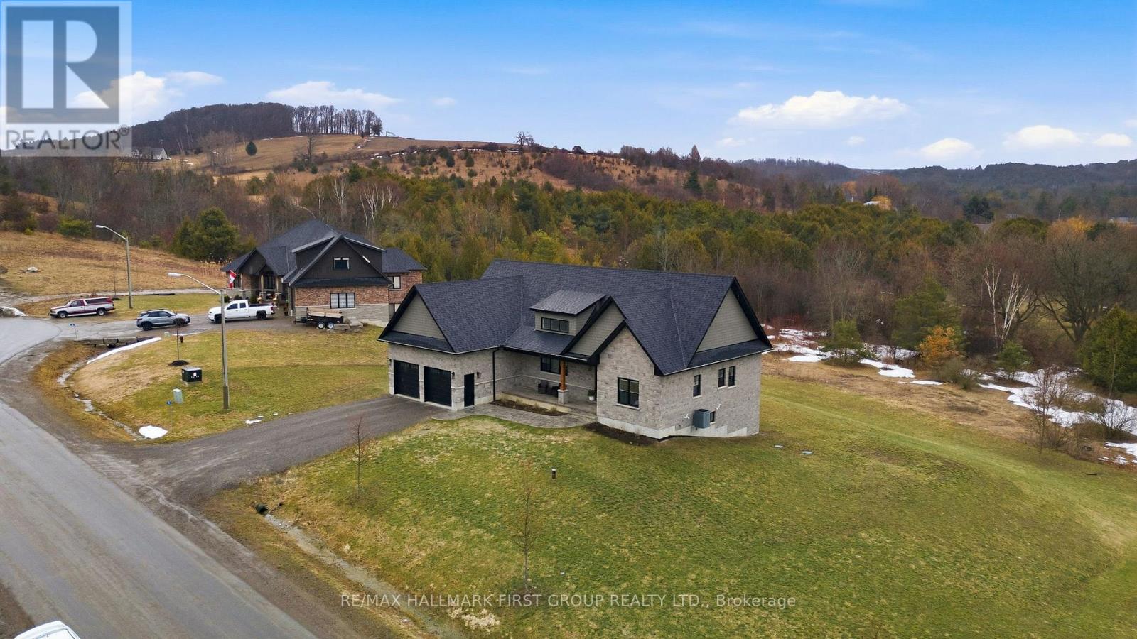 Set on a sun-filled 1 acre lot this 2,050+ sq ft bungalow offers a fully finished, 3 + 2 bed, 3.5 bath, walk-out floor plan combined with a calm country feel just 10 minutes from Cobourg & Highway 401. From the stone and brick exterior, oversized two-car garage with insulated doors, stamped concrete walkway and a covered front porch, the home welcomes you into an open-concept main floor designed for everyday living and gathering! With hardwood flooring throughout the main level, 9 foot ceilings, and pot lighting guiding you through a spacious living room anchored by a gas fireplace & built-in shelving, and walkout to the upper level deck! Appreciate a formal dining area, and the expansive, executive kitchen with double height cabinets, floor-to-ceiling pantry, a bright transom window, stainless steel appliances, pot filler, built-in wine fridge & microwave, quartz counters, a large centre island island and plenty of room to move. Overlooking both the living & dining room, this is truly the heart of the home. The private primary suite is set apart with a walk-in closet and stunning 5pc. ensuite featuring double sinks, a glass and tile shower, and separate soaker tub, while two additional bedrooms and a full 4pc. bath offer comfortable space for family or guests on the other side of the home! Appreciate a practical mudroom with built-in storage, inside entry to the garage, 2-piece powder room, and separate main floor laundry with custom cabinets, utility sink & quartz counters. The lower level is finished, with a walkout to the stamped concrete patio, 2 additional bedrooms, a 4pc. bathroom in addition to an expansive rec room and ample storage. A premier location, a friendly street and a backyard that invites quiet mornings, evening sunsets, and room to grow, all within reach of town conveniences. A home that balances space, comfort, and location-ready to fit your next chapter. (id:51158)