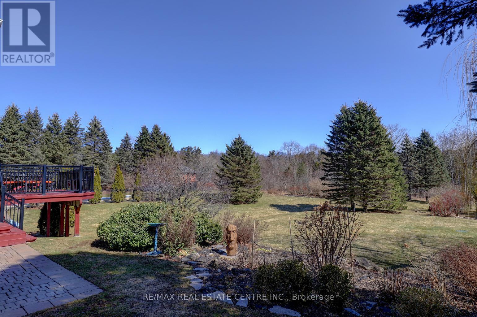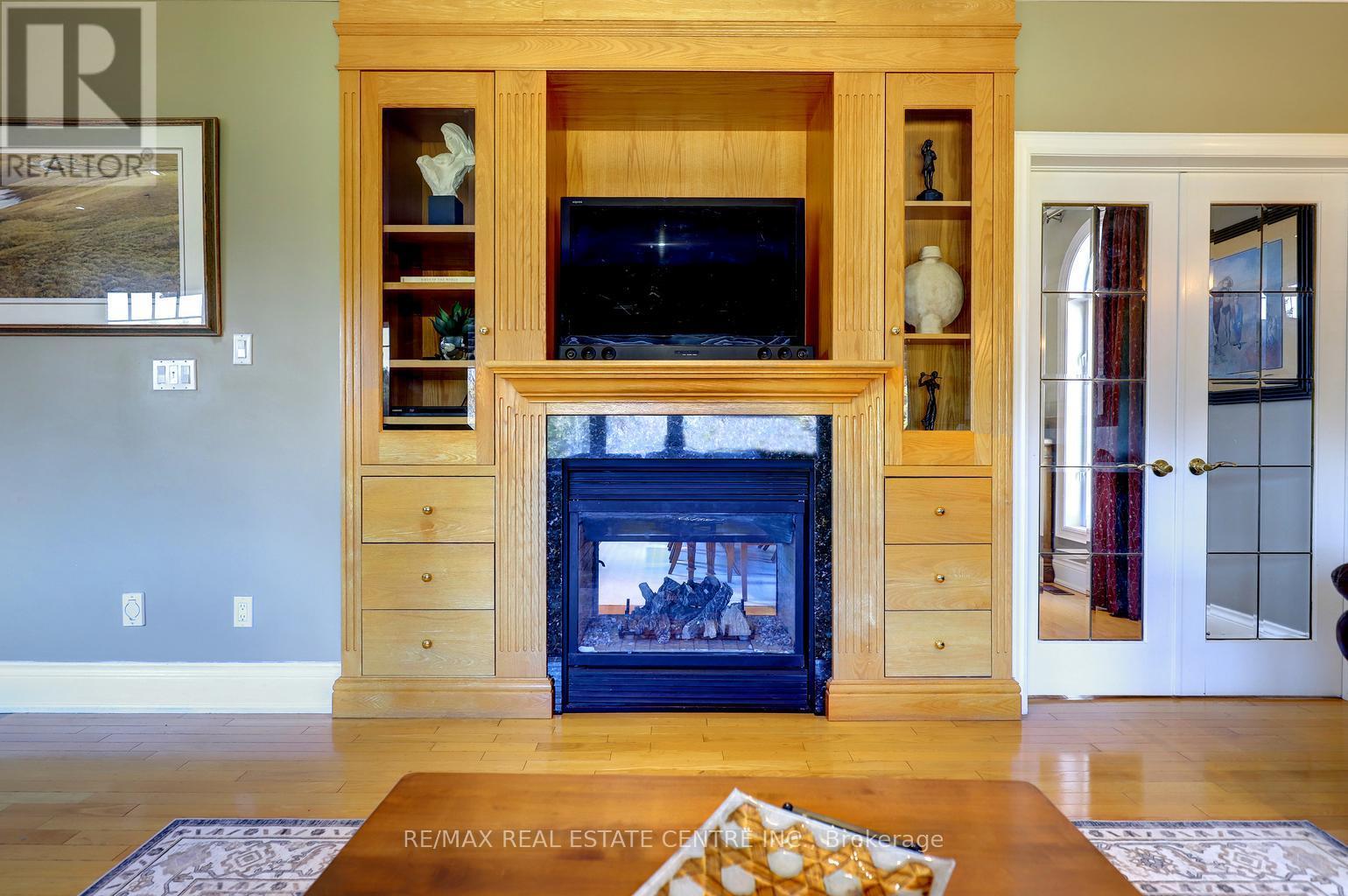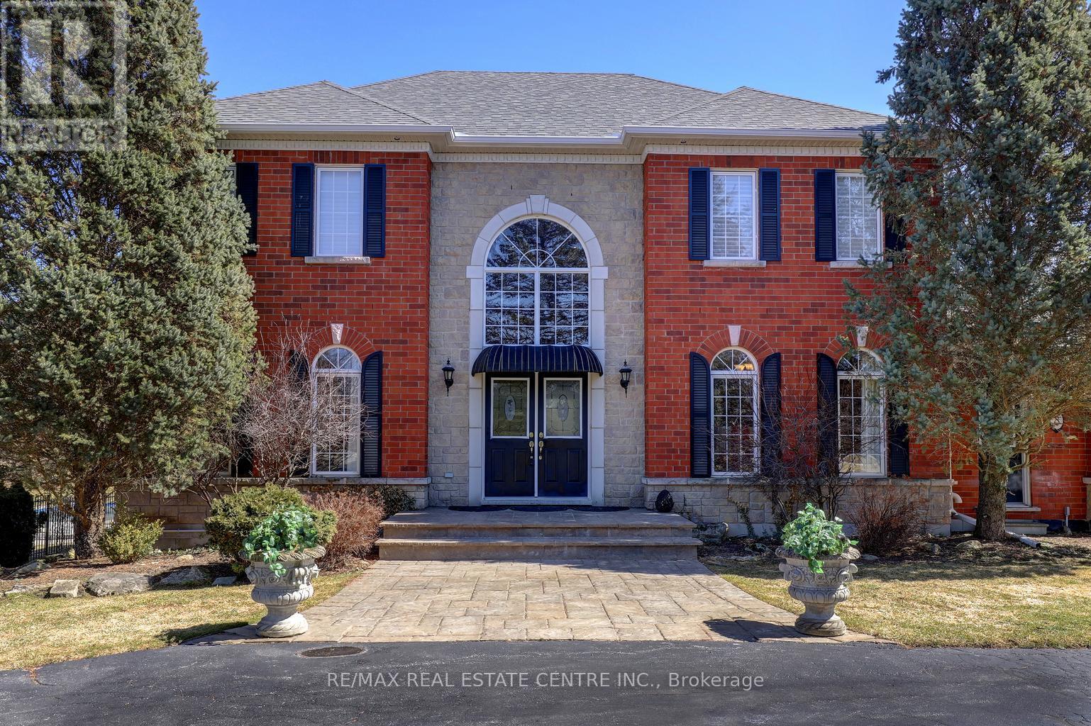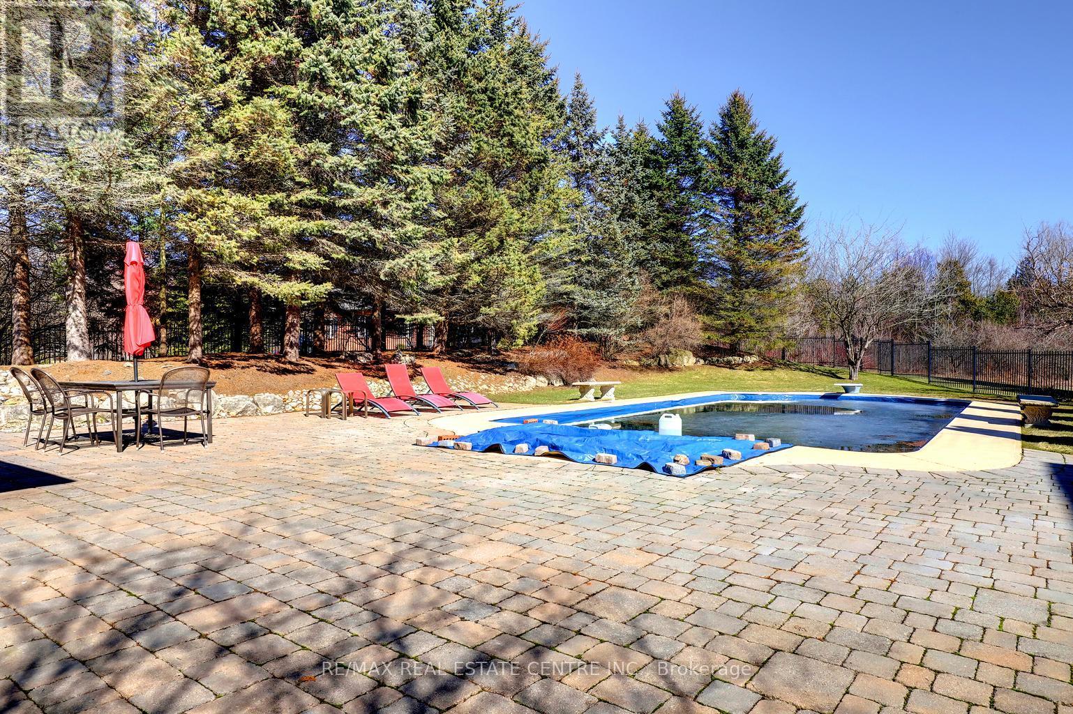 Welcome home. Set on a premium lot in a sought-after Halton Hills enclave, 8 Deer Run Crescent offers a rare opportunity to own a spacious executive residence in an established community. With timeless curb appeal and a private backyard featuring a pool, cabana, and mature trees, the exterior provides exceptional outdoor living. The property spans nearly 4 acres, including a portion of protected conservation land, offering a natural setting with added privacy. The home offers approximately 3,100 sq ft above grade, plus a finished walkout lower level, with a functional layout and generous principal rooms, presenting an opportunity to personalize the space. The main level features 9-ft ceilings, hardwood flooring, crown moulding, and a double-sided fireplace. The kitchen includes granite counters, travertine backsplash, built-in appliances, and walkout to a deck with gas BBQ hookup and awning. A mudroom with laundry and access to the oversized 3-car garage adds convenience. Upstairs offers four bedrooms, including a primary suite with fireplace, walk-in closet, and 5-piece ensuite. The finished walkout lower level provides additional living space with large windows, fireplace, wet bar, and bedroom with ensuite, suitable for extended family or guests. Additional features include a thermal-heated pool, pool house, landscaped grounds, irrigation system, and recent updates such as roof and eavestrough improvements. Conveniently located near Milton, Guelph, and Acton, with access to amenities, schools, and commuter routes. (id:51158)