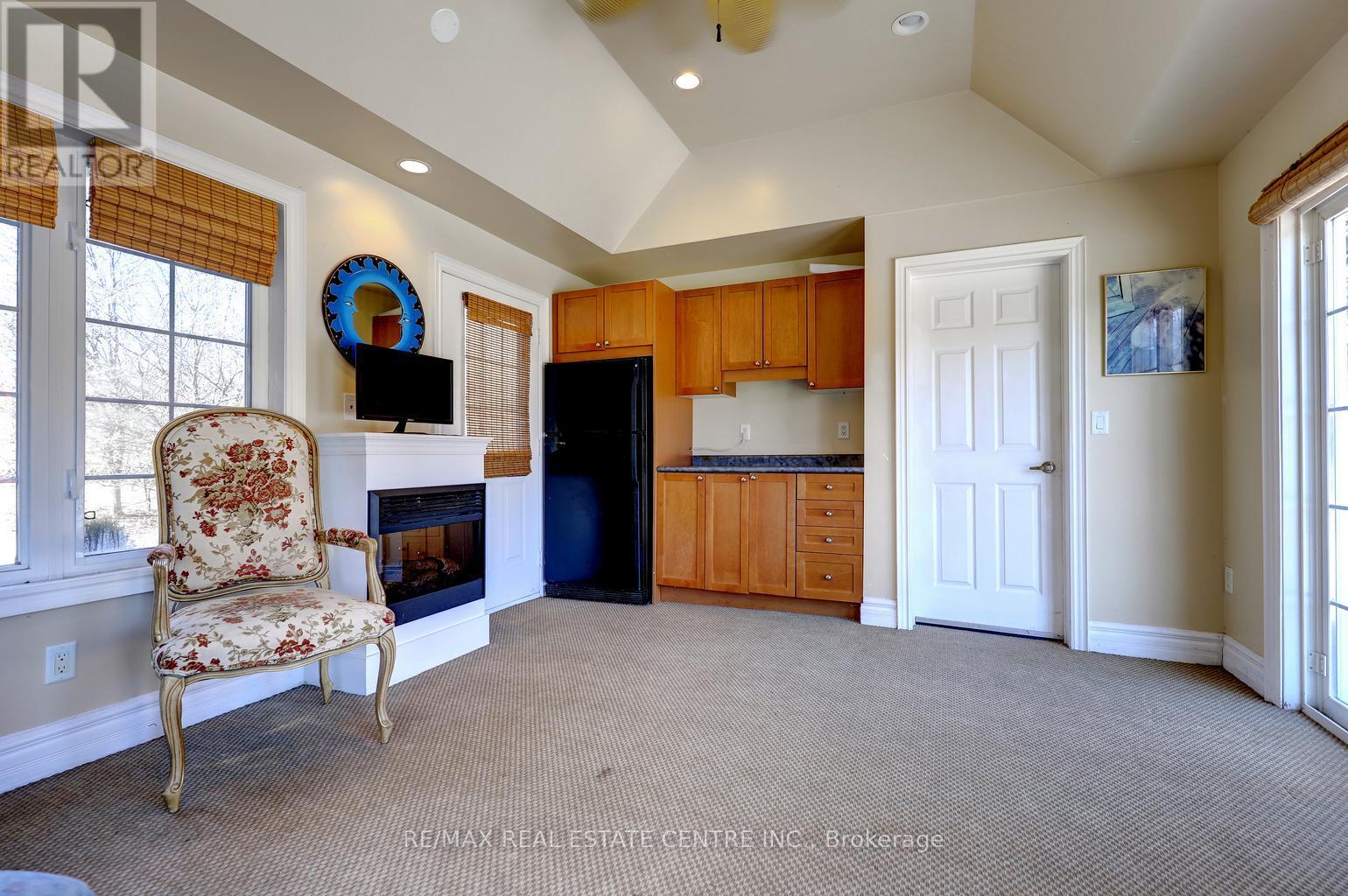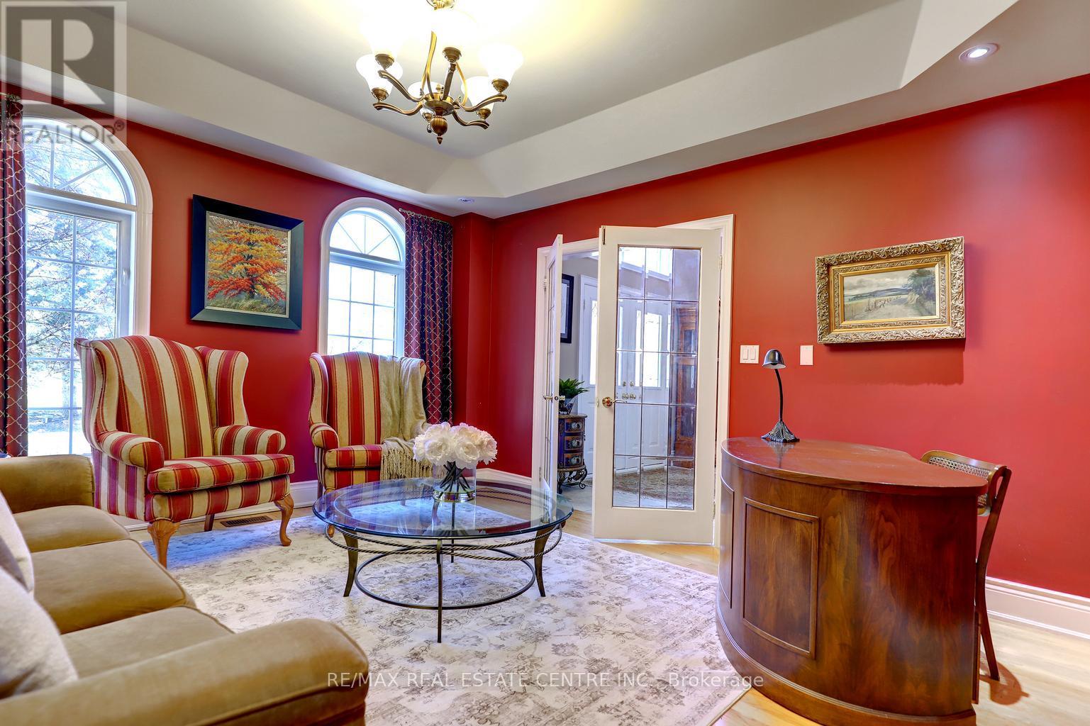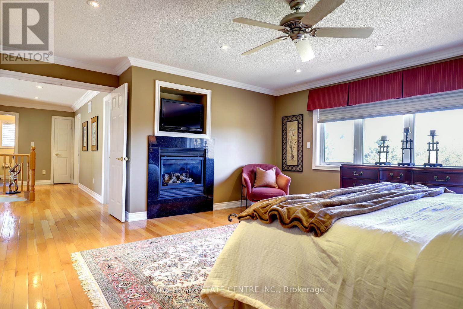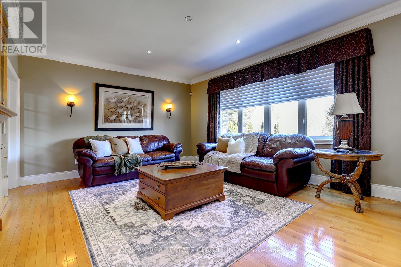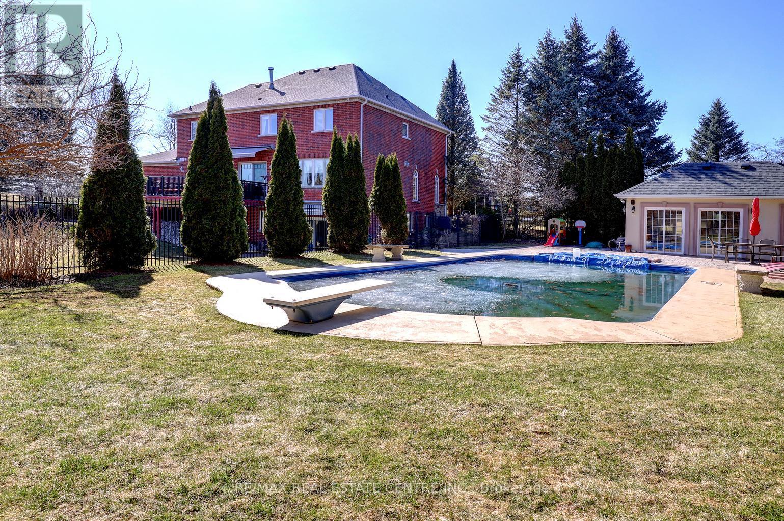 Welcome home. Set on a premium lot in a sought-after Halton Hills enclave, 8 Deer Run Crescent offers a rare opportunity to own a spacious executive residence in an established community. With timeless curb appeal and a private backyard featuring a pool, cabana, and mature trees, the exterior provides exceptional outdoor living. The property spans nearly 4 acres, including a portion of protected conservation land, offering a natural setting with added privacy. The home offers approximately 3,100 sq ft above grade, plus a finished walkout lower level, with a functional layout and generous principal rooms, presenting an opportunity to personalize the space. The main level features 9-ft ceilings, hardwood flooring, crown moulding, and a double-sided fireplace. The kitchen includes granite counters, travertine backsplash, built-in appliances, and walkout to a deck with gas BBQ hookup and awning. A mudroom with laundry and access to the oversized 3-car garage adds convenience. Upstairs offers four bedrooms, including a primary suite with fireplace, walk-in closet, and 5-piece ensuite. The finished walkout lower level provides additional living space with large windows, fireplace, wet bar, and bedroom with ensuite, suitable for extended family or guests. Additional features include a thermal-heated pool, pool house, landscaped grounds, irrigation system, and recent updates such as roof and eavestrough improvements. Conveniently located near Milton, Guelph, and Acton, with access to amenities, schools, and commuter routes. (id:51158)