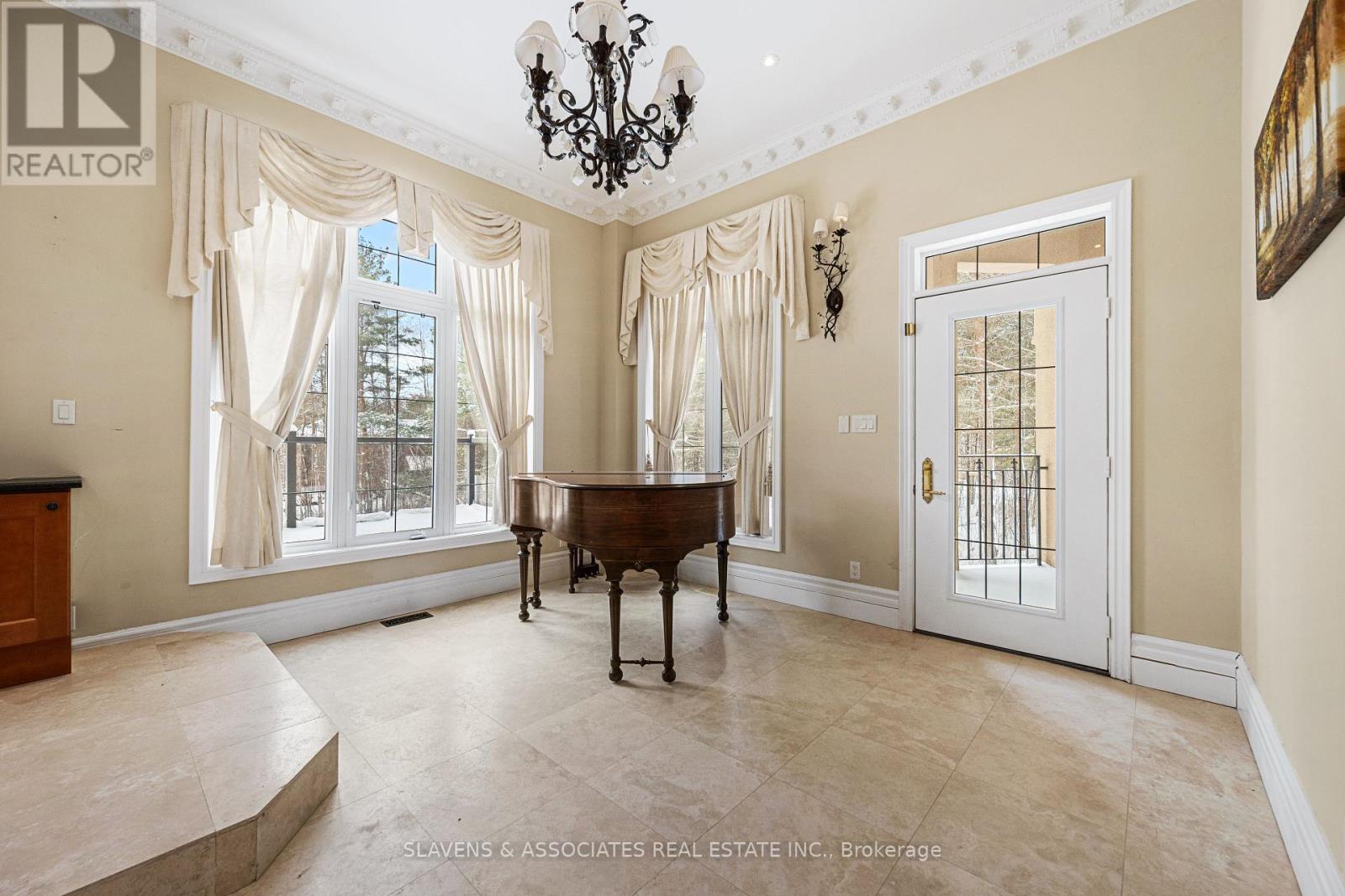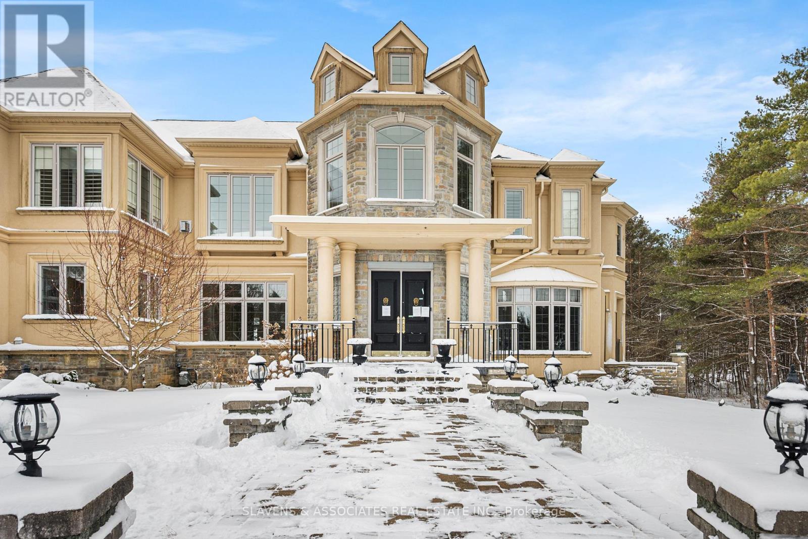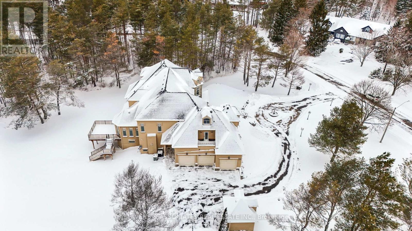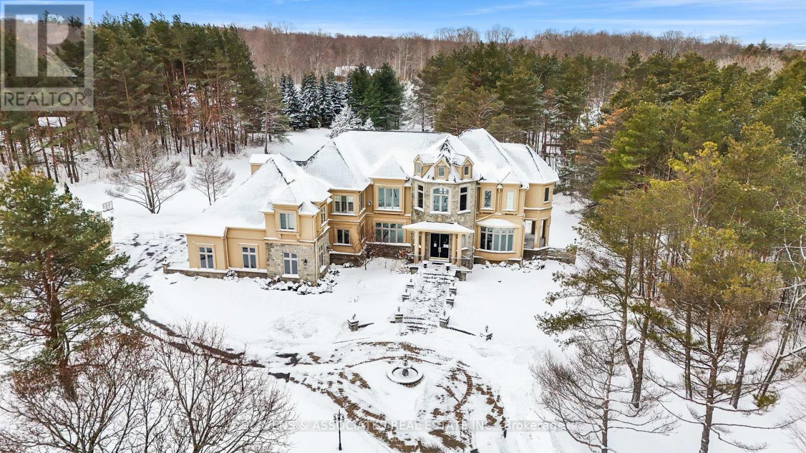 Welcome to this rare offering combining over 8500 sq ft of total living space, thoughtful design, and a prestigious setting in an exclusive enclave. Nestled on a quiet private cul-de-sac and surrounded by prestigious multi-million-dollar estates, this exceptional residence sits on a sprawling two-acre lot offering privacy, space, and refined living. A grand main floor welcomes you with soaring ceilings and elegant tile flooring throughout, creating a bright and open atmosphere ideal for both everyday living and entertaining. A thoughtfully tucked-away office with warm natural wood accents provides ample work-from-home space, while the bright formal dining room showcases crown moulding and timeless charm. Chef's kitchen featuring stone countertops, a stone centre island, and a breakfast area with walkout to the deck-perfect for seamless indoor-outdoor living. Multiple gas fireplaces add warmth and character throughout the home. The upper level features four spacious bedrooms, each with its own private ensuite. The expansive primary retreat offers a luxurious five-piece spa-like ensuite and plenty of room to relax. The above-grade lower level provides exceptional versatility with two additional bedrooms, a kitchen, comfortable sitting area, and flexible space ideal for a gym, recreation area, or playroom. Multiple walkouts lead directly to the expansive backyard, creating endless opportunities for outdoor enjoyment. Walk to Hanson's Chinese + Pizza, Whitchurch Conservation Area, and a quick drive to Highway 404, golf courses, Longo's, Farm Boy, Walmart, Pharmacies and more. (id:51158)