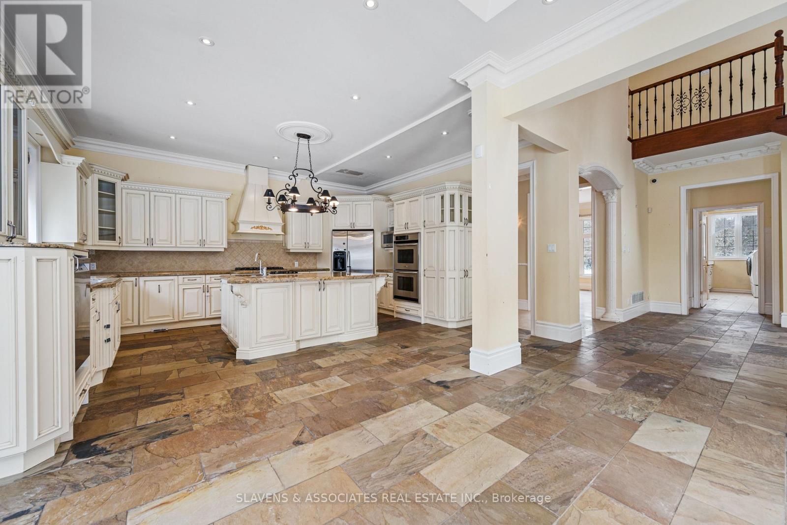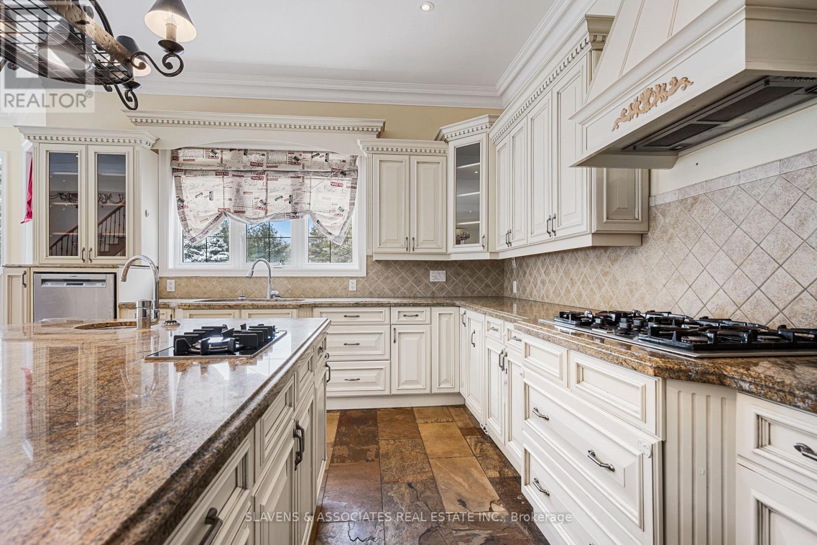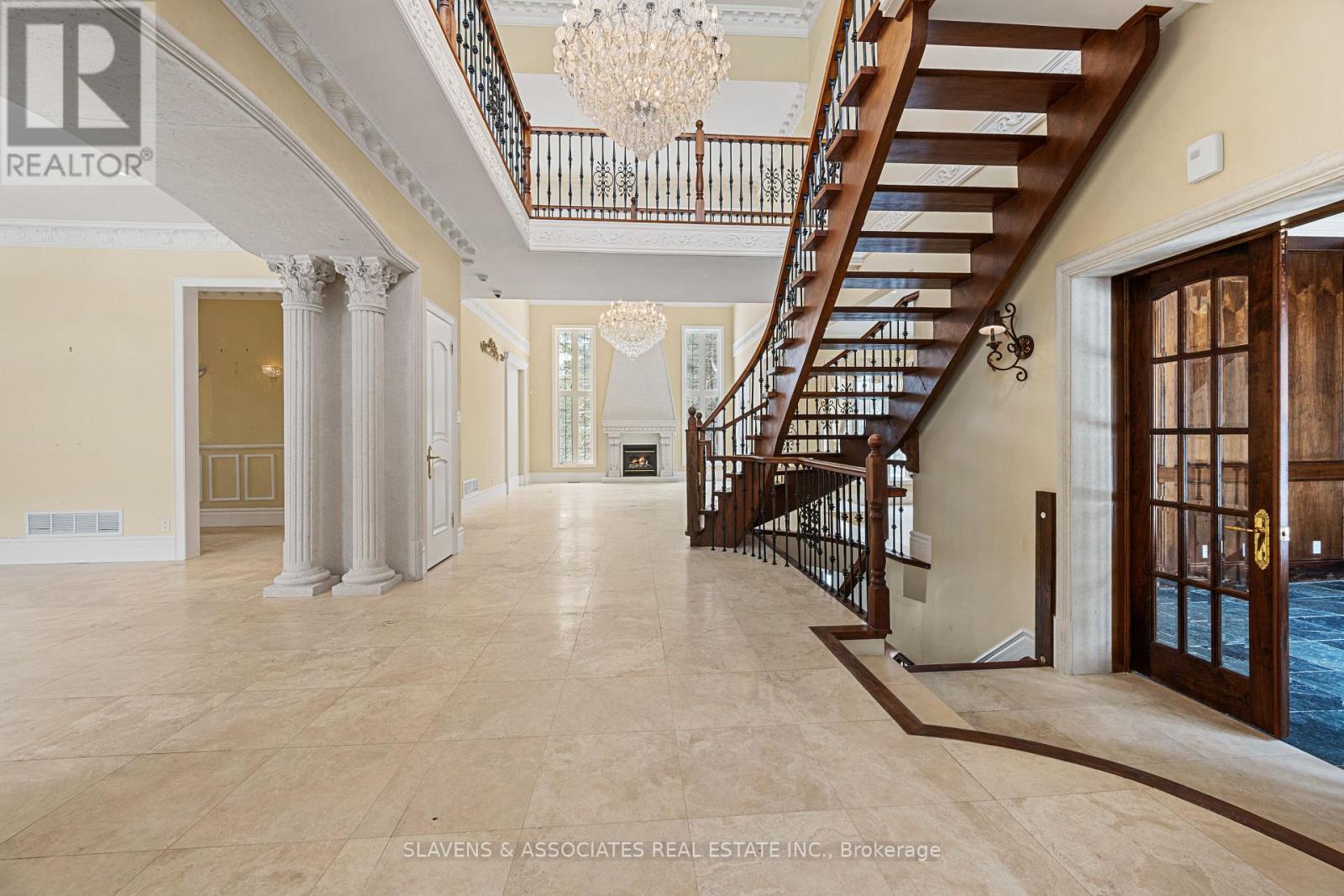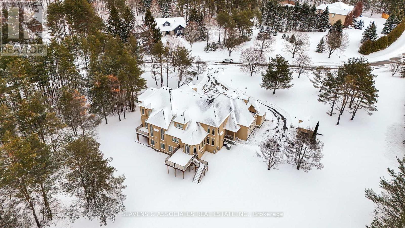Welcome to this rare offering combining over 8500 sq ft of total living space, thoughtful design, and a prestigious setting in an exclusive enclave. Nestled on a quiet private cul-de-sac and surrounded by prestigious multi-million-dollar estates, this exceptional residence sits on a sprawling two-acre lot offering privacy, space, and refined living. A grand main floor welcomes you with soaring ceilings and elegant tile flooring throughout, creating a bright and open atmosphere ideal for both everyday living and entertaining. A thoughtfully tucked-away office with warm natural wood accents provides ample work-from-home space, while the bright formal dining room showcases crown moulding and timeless charm. Chef's kitchen featuring stone countertops, a stone centre island, and a breakfast area with walkout to the deck-perfect for seamless indoor-outdoor living. Multiple gas fireplaces add warmth and character throughout the home. The upper level features four spacious bedrooms, each with its own private ensuite. The expansive primary retreat offers a luxurious five-piece spa-like ensuite and plenty of room to relax. The above-grade lower level provides exceptional versatility with two additional bedrooms, a kitchen, comfortable sitting area, and flexible space ideal for a gym, recreation area, or playroom. Multiple walkouts lead directly to the expansive backyard, creating endless opportunities for outdoor enjoyment. Walk to Hanson's Chinese + Pizza, Whitchurch Conservation Area, and a quick drive to Highway 404, golf courses, Longo's, Farm Boy, Walmart, Pharmacies and more. (id:51158)