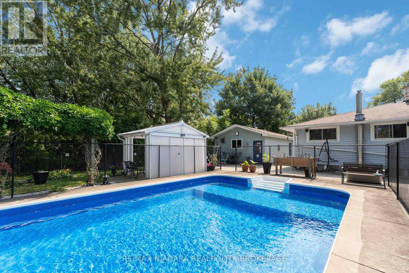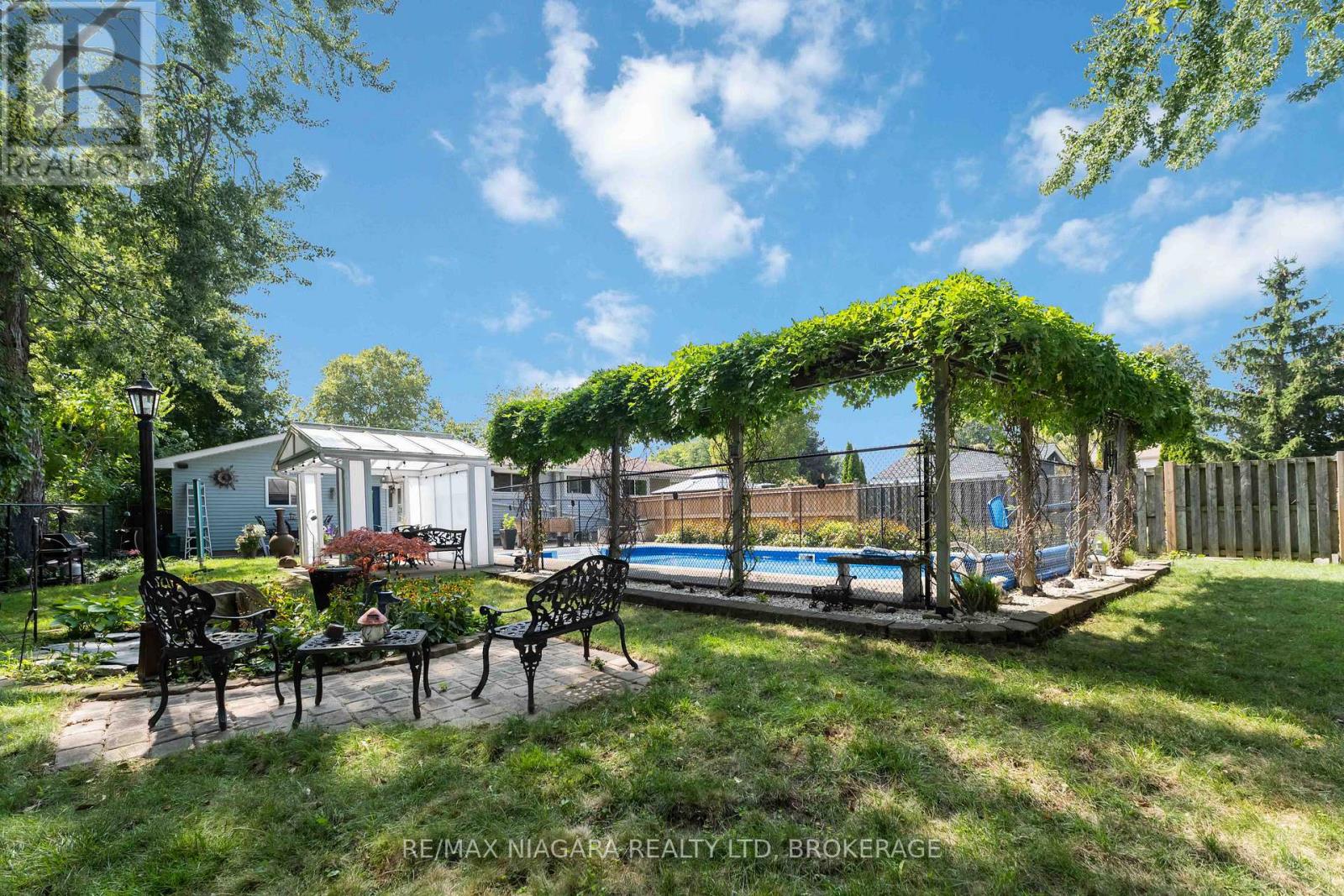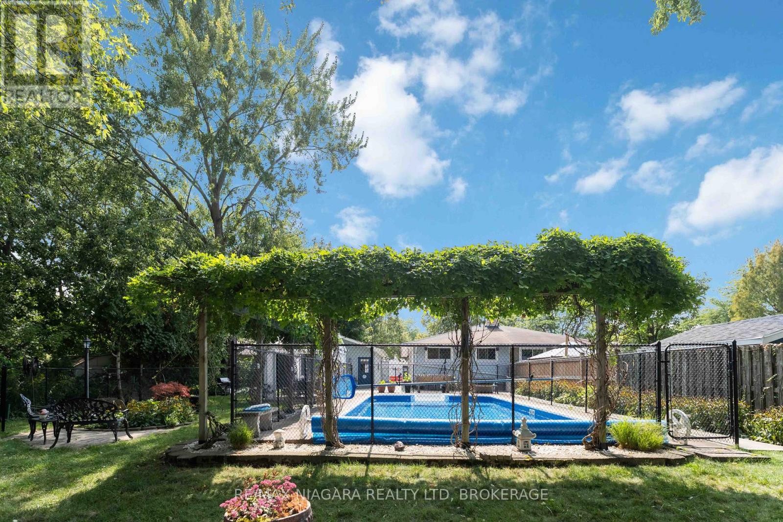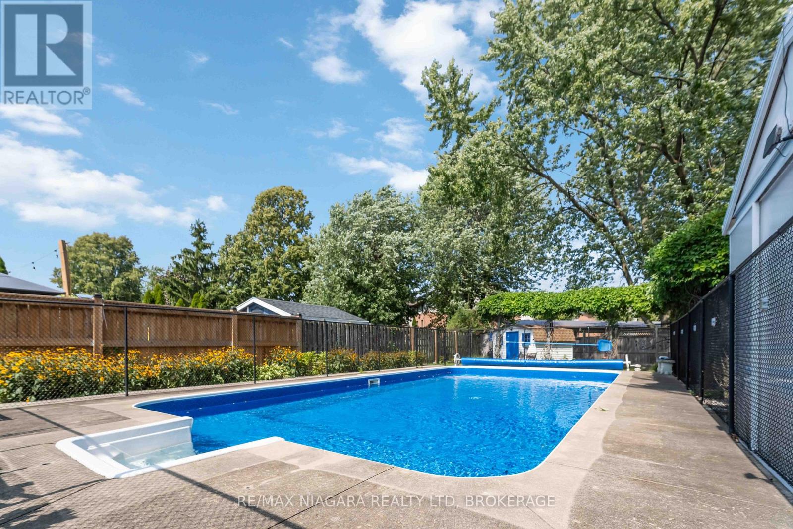 Charming Semi-Detached Bungalow with Detached Garage & Backyard Oasis Welcome to this well-maintained 3-bedroom, 1.5-bath bungalow, ideally located in a sought-after, family-friendly neighbourhood close to schools, parks, trails, and vibrant Port Dalhousie. Step inside to find a warm and inviting main floor featuring a spacious living room with a large bay window and hardwood floors. The cozy dining area flows seamlessly into a functional galley-style kitchen, complete with ample cabinetry and a centre island, perfect for everyday living and entertaining. A convenient side entrance adds flexibility, ideal for families or those considering an in-law suite or rental opportunity. The fully finished lower level expands your living space with high ceilings, a generous rec room with a gas fireplace, a dedicated workshop/laundry area, and abundant storage, perfect for hobbies, or entertaining. Outside, escape to your private backyard retreat. Situated on an oversized, deep lot, the fully fenced yard features a sparkling inground pool, lush landscaping, and a pergola-covered patio plus additional green space for added privacy. A detached garage and double-wide concrete driveway offer plenty of parking and everyday convenience. Move-in ready, this charming home blends comfort, functionality, and outdoor enjoyment making it an ideal choice for families, downsizers, or anyone seeking a backyard oasis in a premium location. (id:51158)