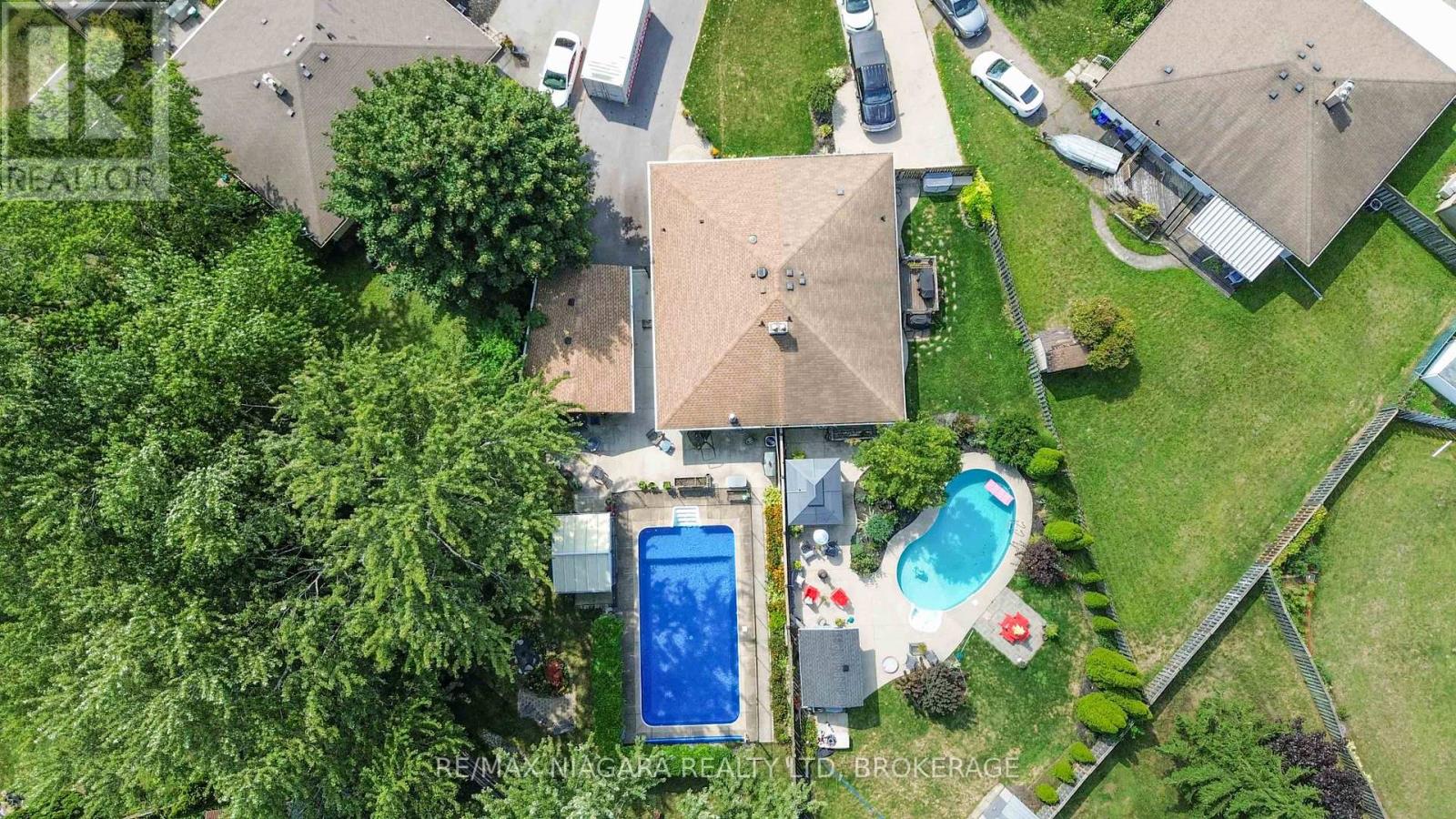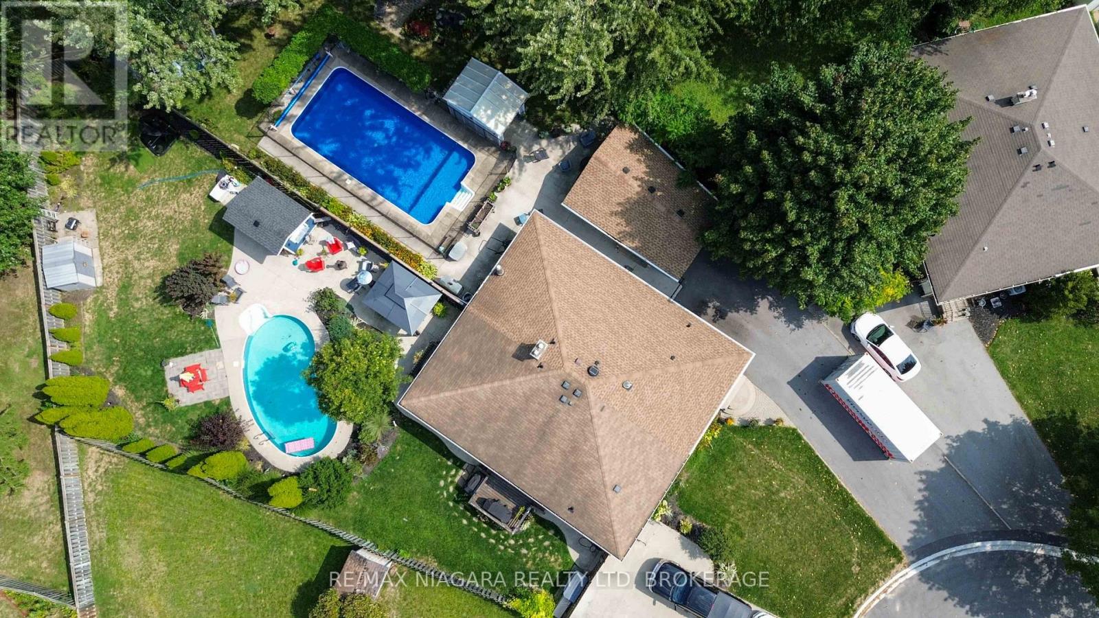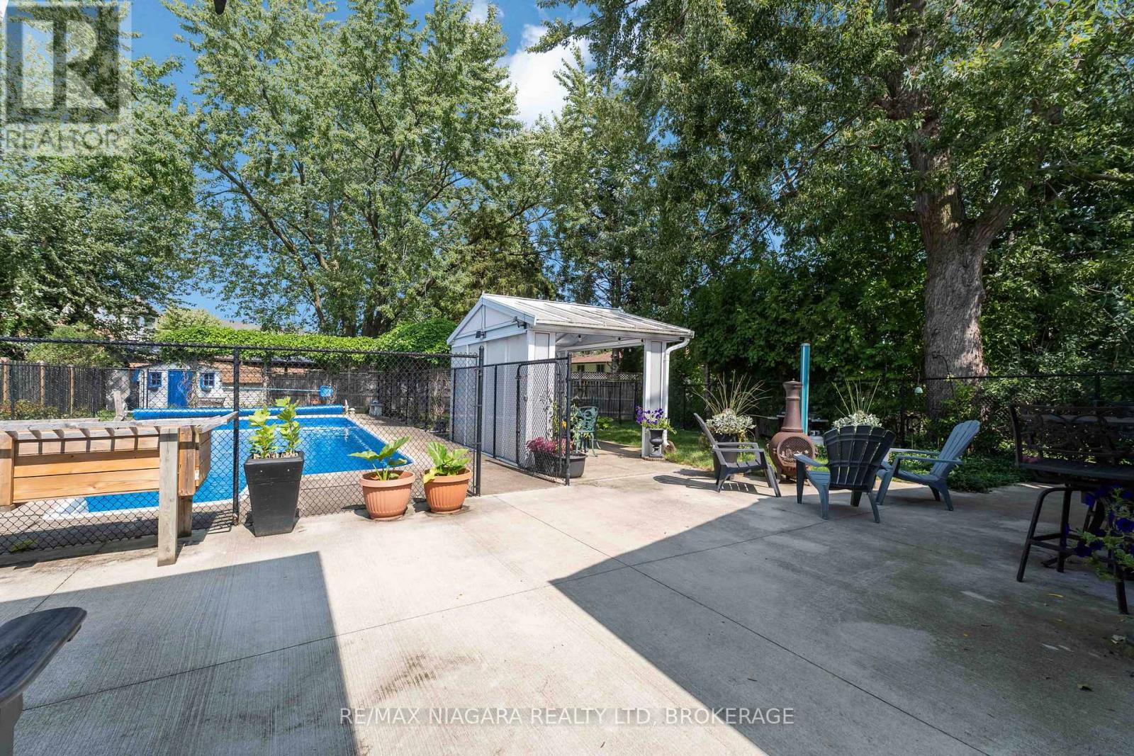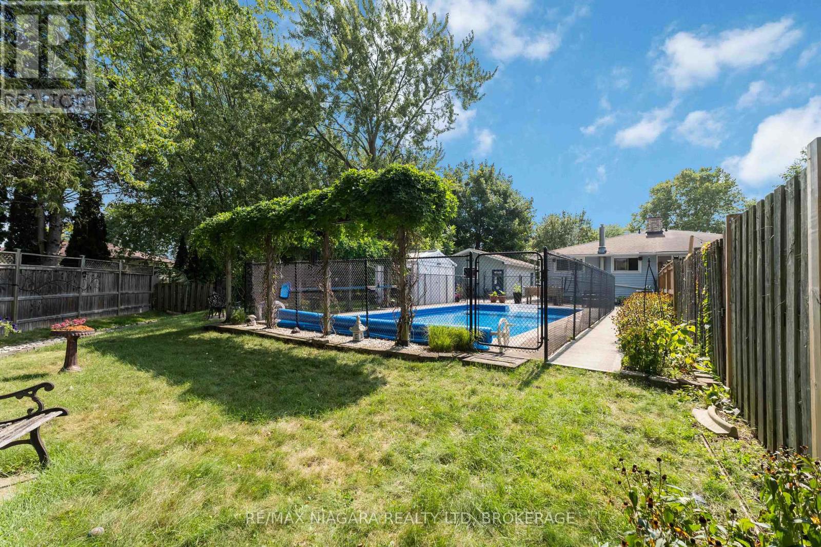 Charming Semi-Detached Bungalow with Detached Garage & Backyard Oasis Welcome to this well-maintained 3-bedroom, 1.5-bath bungalow, ideally located in a sought-after, family-friendly neighbourhood close to schools, parks, trails, and vibrant Port Dalhousie. Step inside to find a warm and inviting main floor featuring a spacious living room with a large bay window and hardwood floors. The cozy dining area flows seamlessly into a functional galley-style kitchen, complete with ample cabinetry and a centre island, perfect for everyday living and entertaining. A convenient side entrance adds flexibility, ideal for families or those considering an in-law suite or rental opportunity. The fully finished lower level expands your living space with high ceilings, a generous rec room with a gas fireplace, a dedicated workshop/laundry area, and abundant storage, perfect for hobbies, or entertaining. Outside, escape to your private backyard retreat. Situated on an oversized, deep lot, the fully fenced yard features a sparkling inground pool, lush landscaping, and a pergola-covered patio plus additional green space for added privacy. A detached garage and double-wide concrete driveway offer plenty of parking and everyday convenience. Move-in ready, this charming home blends comfort, functionality, and outdoor enjoyment making it an ideal choice for families, downsizers, or anyone seeking a backyard oasis in a premium location. (id:51158)