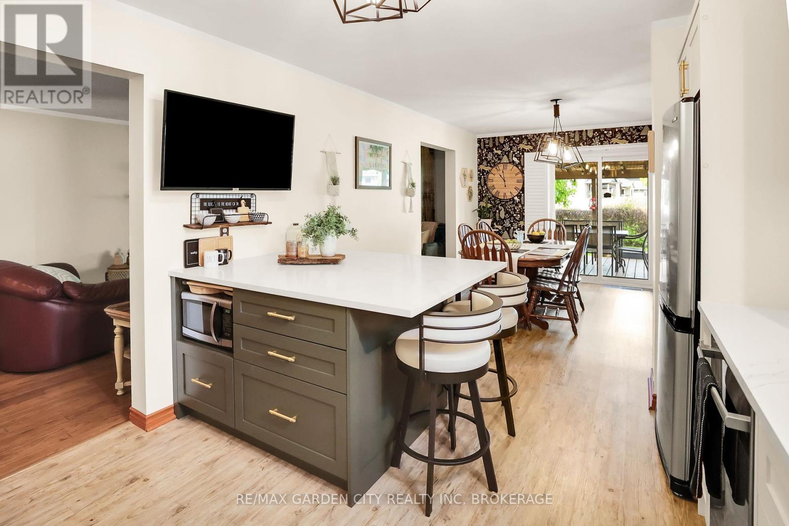 Excellent quality and move-in ready! This spacious 2-storey detached solid brick home is in incredible shape with updates throughout and is a classic family home styled option. Sitting on a wide lot spread out from the neighbouring homes the property starts off with great curb appeal leading up the 4-car double wide driveway with an attached 2-car garage. On the main floor we find a large welcoming entrance featuring garage access and a main floor powder room along with the healthy sized living room, brand new kitchen, and dining room space leading out to the comfortable backyard entertainment area. The second floor is home to three great sized bedrooms with good sized closets as well as a recently updated 4-piece bathroom. The fully finished basement adds a great amount of living space to the home and could also be a perfect spot for a fourth bedroom and third washroom space if desired. Located within view of Lake Gibson and walking distance to parks, plazas, public transportation, as well as a short drive to highway access, Brock University, the Pen Centre, and all major necessities. A must-see option for anyone searching in this category. (id:51158)