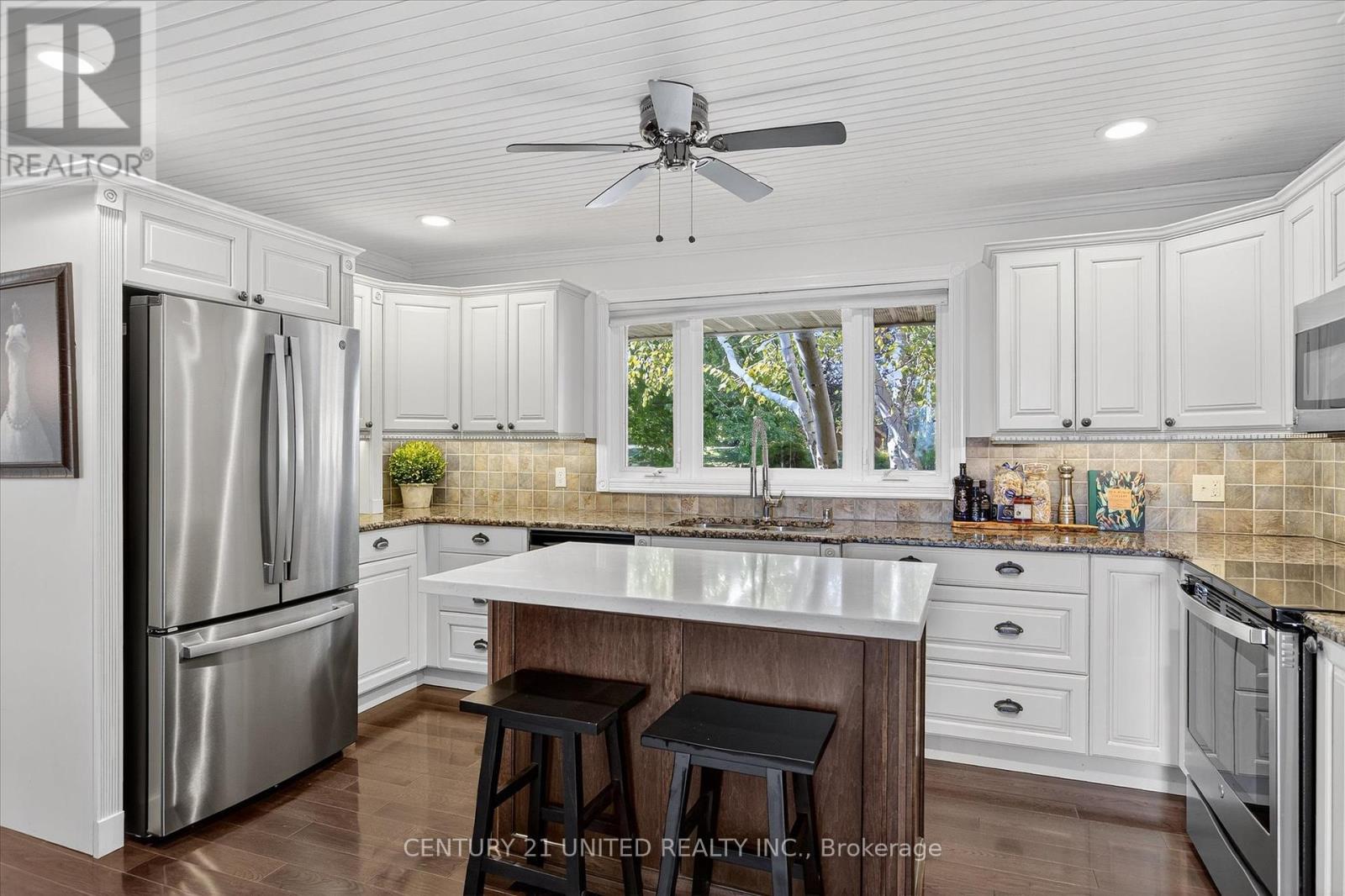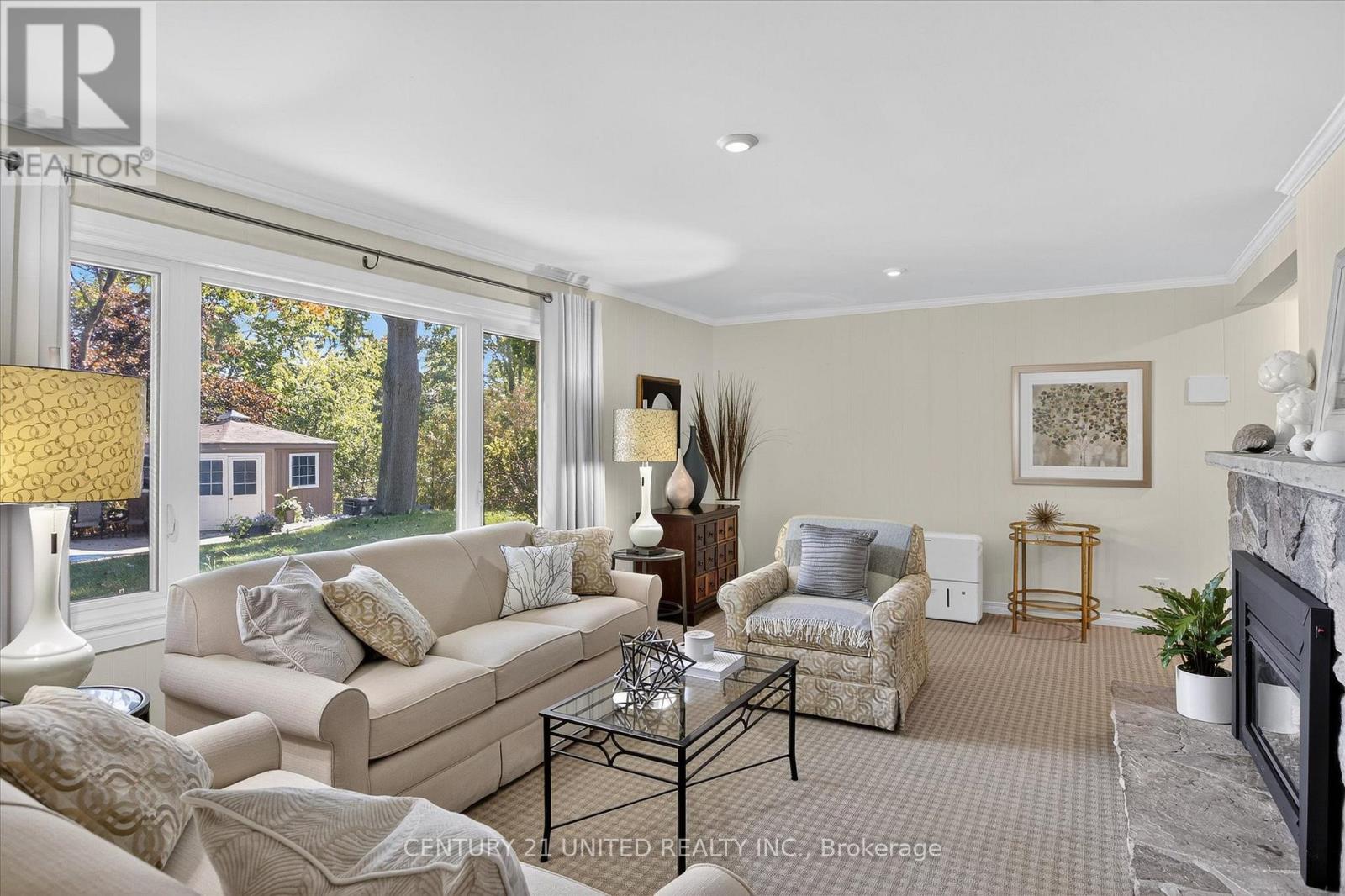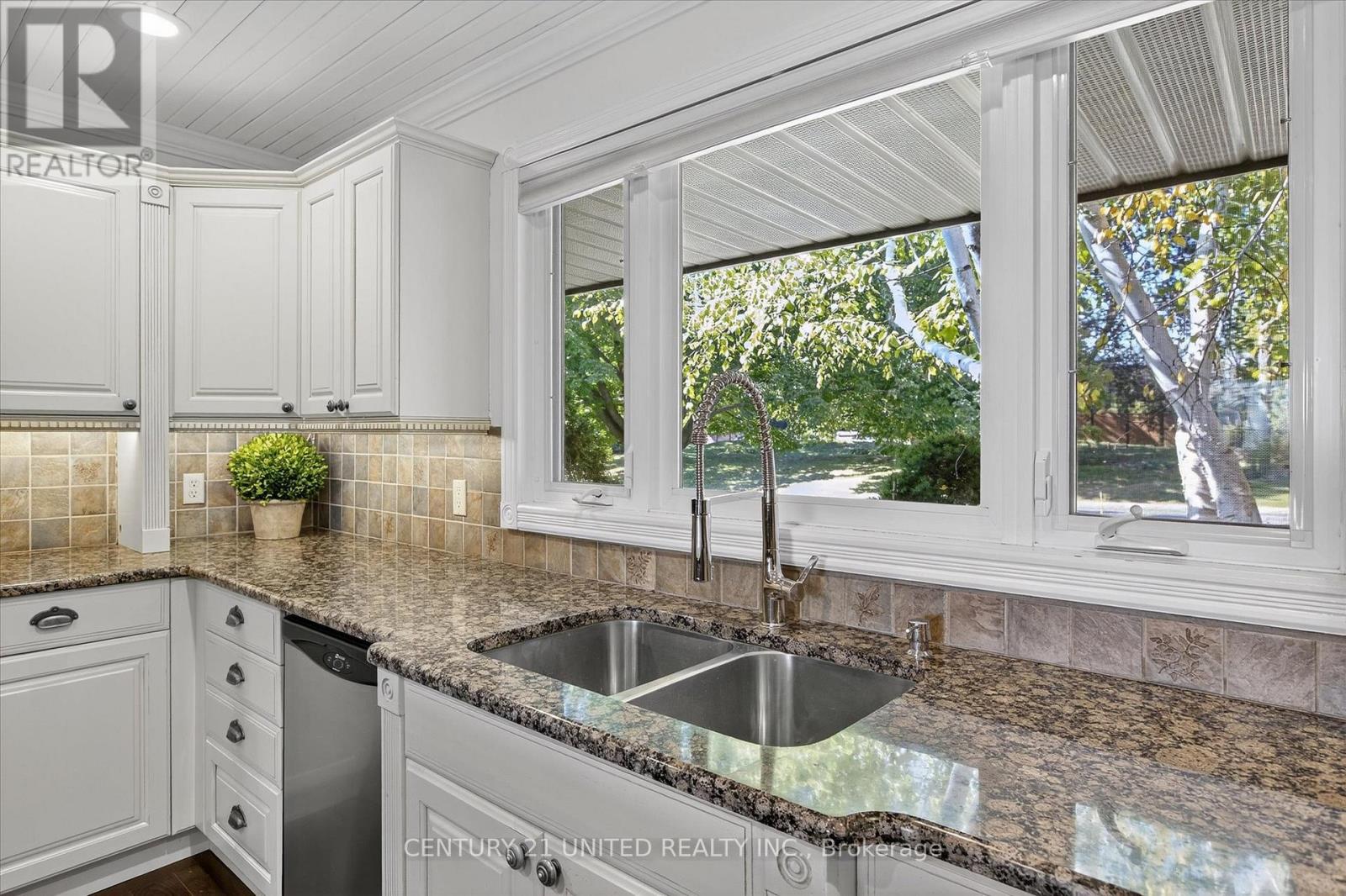 Impressive 5 bedroom bungalow located on a low traffic street in prime West End Peterborough. Beautifully maintained, pristine condition, renovated bathrooms and kitchen, hardwood, 2 fireplaces, mudroom and double car garage. Wall to wall windows overlooking the sensational yard and sparkling blue inground pool. Full walkout on the spectacular lower level connects to the pool and garden. Enjoy the private patio and views of the hillsides in the distance. This home has so much to offer: location, views, pool, privacy, condition .... just move in and enjoy. A pre-inspected home. (id:51158)
