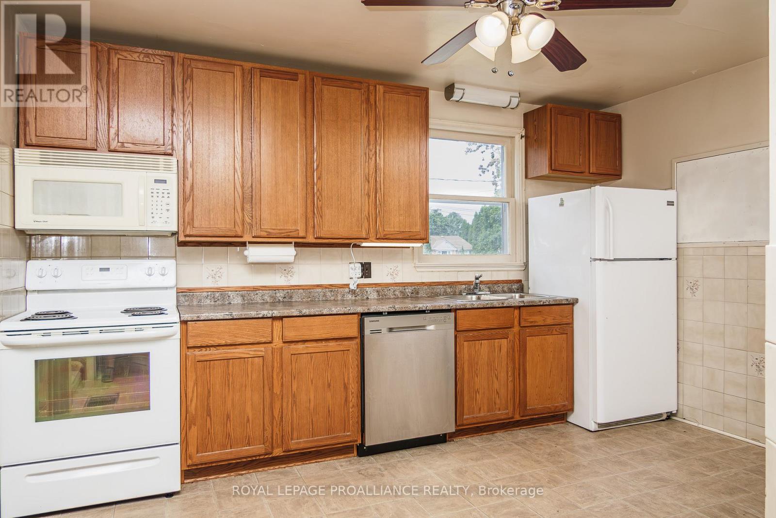 Are you looking for a very large home with multiple living or rental opportunities? This unique and versatile 2-storey residence, located on a quiet crescent with greenspace out front, offers over 3,000 sq. ft. of total living space perfect for large families, multigenerational living, or those seeking income potential. With 2,200 sq. ft. above grade, the main and upper levels feature five generously sized bedrooms, three bathrooms, an eat-in kitchen with included appliances, a formal living and dining room, and a main floor family room complete with wood accent walls, a wet bar, and bar fridge. The main level also includes a 2-piece bath/laundry combo for added convenience. Upstairs, you'll find five large bedrooms and a beautifully renovated 3-piece bath with a glass and tile shower. A side entrance leads to the partially finished basement, already equipped with a 3-piece bathroom, a bedroom, and one of three laundry areas making it ideal for future conversion to a third unit. The home also includes a fully self-contained bachelor or 1-bedroom suite with its own private entrance, hydro meter, heating system (electric baseboard plus ductless heat pump), laundry, and kitchen with appliances. Altogether, the property offers 6 bedrooms, 4 bathrooms, and 3 full laundry areas. Outside, the private, partially fenced yard with mature trees sits on nearly 0.24 acres and provides paved parking for 5+ vehicles. The detached double+ garage is a standout feature insulated and equipped with two separate doors, a side-access workshop, and a loft for storage perfect for hobbies, a workshop, or vehicle storage. Additional highlights include a natural gas furnace (approx. 2020), central air, owned hot water on demand, brick and siding exterior, and asphalt shingles. Located close to amenities, shopping, and Hwy 401, this rare offering checks all the boxes for space, versatility, and income potential. (id:51158)