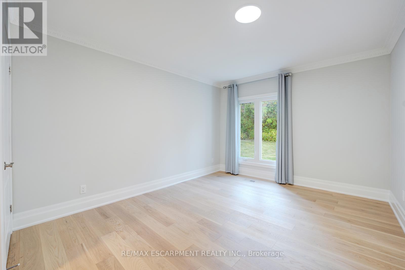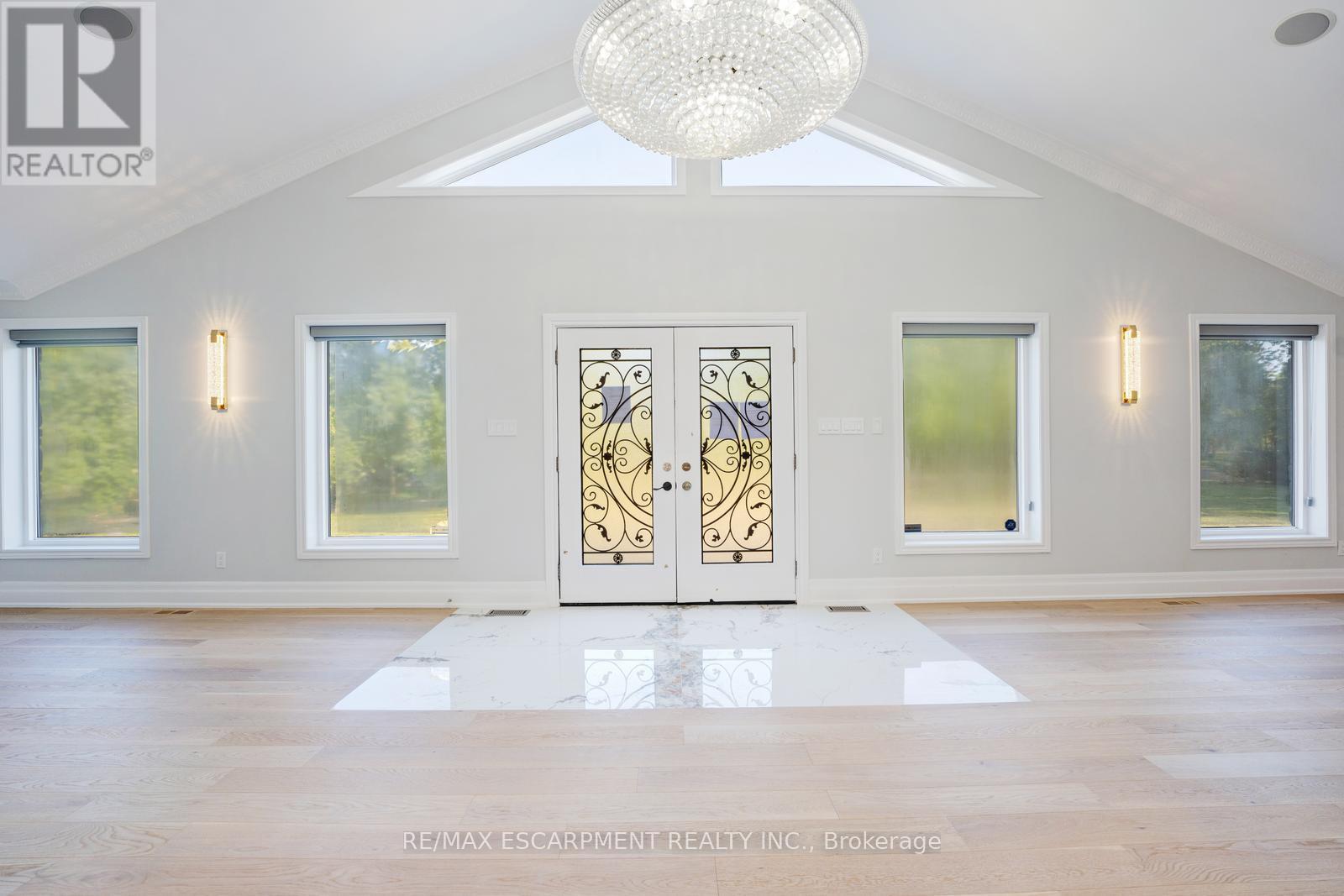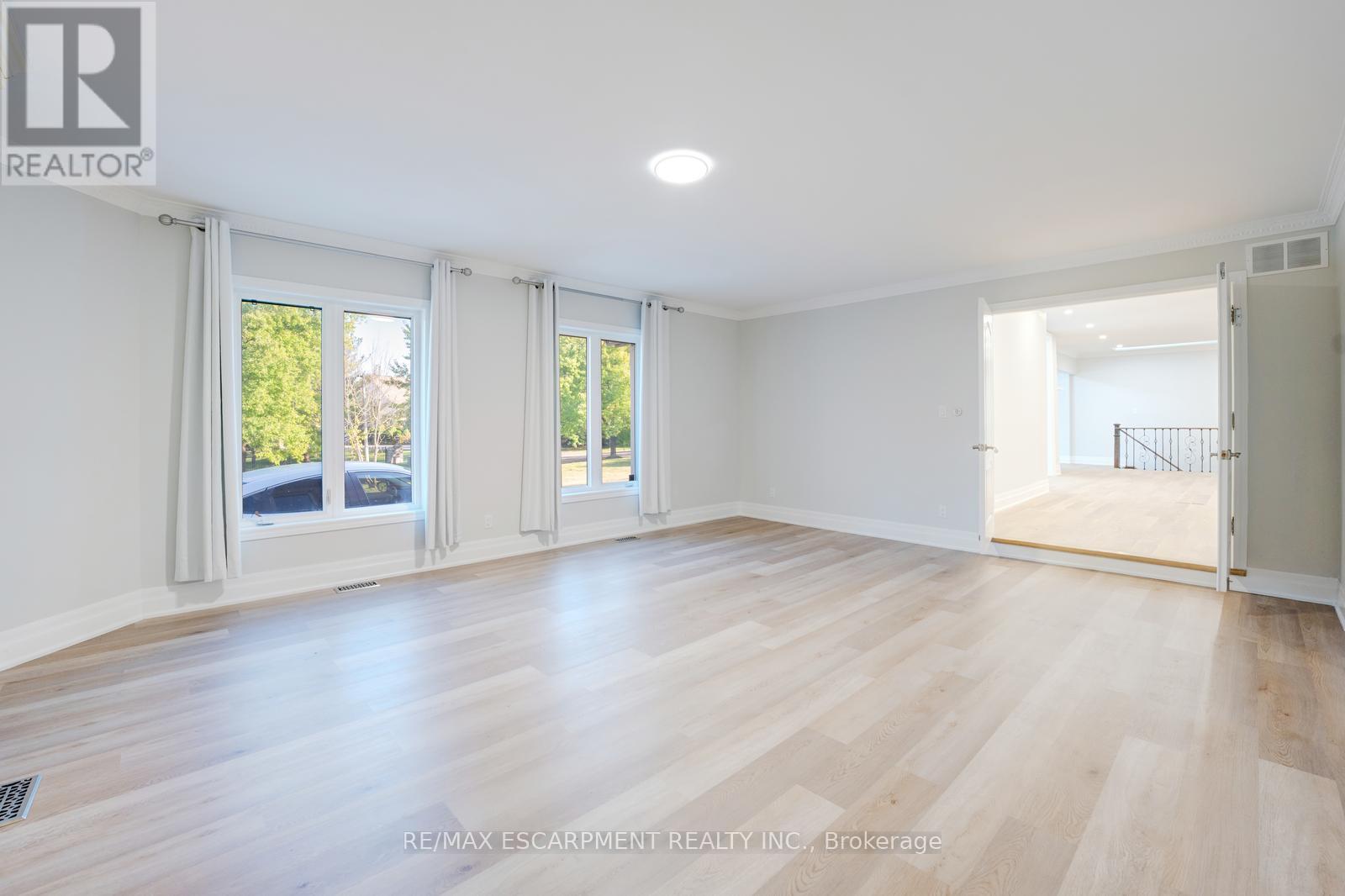 Modern, spacious, and bright 5+1 bedroom, 7 bathroom bungalow nestled on a scenic and private lot. A tree-lined driveway welcomes you to this stately home featuring extensive driveway parking and a 3-car garage. From the moment you step inside, you'll be impressed by the tasteful flooring, stylish tones, and tall ceilings. The spacious foyer leads into a large, open living room with skylights, serving as the focal point of the home. The beautifully designed eat-in kitchen offers abundant cabinetry and counter space, a large centre island, a breakfast area with a backyard walkout, and convenient access to a 4-piece bathroom. A separate dining room down the hall provides the perfect setting for gatherings. The large primary bedroom is a private retreat with a walk-in closet and a 4-piece ensuite featuring a skylight. Four additional spacious bedrooms, each with access to a bathroom, along with ample storage and an inside entry to the garage, complete the main level. The partially finished basement extends the living space with a recreation room, family room, two large bonus rooms, a bedroom, two 3-piece bathrooms, and abundant storage. Surrounded by mature trees, open green space, and natural beauty, this home offers the ideal blend of privacy and convenience. Your next home awaits! (id:51158)