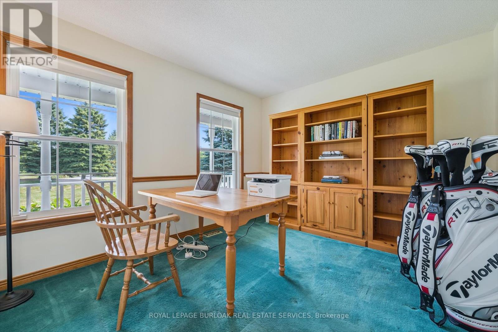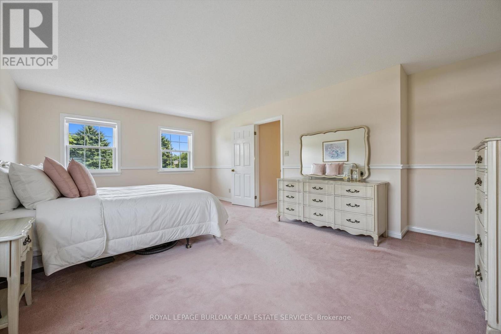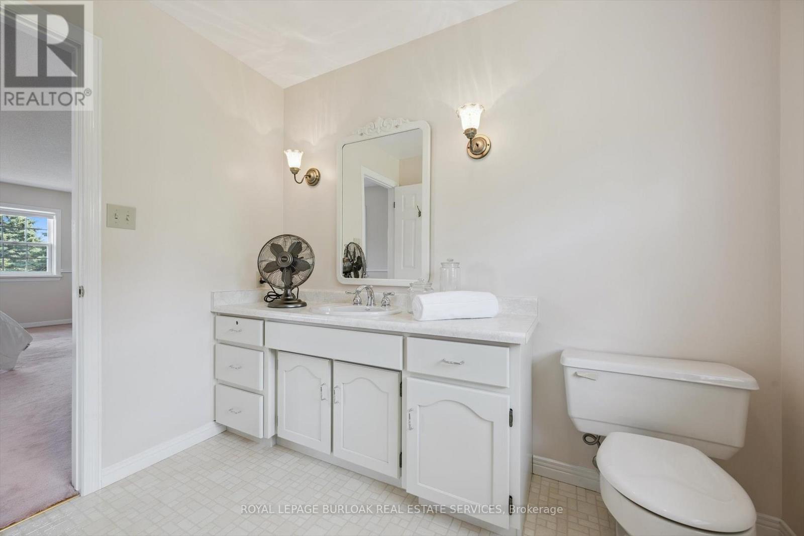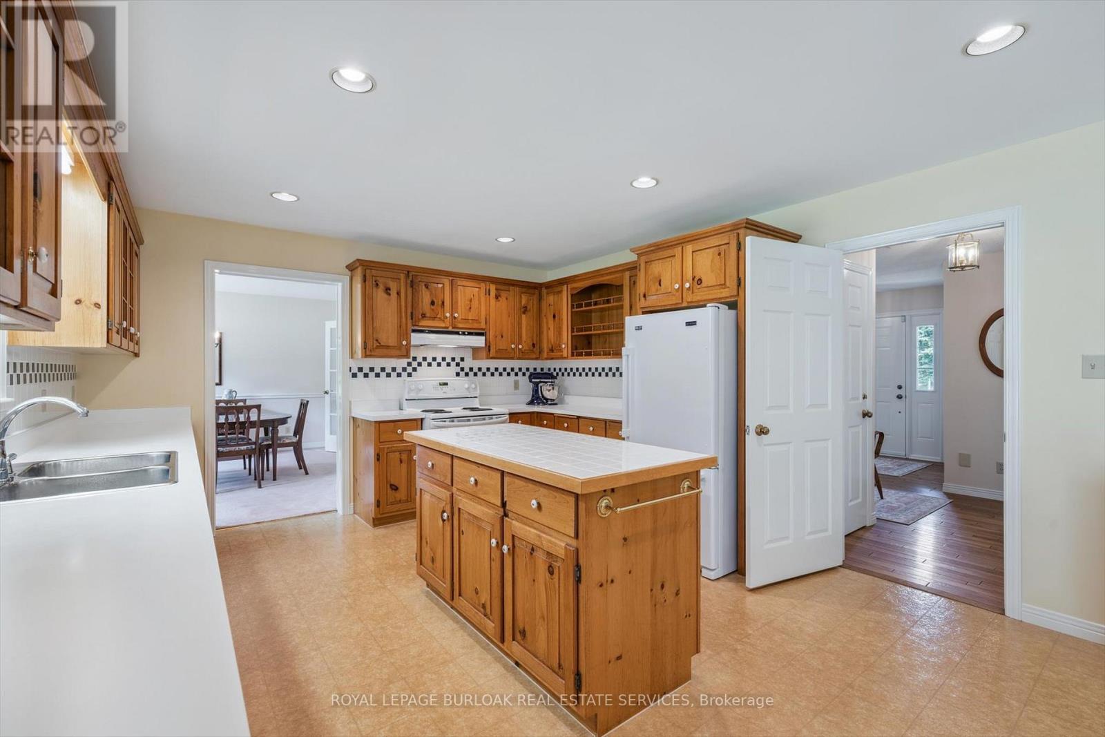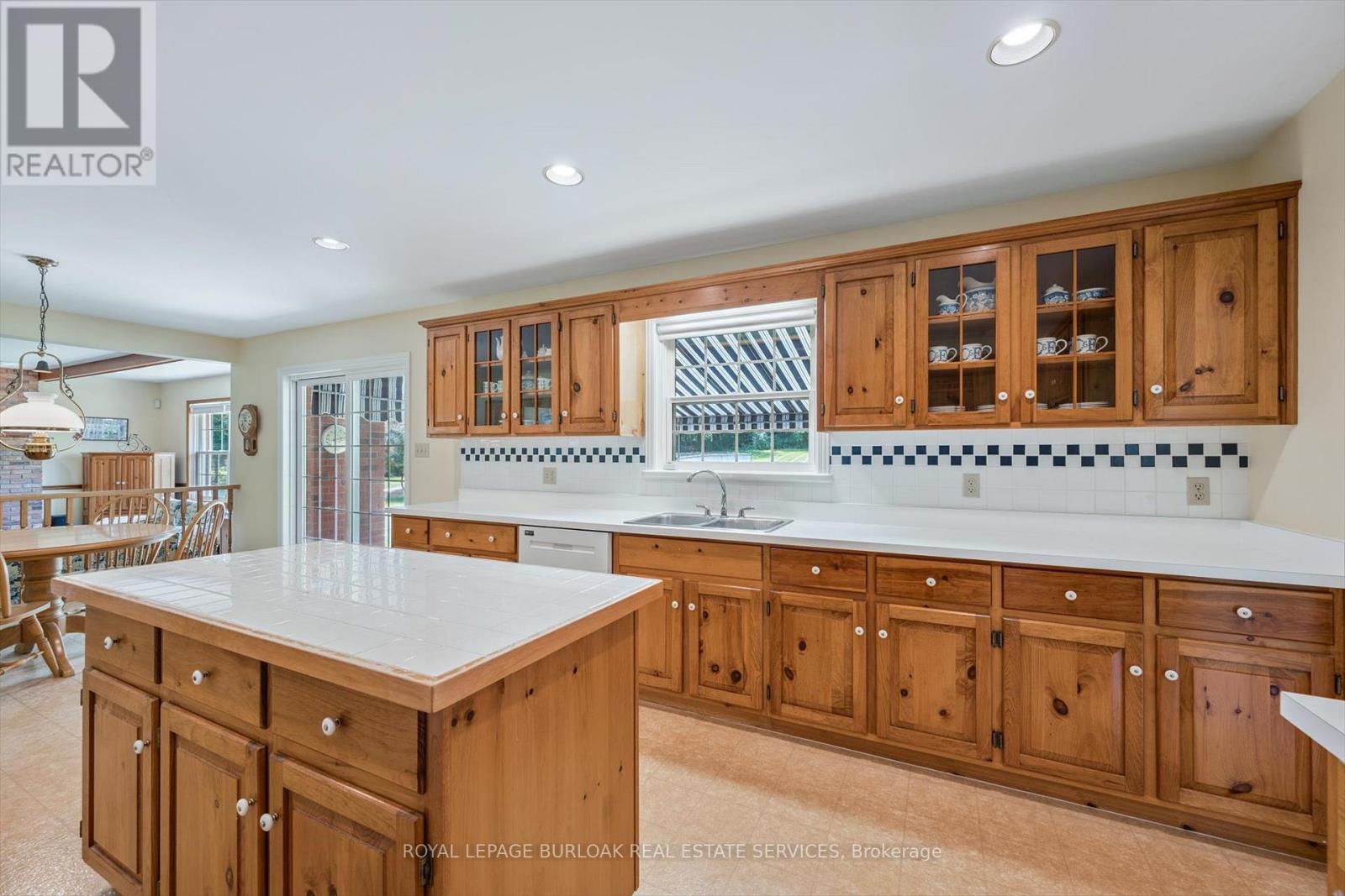 Live on one of Campbellville's most exclusive courts. Country living on over an acre with easy access to Hwy 401 and Guelph Line ideal for commuters and nature lovers. Minutes east to Toronto and Pearson International Airport or west to Kitchener Cambridge. This custom Georgian-style red brick two-storey built in 1988 offers approximately 3400 square feet of charm. A newly paved driveway and welcoming front porch leads to a spacious 2.5 car garage. Nestled in a private, cedar-lined setting surrounded by mature trees the backyard is a true retreat complete with a fenced in-ground pool and an expansive concrete patio with large 3-season canopy for outdoor living and entertaining. The home has been impeccably maintained and filled with elegant touches gleaming hardwood floors, formal living and dining rooms and a convenient main-floor office/den. The large spacious open concept kitchen with centre island flows into the sunken family room creating the perfect hub for everyday living featuring a large custom reclaimed brick and rescued solid wood beam mantle wood-burning fireplace. This homes east-facing front entrance and single hung double-pane low-maintenance ENERGY STAR efficient Pollard Advantage Line vinyl windows allow for an abundance of natural light throughout. Upstairs the generous family-friendly layout features 4 large bedrooms, spacious main bath, including a serene primary retreat with a private ensuite and large walk-in closets. The lower level offers two expansive spaces, ideal for a games room and recreation room with a large additional area ready for your future vision. Tranquil country living with all the conveniences close at hand. Ideally located with quick access to Hwy 401 and minutes from the amenities of Oakville and Burlington. If you love the fresh country air, you'll fall for the unique charm of Campbellville, a sought-after, family-friendly community where small-town warmth meets everyday convenience. (id:51158)