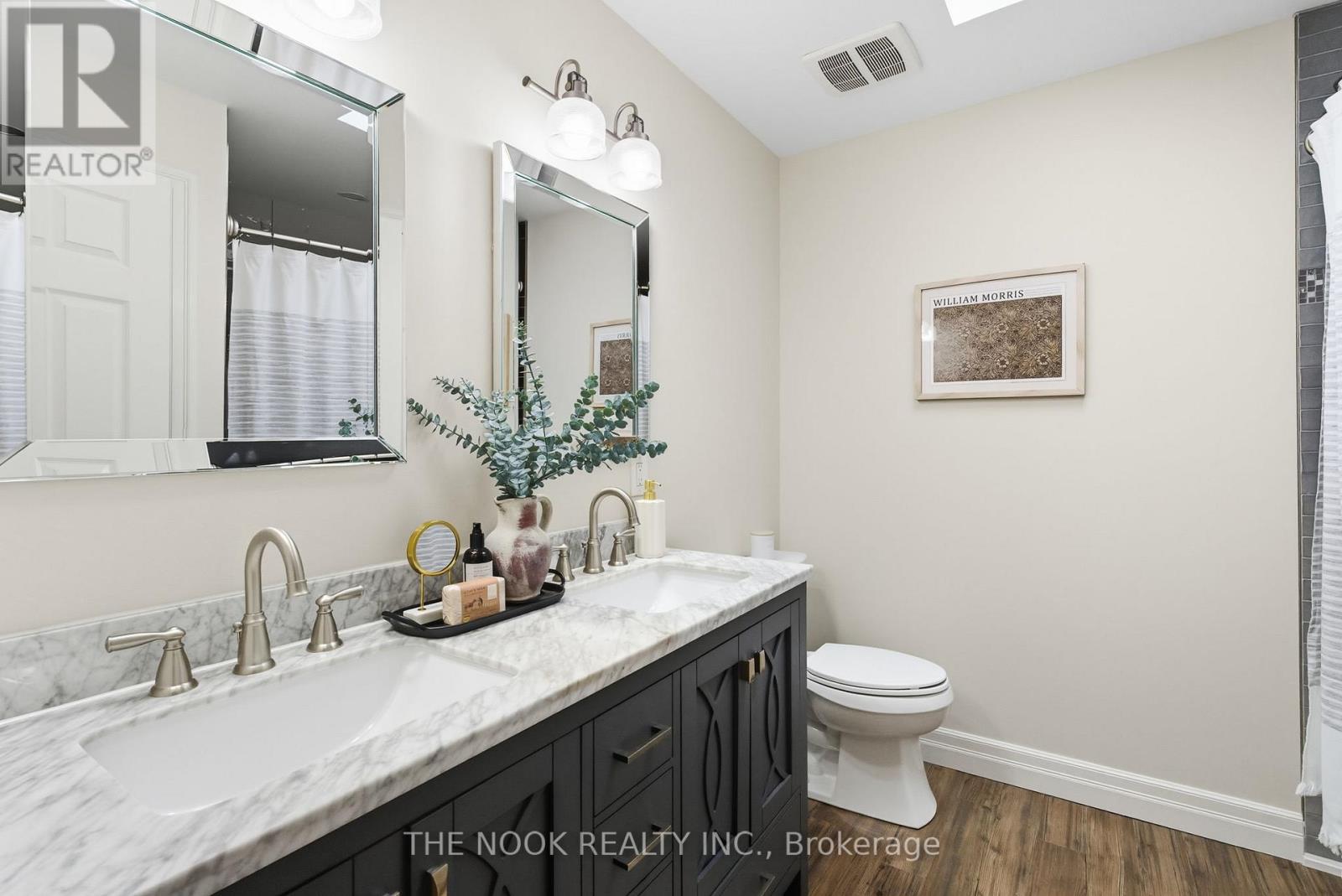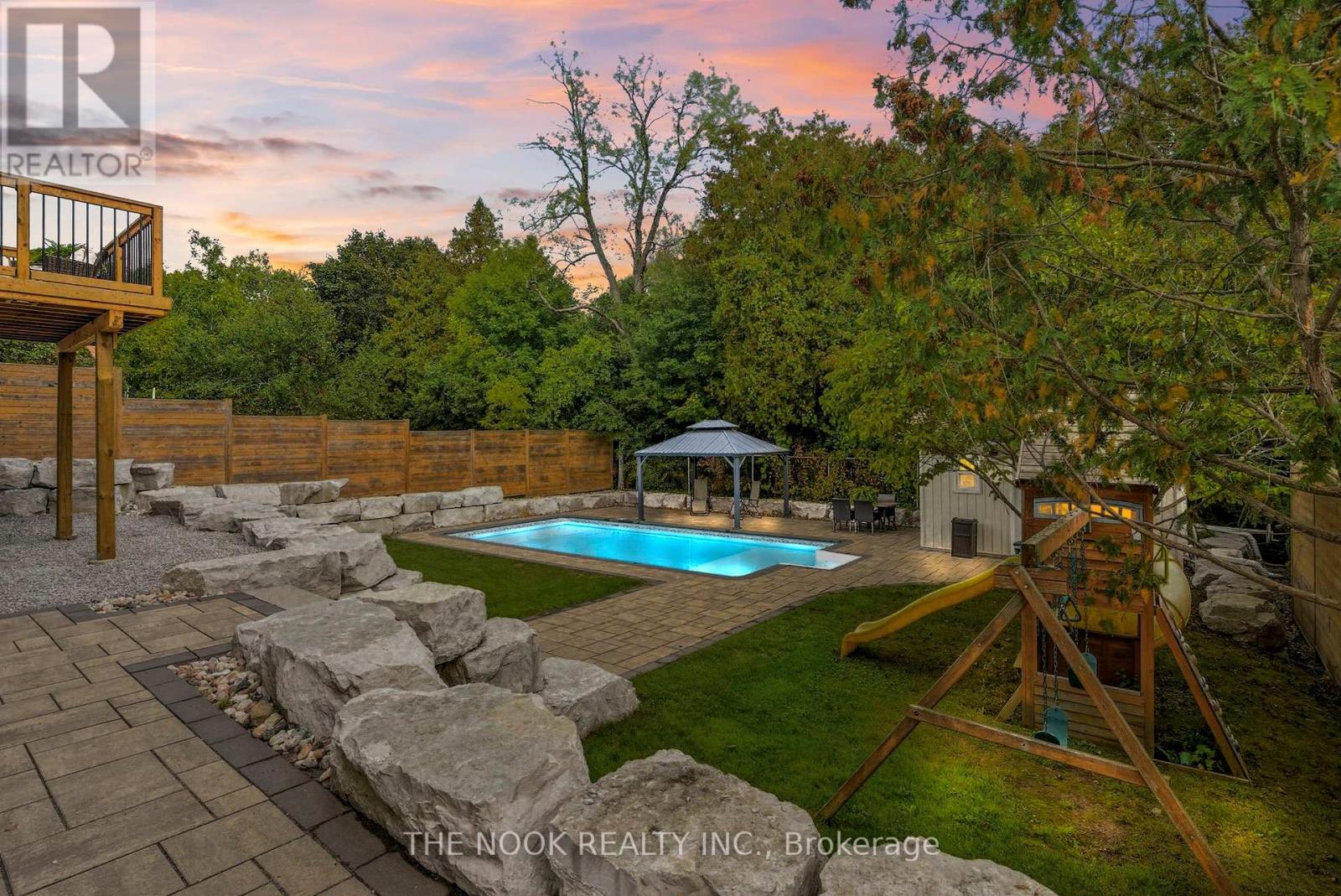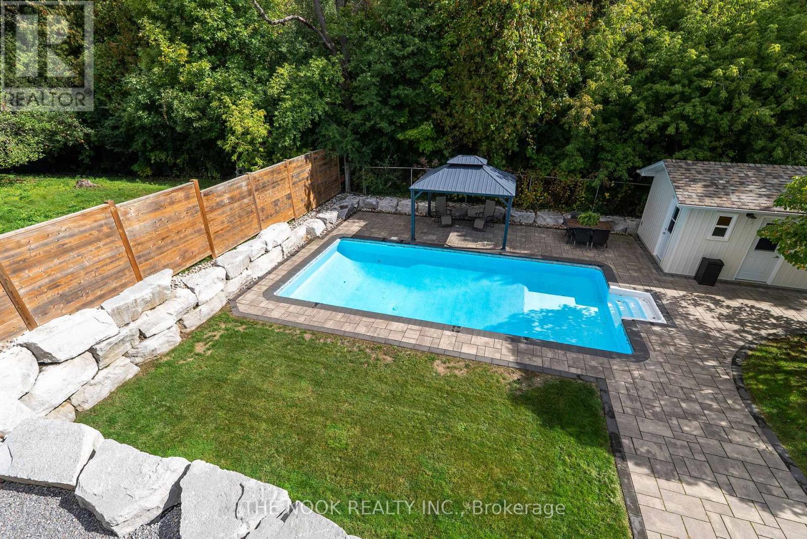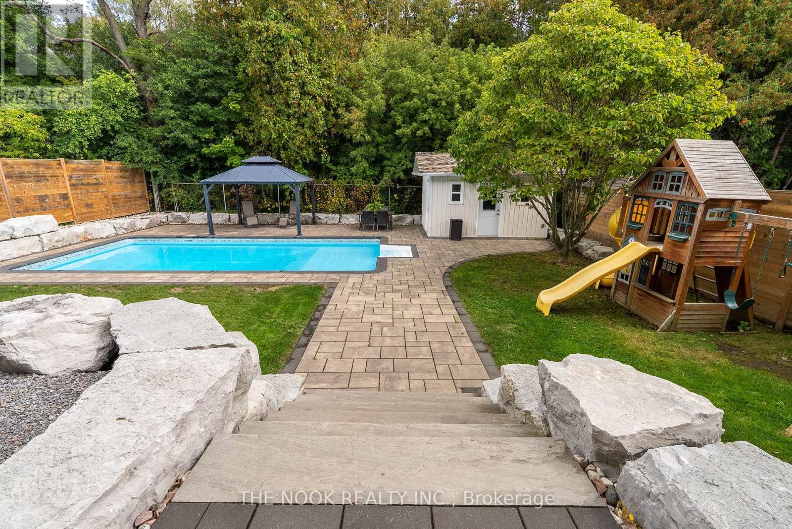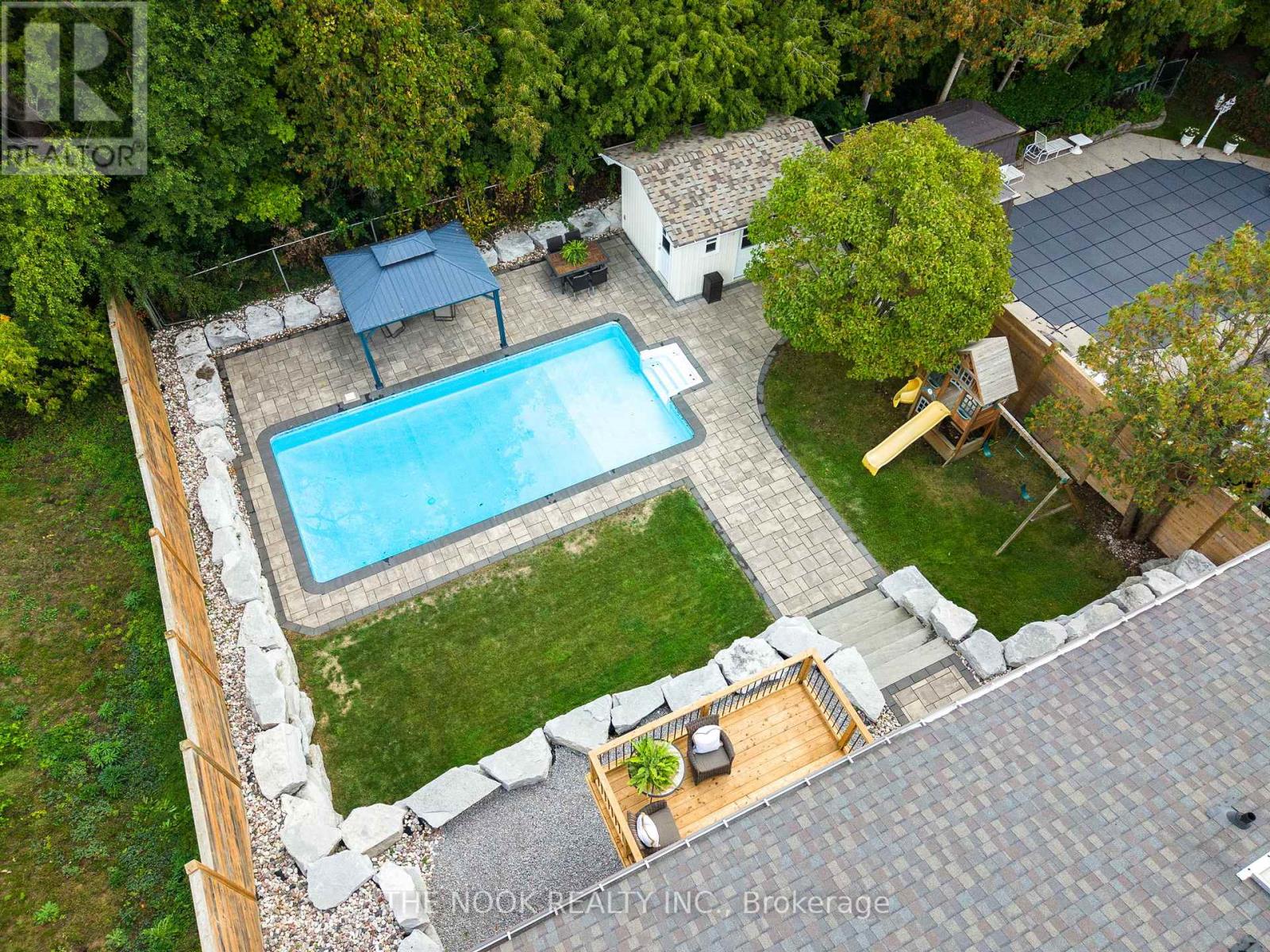 OPEN HOUSE SUN OCT 5, 1-4pm Check out this tree lined street in Oshawa's sought after Beau Valley neighbourhood..welcome home to 80 Marica Ave.This 3+1 bedroom, 2.5 bathroom home is set on a 65'x120' ravine lot, no neighbours directly behind making this entertainment filled backyard ready for family and friend fun.Full of renovations inside and out...New kitchen with quartz countertops, pot drawers, pull out recycle bins, large double pantry and walk out to the new deck that overlooks the professionally landscaped backyard.The living and dining areas are spacious with room for large furniture and entertaining your family.The primary bdrm easily fits your king size bed & overlooks the backyard plus has a newly reno'd 3 pc bthrm w/walk in shower with black rain head, porcelain tile flooring & more.Bdrm 2 & 3 overlook the front yard.The lower level has a 4th above grade bdrm, 2 pc bthrm plus a huge rec room w/new drop ceiling & pot lights plus it walks out to the fully fenced backyard & inground pool.Add your touches to these spaces.This one has it all, dbl car garage, garage access to lower level but ready yourself for next summer in this backyard retreat, grassy areas for the kids to play, check out the playhouse & slide, step into16x32 inground pool 3' shallow end & 8' deep end, shade under the 10x12 pergola & enjoy the large patio in the sunshine, the armour stone retaining walls, the stone patio, walkways& pool surround.The attractive shed was built in 2020, has a 100 amp breaker panel & houses the pool pump(2018),the sand filter(2018)& has a roughed in gas line & vent...just awaits a pool heater if you like.The backyard not only looks good, it has a gas line for your BBQ, the underground pool lines have all been replaced as part of this backyard renovation.Key Dates: 2025- deck off kitchen,kitchen reno,ensuite reno,2021-luxury vinyl plank flooring,stairs,handrail,pickets 2020-underground pool lines,12x15 shed,armour stone&stone hardscape 2019-wood fence & gate. (id:51158)