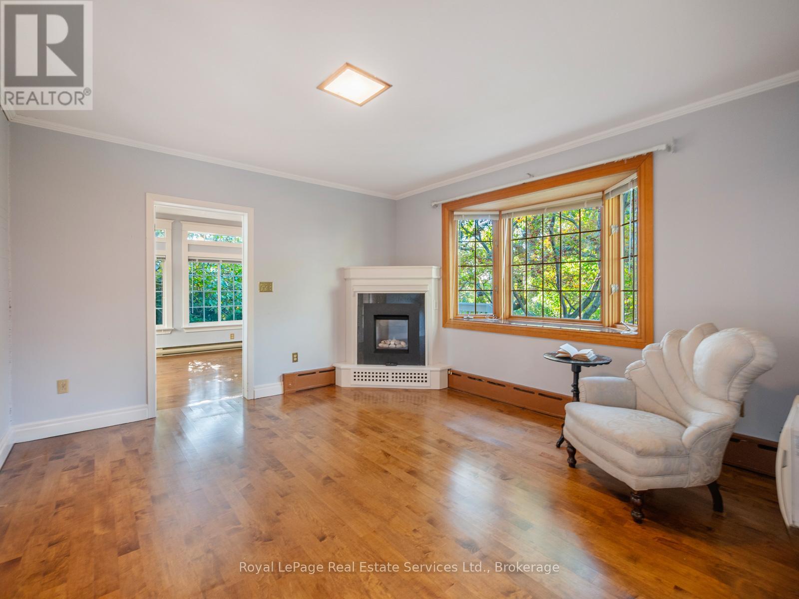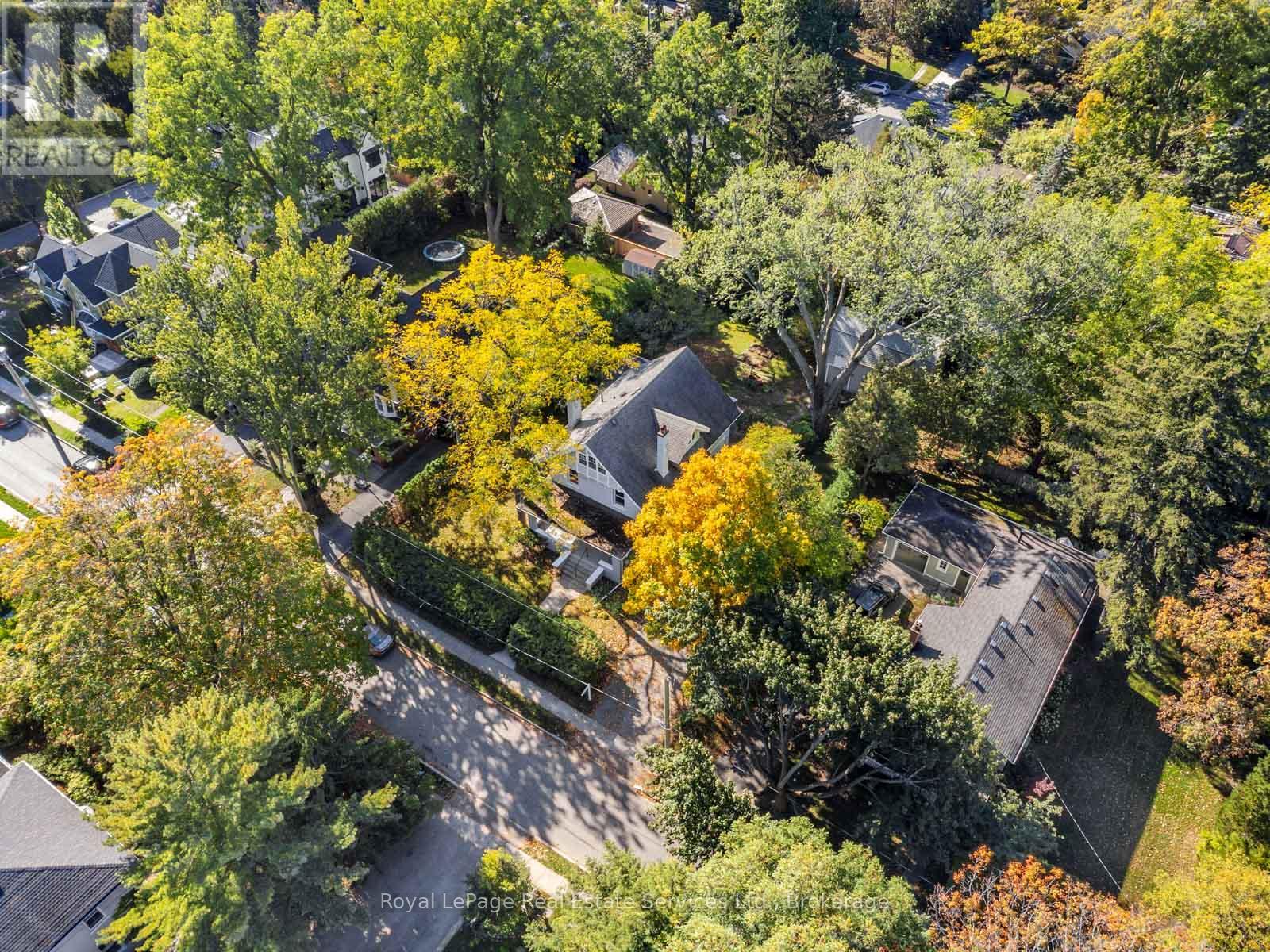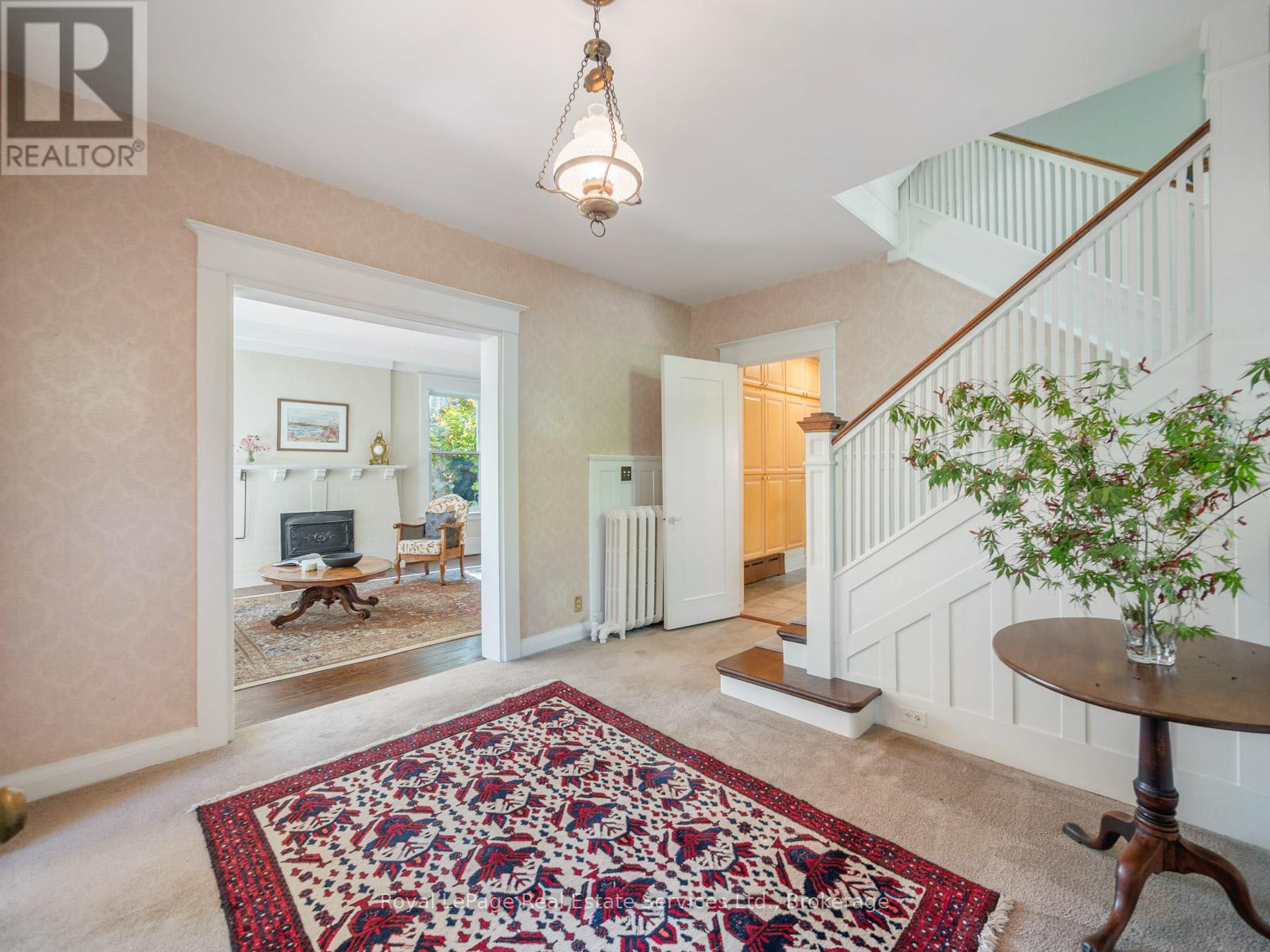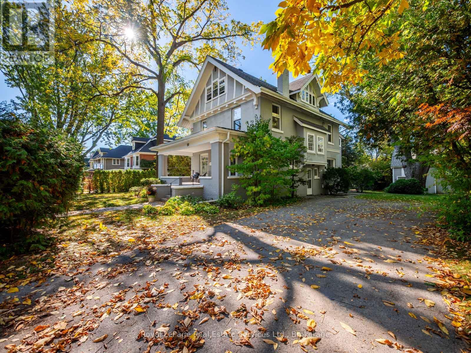 Exceptional Edwardian residence tucked south of the Lakeshore on a private, expansive lot with southwest exposure just steps to the lake & Downtown. This grand residence has been in the same family for 55 years offering an incredible opportunity to reimagine this home for the next generation. See concept plans for renovation/expansion by renowned architect Gren Weis. Substantial brick construction 3 storey, 5 BR home with over 3500SF above grade, a further 1062SF below grade & rare detached 2-storey barn/garage with another 1116SF. Dreamy covered front porch is the perfect place to spend an early autumn evening. Inside you are welcomed into a grand foyer with fireplace & dramatic staircase, high ceilings, hardwood floors and flooded with light through large windows. Lovely front sitting rm with another fireplace & large archway to the dining rm featuring box beaming, picture railing & clerestory windows. The updated kitchen features a centre island, a large window and opens to the breakfast rm / family rm addition. Family rm with gas FP overlooks the garden and has French doors to the sunroom in the southwest corner. The sunroom features wonderful views over the garden and a walk-out to a wooden deck. Main floor powder rm and laundry. There is a nifty back staircase which joins the main grand stairs to the upper floors. The second floor features 3 bedrooms and 2 bathrooms including the primary suite with 3-piece ensuite and sleeping porch overlooking the garden. The third floor has a large landing, 2 further bedrooms, full bathroom & A/C. Replacement double-glazed Pella heritage-spec custom wood windows throughout most of the home. The basement has a semi-separate side entrance and features a finished den with fireplace, recreation room & utility rm. Glorious gardens with great privacy, mature trees and plantings. (id:51158)