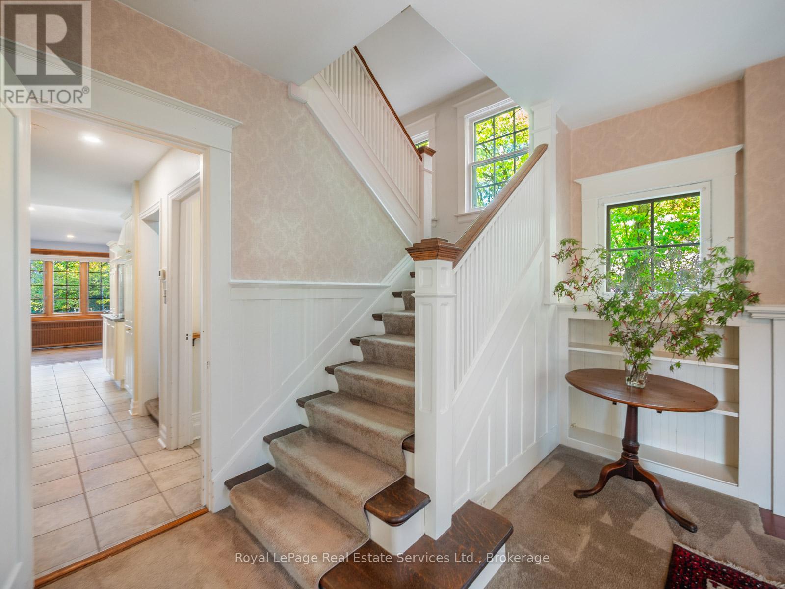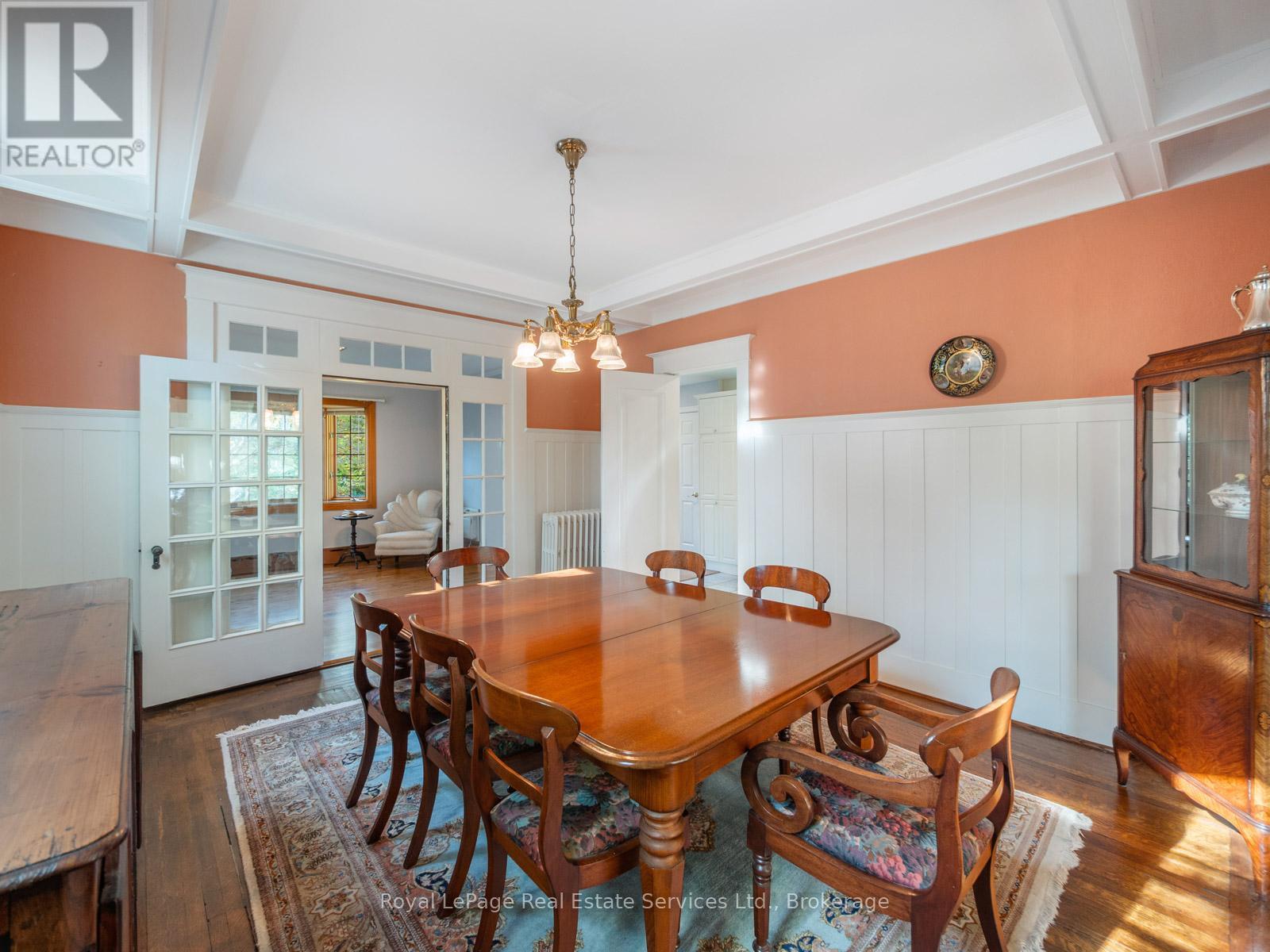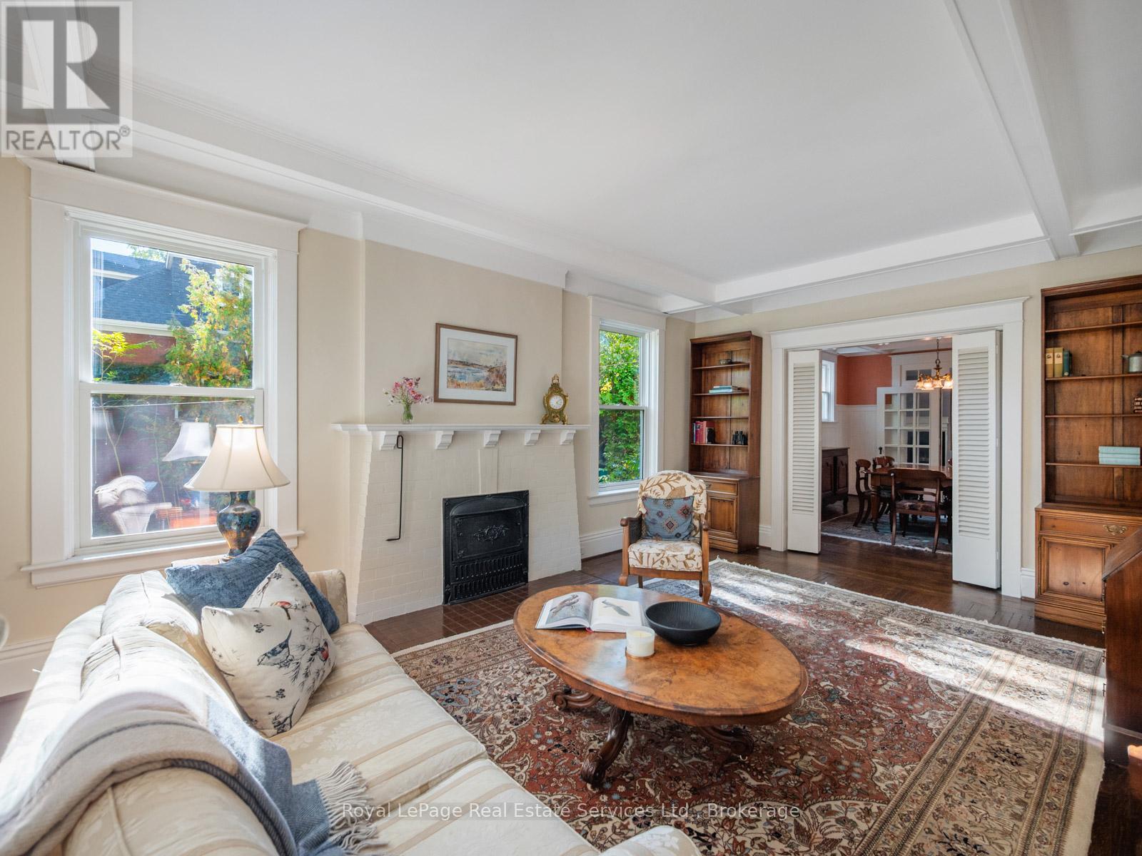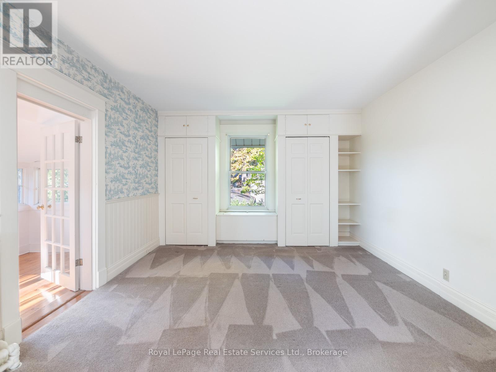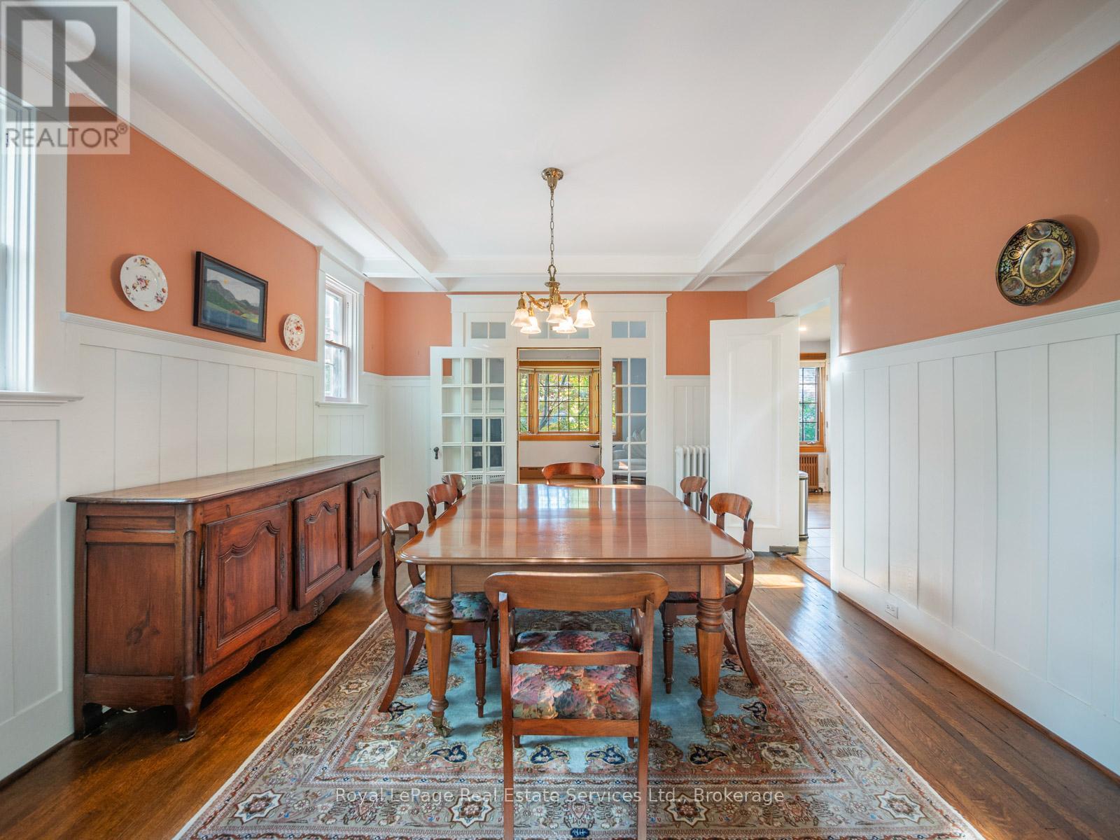 Exceptional Edwardian residence tucked south of the Lakeshore on a private, expansive lot with southwest exposure just steps to the lake & Downtown. This grand residence has been in the same family for 55 years offering an incredible opportunity to reimagine this home for the next generation. See concept plans for renovation/expansion by renowned architect Gren Weis. Substantial brick construction 3 storey, 5 BR home with over 3500SF above grade, a further 1062SF below grade & rare detached 2-storey barn/garage with another 1116SF. Dreamy covered front porch is the perfect place to spend an early autumn evening. Inside you are welcomed into a grand foyer with fireplace & dramatic staircase, high ceilings, hardwood floors and flooded with light through large windows. Lovely front sitting rm with another fireplace & large archway to the dining rm featuring box beaming, picture railing & clerestory windows. The updated kitchen features a centre island, a large window and opens to the breakfast rm / family rm addition. Family rm with gas FP overlooks the garden and has French doors to the sunroom in the southwest corner. The sunroom features wonderful views over the garden and a walk-out to a wooden deck. Main floor powder rm and laundry. There is a nifty back staircase which joins the main grand stairs to the upper floors. The second floor features 3 bedrooms and 2 bathrooms including the primary suite with 3-piece ensuite and sleeping porch overlooking the garden. The third floor has a large landing, 2 further bedrooms, full bathroom & A/C. Replacement double-glazed Pella heritage-spec custom wood windows throughout most of the home. The basement has a semi-separate side entrance and features a finished den with fireplace, recreation room & utility rm. Glorious gardens with great privacy, mature trees and plantings. (id:51158)