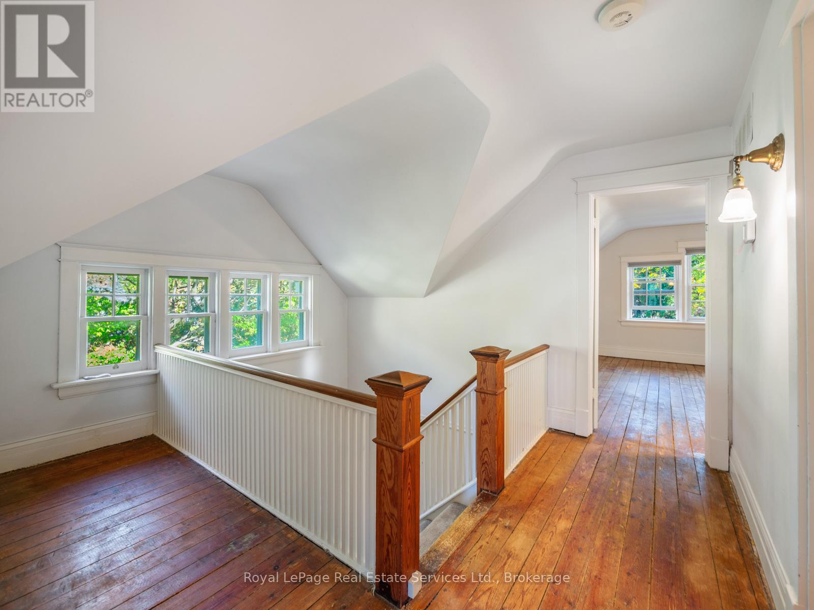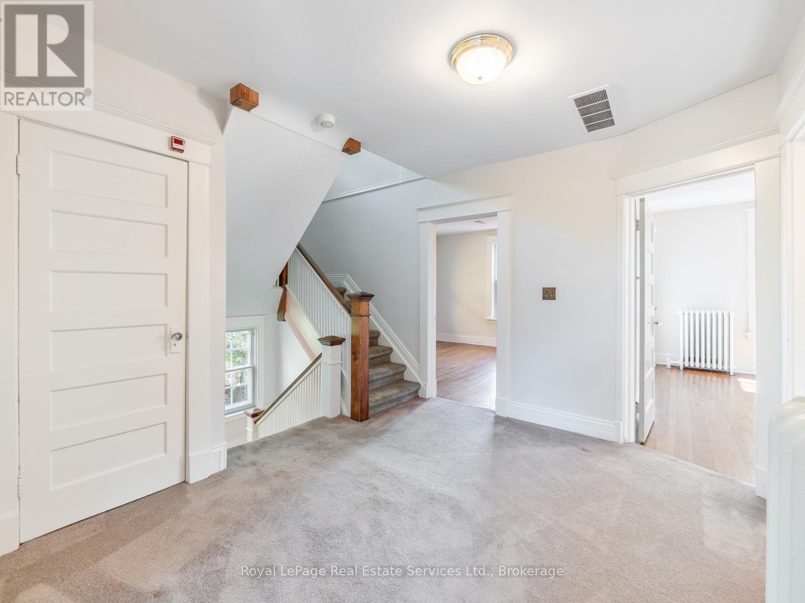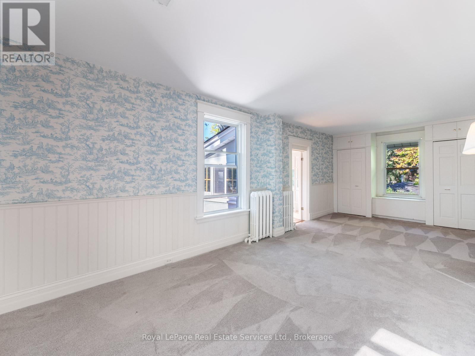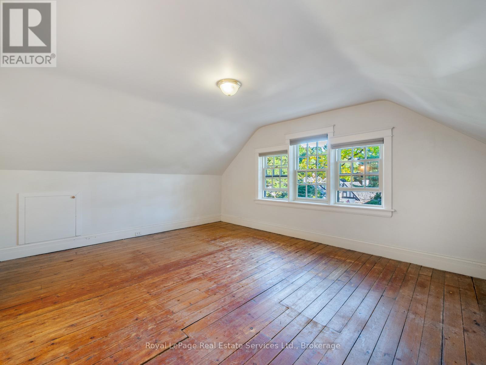Exceptional Edwardian residence tucked south of the Lakeshore on a private, expansive lot with southwest exposure just steps to the lake & Downtown. This grand residence has been in the same family for 55 years offering an incredible opportunity to reimagine this home for the next generation. See concept plans for renovation/expansion by renowned architect Gren Weis. Substantial brick construction 3 storey, 5 BR home with over 3500SF above grade, a further 1062SF below grade & rare detached 2-storey barn/garage with another 1116SF. Dreamy covered front porch is the perfect place to spend an early autumn evening. Inside you are welcomed into a grand foyer with fireplace & dramatic staircase, high ceilings, hardwood floors and flooded with light through large windows. Lovely front sitting rm with another fireplace & large archway to the dining rm featuring box beaming, picture railing & clerestory windows. The updated kitchen features a centre island, a large window and opens to the breakfast rm / family rm addition. Family rm with gas FP overlooks the garden and has French doors to the sunroom in the southwest corner. The sunroom features wonderful views over the garden and a walk-out to a wooden deck. Main floor powder rm and laundry. There is a nifty back staircase which joins the main grand stairs to the upper floors. The second floor features 3 bedrooms and 2 bathrooms including the primary suite with 3-piece ensuite and sleeping porch overlooking the garden. The third floor has a large landing, 2 further bedrooms, full bathroom & A/C. Replacement double-glazed Pella heritage-spec custom wood windows throughout most of the home. The basement has a semi-separate side entrance and features a finished den with fireplace, recreation room & utility rm. Glorious gardens with great privacy, mature trees and plantings. (id:51158)