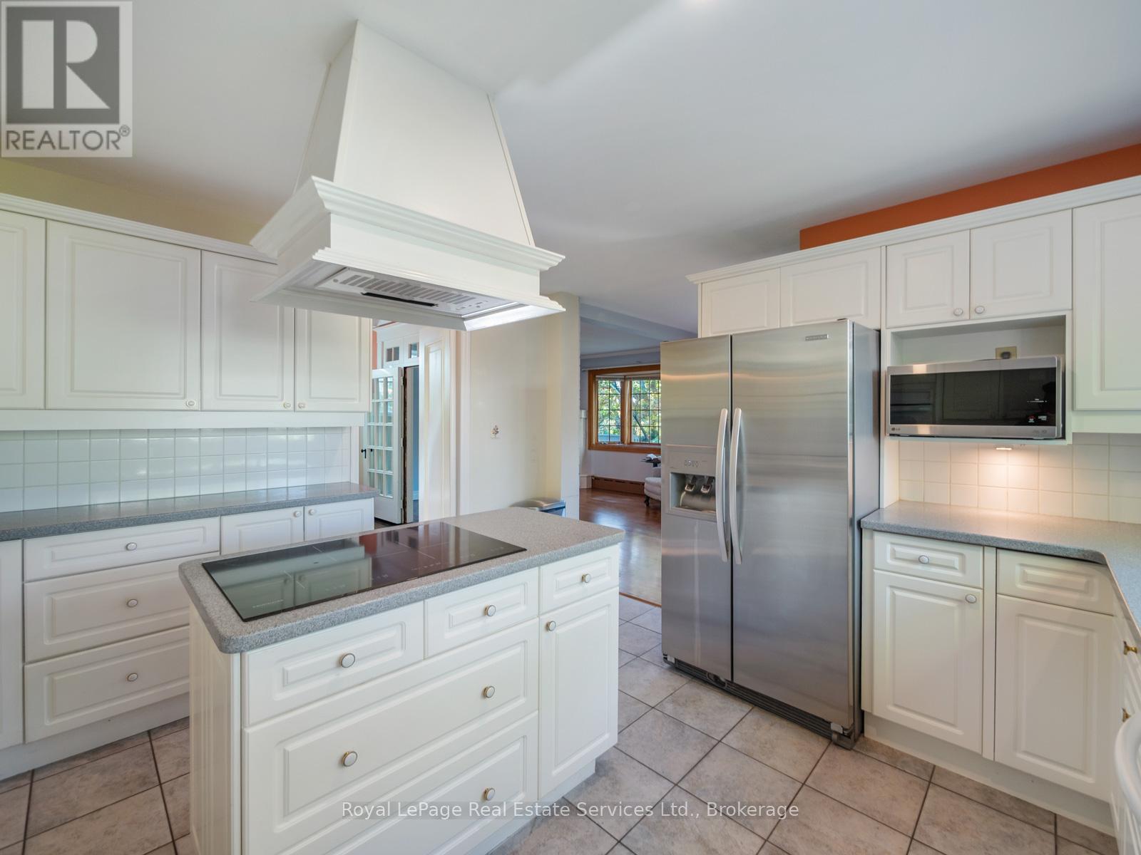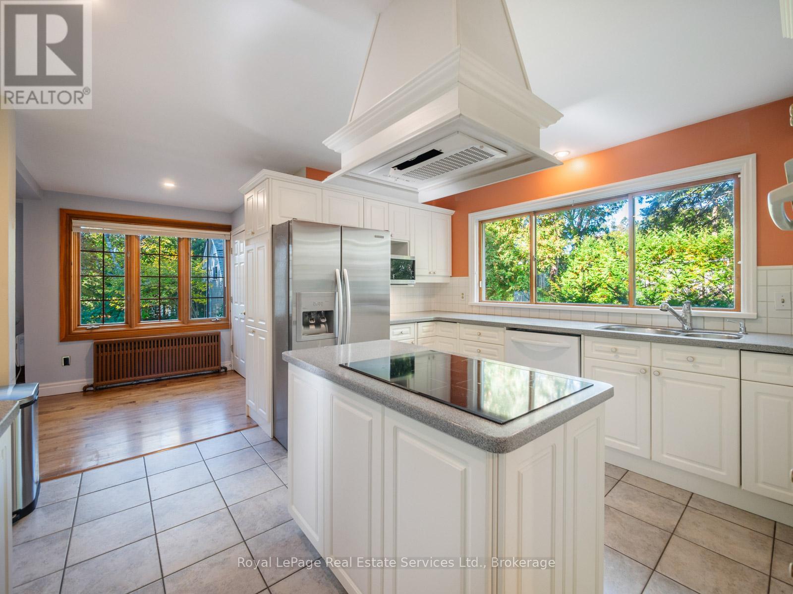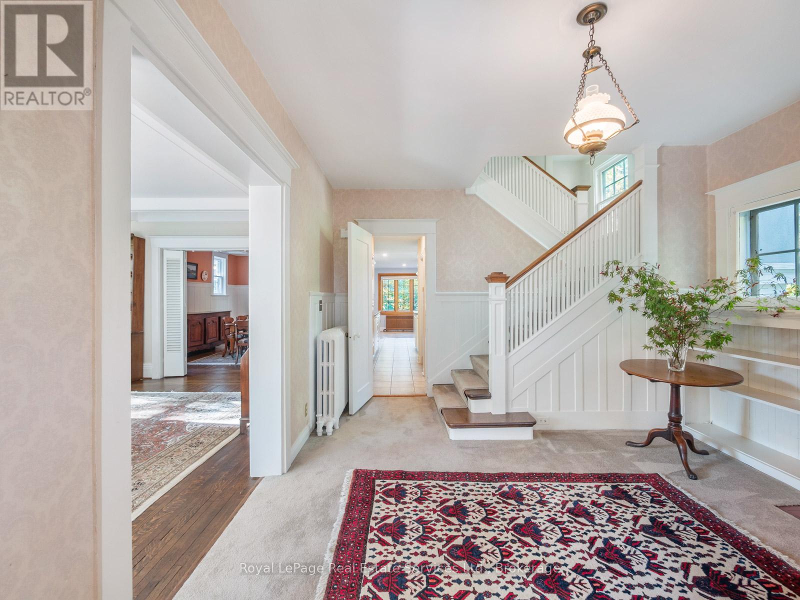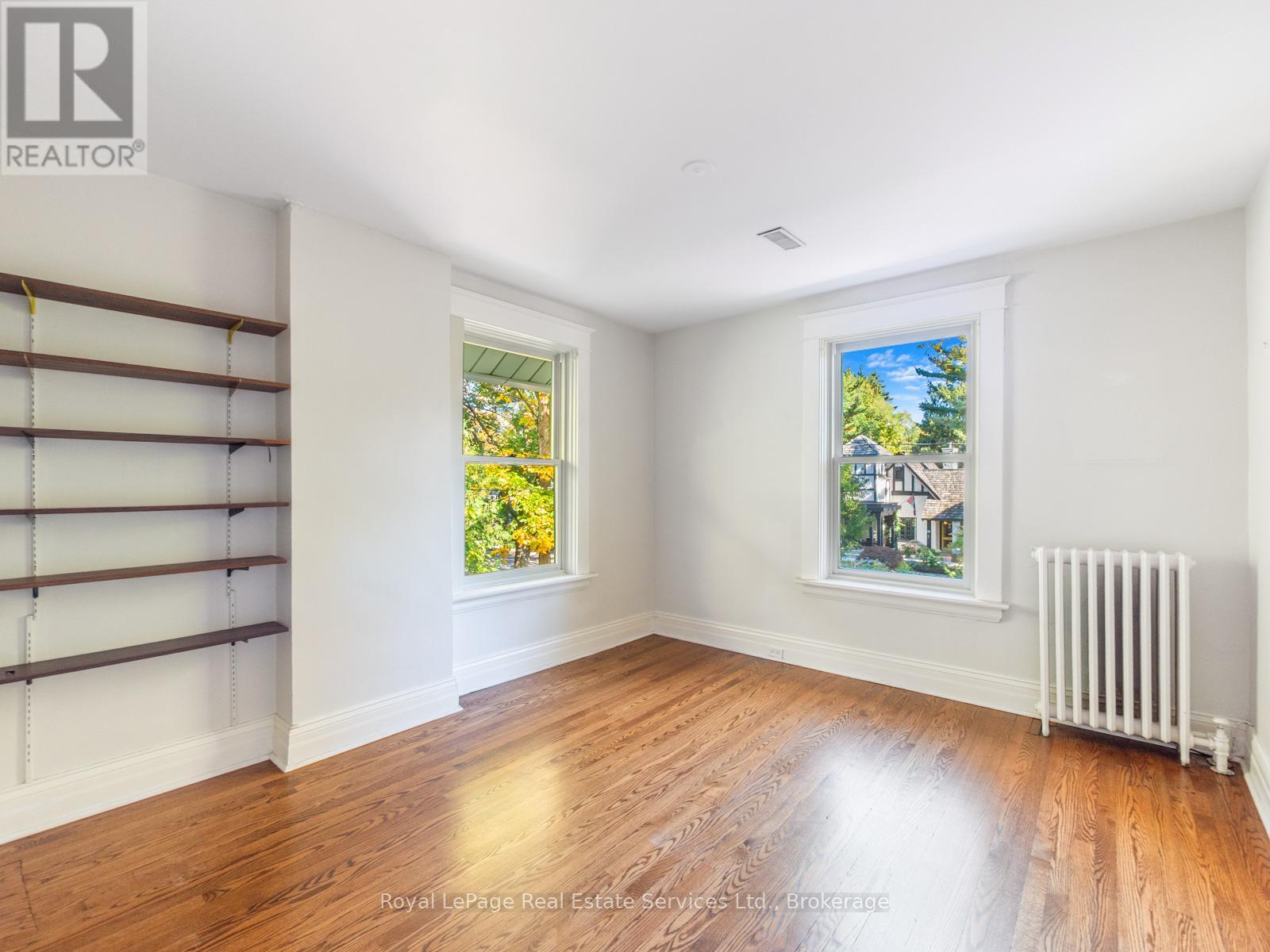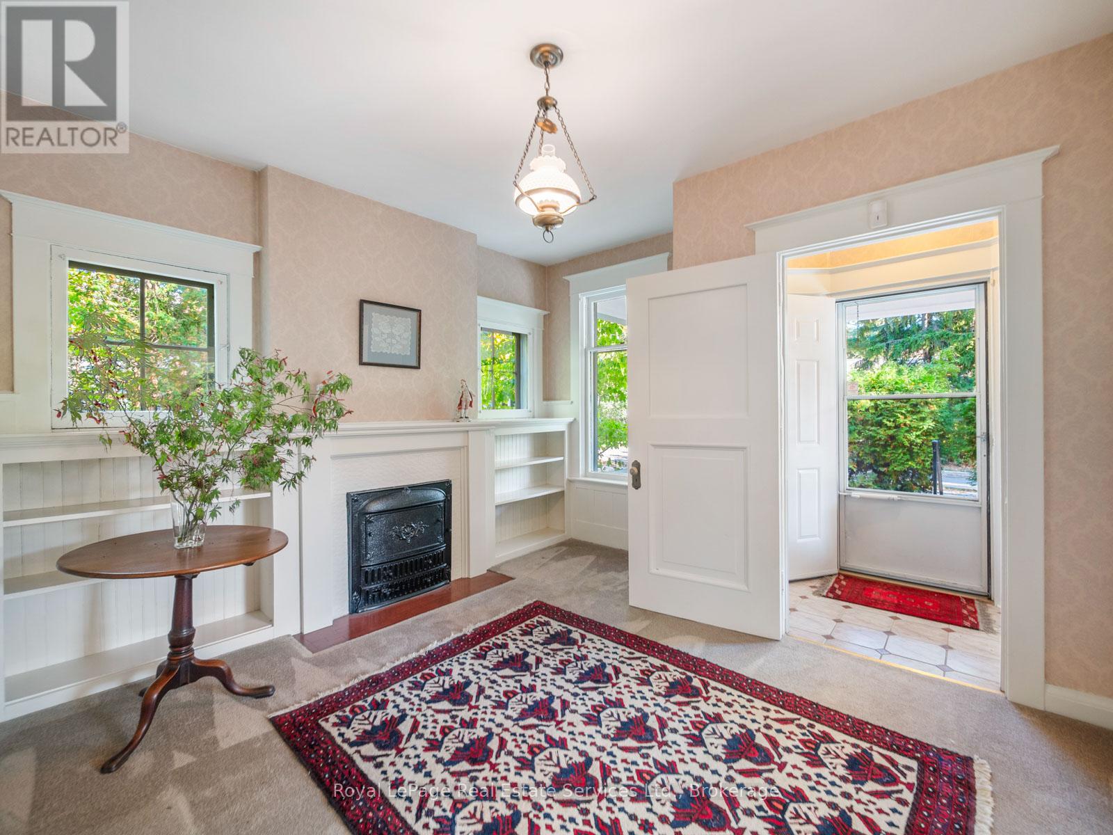 Exceptional Edwardian residence tucked south of the Lakeshore on a private, expansive lot with southwest exposure just steps to the lake & Downtown. This grand residence has been in the same family for 55 years offering an incredible opportunity to reimagine this home for the next generation. See concept plans for renovation/expansion by renowned architect Gren Weis. Substantial brick construction 3 storey, 5 BR home with over 3500SF above grade, a further 1062SF below grade & rare detached 2-storey barn/garage with another 1116SF. Dreamy covered front porch is the perfect place to spend an early autumn evening. Inside you are welcomed into a grand foyer with fireplace & dramatic staircase, high ceilings, hardwood floors and flooded with light through large windows. Lovely front sitting rm with another fireplace & large archway to the dining rm featuring box beaming, picture railing & clerestory windows. The updated kitchen features a centre island, a large window and opens to the breakfast rm / family rm addition. Family rm with gas FP overlooks the garden and has French doors to the sunroom in the southwest corner. The sunroom features wonderful views over the garden and a walk-out to a wooden deck. Main floor powder rm and laundry. There is a nifty back staircase which joins the main grand stairs to the upper floors. The second floor features 3 bedrooms and 2 bathrooms including the primary suite with 3-piece ensuite and sleeping porch overlooking the garden. The third floor has a large landing, 2 further bedrooms, full bathroom & A/C. Replacement double-glazed Pella heritage-spec custom wood windows throughout most of the home. The basement has a semi-separate side entrance and features a finished den with fireplace, recreation room & utility rm. Glorious gardens with great privacy, mature trees and plantings. (id:51158)