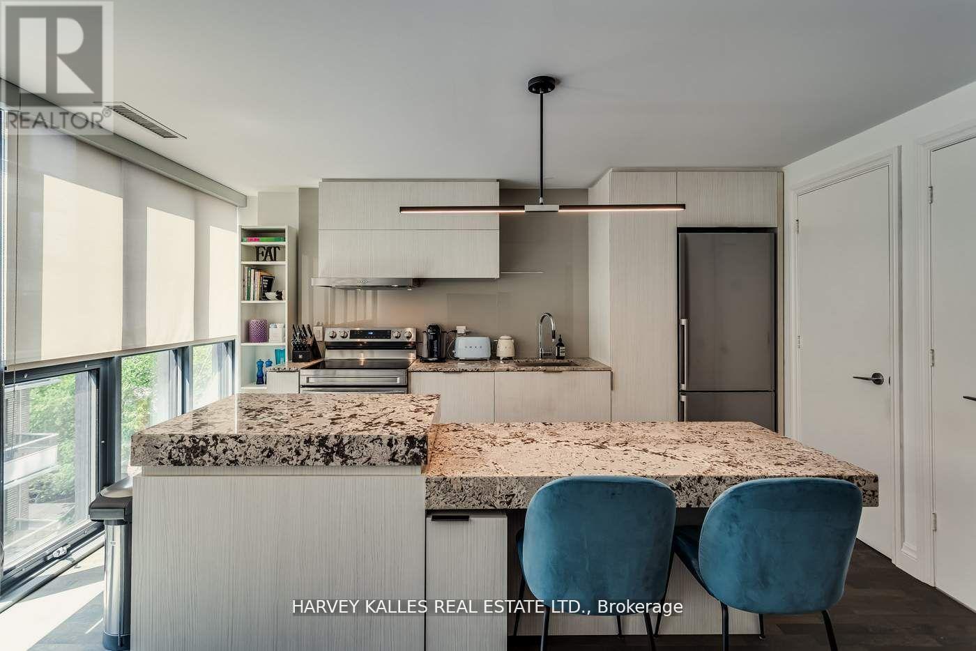 $1,166.30 MonthlySleek & Chic 2-Storey Suite With Over 17.5 Ft Ceilings! Spectacular & Rare 2+2 Bed Layout Offers The Ultimate in Vibe, Comfort & Functionality. Huge Floor-To-Ceiling Windows With Modern and Stylish Finishes Throughout. Ample Living Space And Flexible Den/Office With Built-In Desk That Is Convertible To A Murphy Bed! Plenty Of Storage Throughout Including 2 Different Walk-In Pantry Rooms! Convenience of 2 En-Suite Full Washrooms Plus Main Floor Powder Room. Upstairs Study Nook Is Being Used For Armoire Storage. Fantastic Amenities Including Gym, Concierge, Party Room, Free Visitor Parking, Outdoor Pool, Communal Terrace W/ Seating & BBQs, Steam Room, Lounge & More! Grocery Store On Main Level of Building & Steps From Coffee, Restaurants, Shops, Bars & Transit. Close Walk To Yonge St., Yorkville & Rosedale. Come Check Out This Unique Unit That Blends Condo Life With A Townhouse Type Feel. EXTRAs: Prime Parking Spot & Convenient Locker on 8th Floor. 2022 Upgrades Incl. New Stove, Doors For Office Space, Built-In Organizers In Bedroom & Front Hall Closets, Addition of Several Pot Lights And Fully Painted Unit. Building Hallway Carpets Recently Updated. (id:51158)