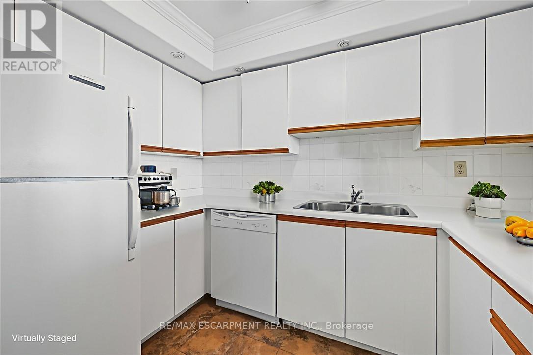 $680.14 MonthlyWelcome to the highly sought after and very well maintained Pinedale Estates in south Burlington. This bright, spacious 1-bedroom, 1.5 bathroom suite offers approximately 830 sq. ft. of comfortable living space and being on the 8th floor provides an abundance of natural light and a peaceful private balcony that overlooks mature greenery, parkland, and the well-maintained grounds of the community. Great open-concept living and dining area framed by floor-to-ceiling windows, creating a warm and inviting atmosphere that's perfect for both everyday living and entertaining. The generously sized primary bedroom features a full 4-piece ensuite. A convenient powder room is also available for guests. Practical features such as underground parking and a separate storage locker add to the ease of condo living. Residents of Pinedale Estates enjoy fabulous amenities including an indoor swimming pool, hot tub, well-equipped fitness centre, billiards room, party room, indoor driving range, library, outdoor BBQ and picnic area, and abundant visitor parking. The location is hard to beat - steps away from Appleby Village with grocery stores, pharmacies, restaurants, and everyday conveniences, and just minutes from Appleby GO Station, major highways, and scenic walking trails. Offering both lifestyle and location, this condo is a fantastic opportunity to live in one of Burlingtons most desirable and well-kept condominium communities. (id:51158)
