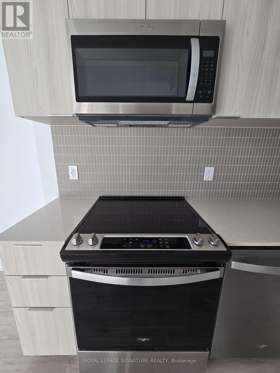 Welcome to Mile & Creek by Mattamy Homes, 720 Whitlock Ave - be the very first to call this brand-new, never-lived-in 1 bedroom plus den condo home. Thoughtfully designed for modern comfort and lifestyle living, this bright and stylish suite features soaring 9-foot ceilings, floor-to-ceiling windows, and an open-concept layout that fills the space with natural light. The sleek contemporary kitchen is equipped with stainless-steel appliances, quartz countertops, and modern cabinetry, perfect for everyday living and effortless entertaining. The den offers flexible use as an home office, guest space, or storage. Enjoy in-suite laundry and unwind on the private balcony with peaceful views. Residents enjoy resort-style amenities including a fully equipped fitness centre, yoga and wellness studio, co-working and social lounges, party and media rooms, rooftop and outdoor entertainment terraces with BBQs, pet spa, EV charging, visitor parking, 24-hour concierge and security, plus lush green spaces and walking trails right outside your door. Ideally located in the heart of Milton, just minutes from major highways (401 & 407), Milton GO Transit, shopping, dining, parks, and schools - offering the perfect balance of style, convenience, and community. (id:51158)