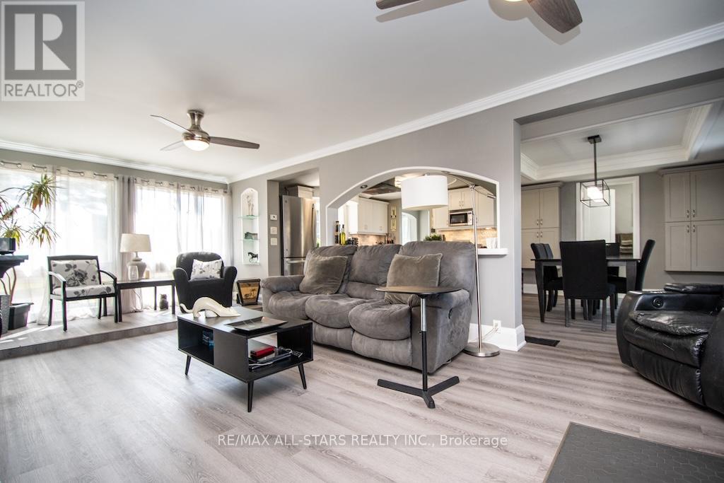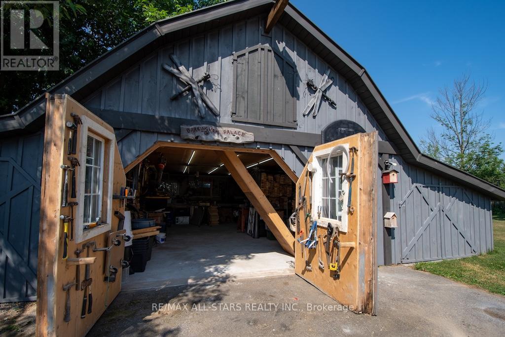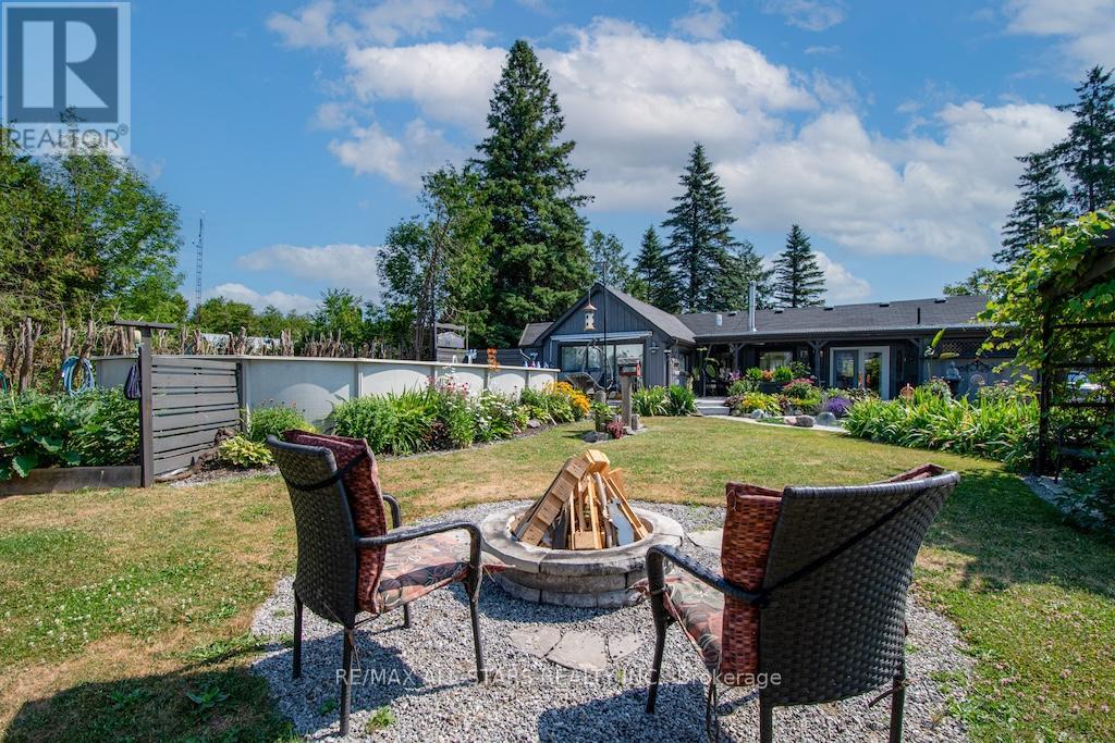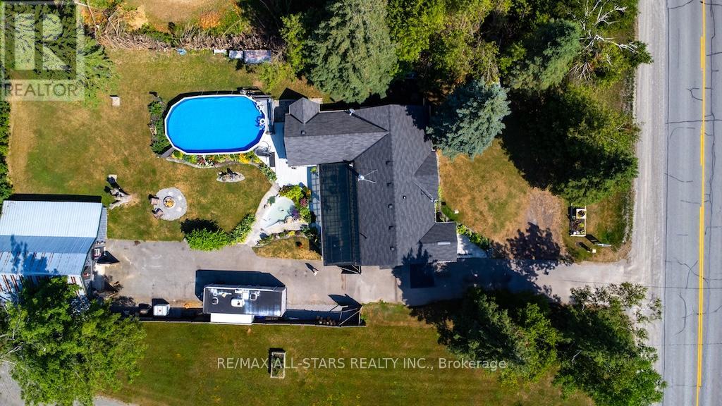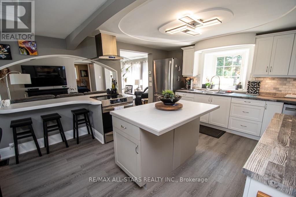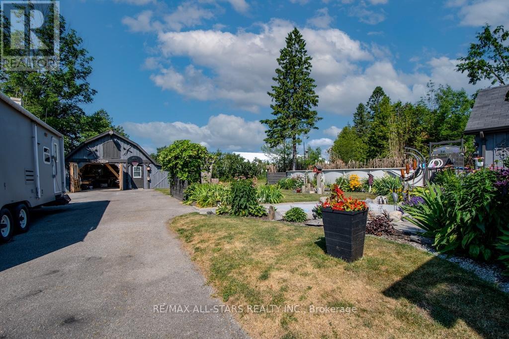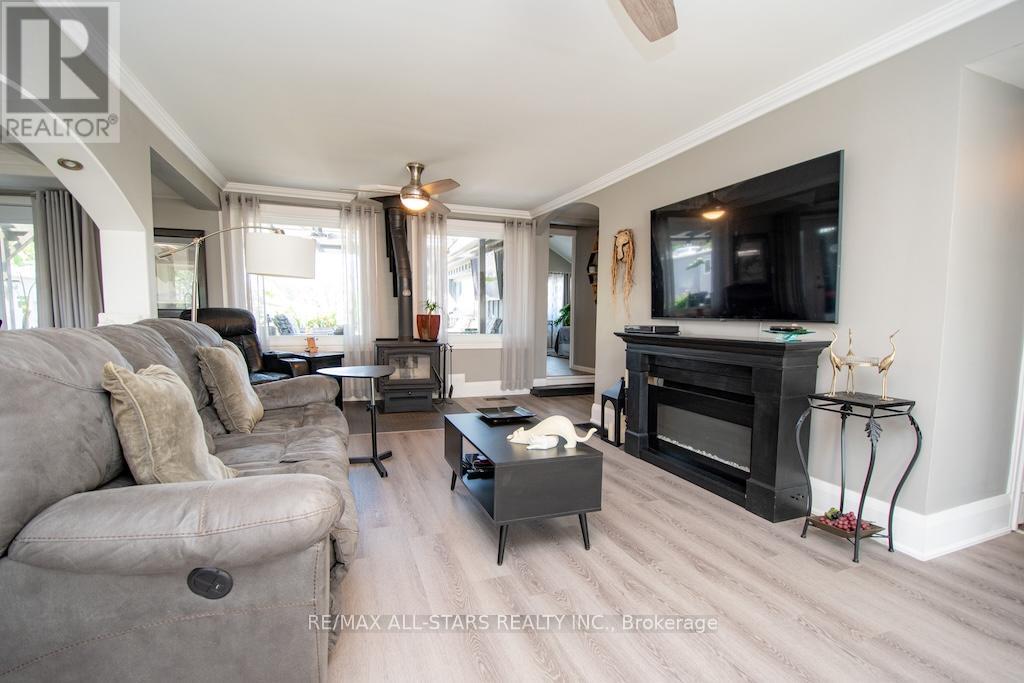 This stunning 3+1 bedroom, 2 bath bungalow sits on just under half an acre only 5 minutes from downtown Lindsay and boasts exceptional features both inside and out. The exterior showcases a freshly painted Board and Batten finish and a large, fully paved driveway with ample space for all your vehicles and recreational toys. Close the gates and escape into your backyard paradise! The new oversized entertaining deck includes an outdoor living room, a covered pergola, and a BBQ area with a hot and cold water sink. New granite walkways lead you to an above-ground pool, a newly constructed fire pit, and a concrete pond with a fountain. Additionally, the rear yard features a large insulated and heated barn/shop, matching the Board and Batten style, equipped with its own 100 amp panel.Inside, no detail has been overlooked. The home features new flooring throughout, a beautiful coffered ceiling in the dining room, all new crown moulding, extra kitchen pantries, new appliances, countertops, central air, and renovated bathrooms. The quality craftsmanship and true pride of ownership shine through in every aspect of this home. Plan your visit today! (id:51158)