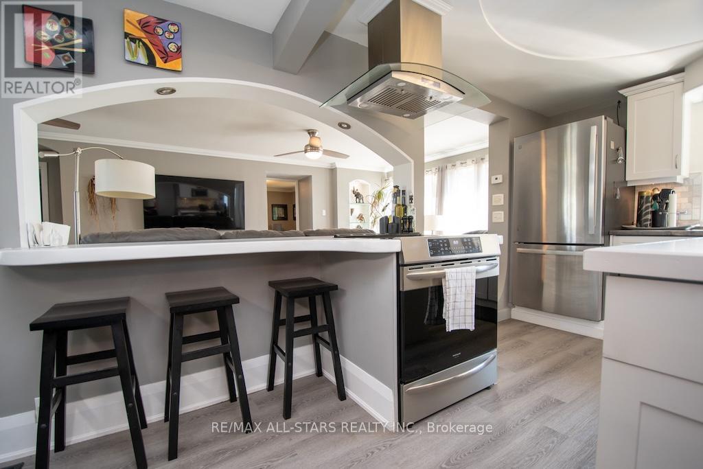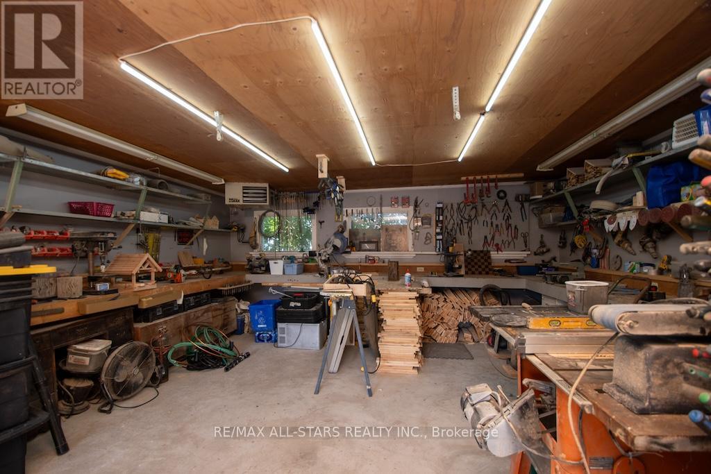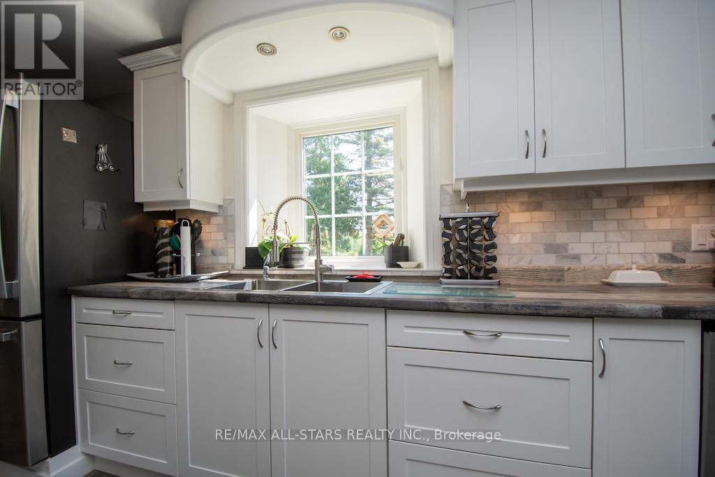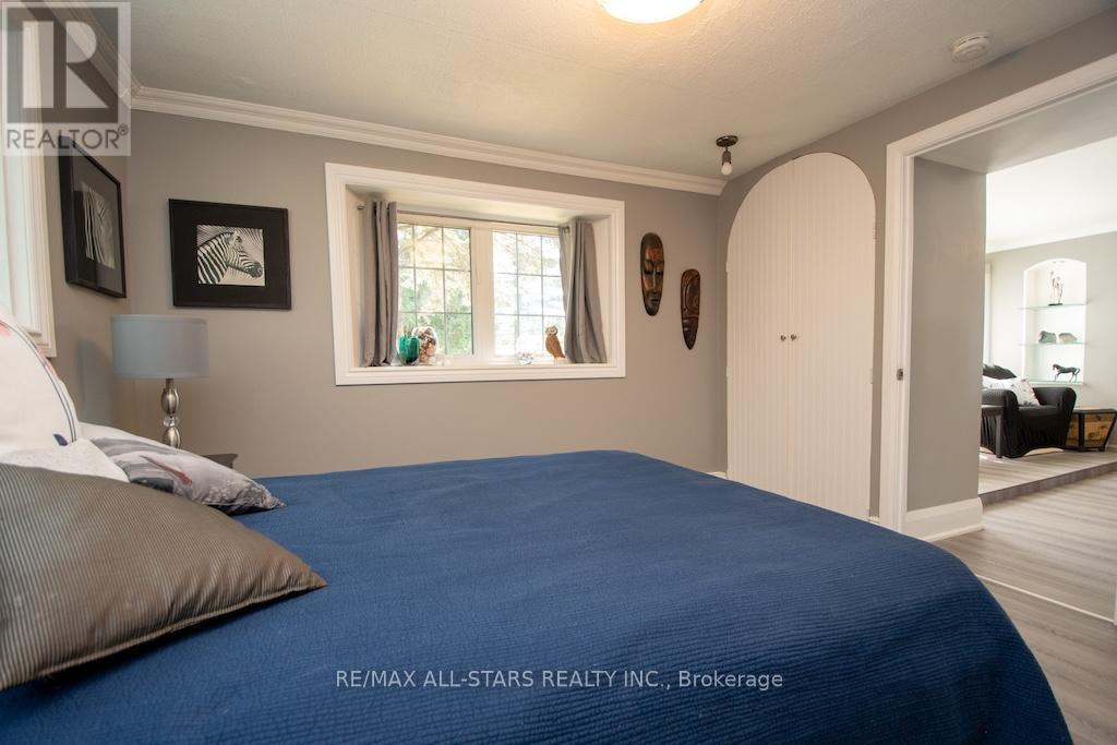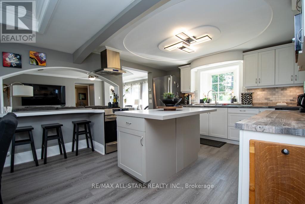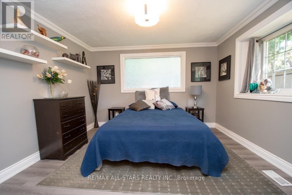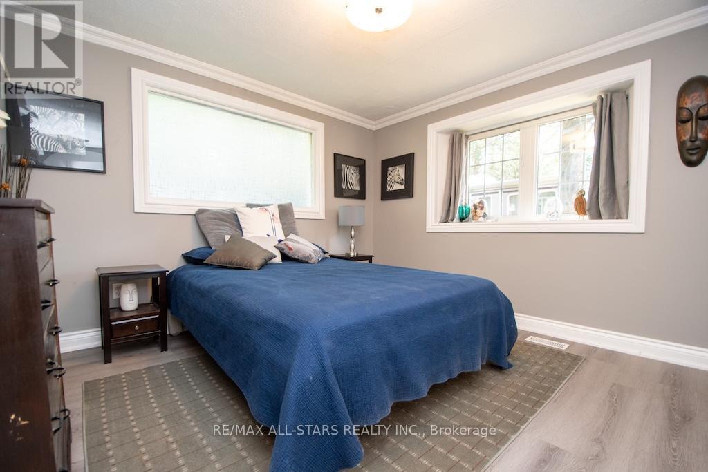 This stunning 3+1 bedroom, 2 bath bungalow sits on just under half an acre only 5 minutes from downtown Lindsay and boasts exceptional features both inside and out. The exterior showcases a freshly painted Board and Batten finish and a large, fully paved driveway with ample space for all your vehicles and recreational toys. Close the gates and escape into your backyard paradise! The new oversized entertaining deck includes an outdoor living room, a covered pergola, and a BBQ area with a hot and cold water sink. New granite walkways lead you to an above-ground pool, a newly constructed fire pit, and a concrete pond with a fountain. Additionally, the rear yard features a large insulated and heated barn/shop, matching the Board and Batten style, equipped with its own 100 amp panel.Inside, no detail has been overlooked. The home features new flooring throughout, a beautiful coffered ceiling in the dining room, all new crown moulding, extra kitchen pantries, new appliances, countertops, central air, and renovated bathrooms. The quality craftsmanship and true pride of ownership shine through in every aspect of this home. Plan your visit today! (id:51158)