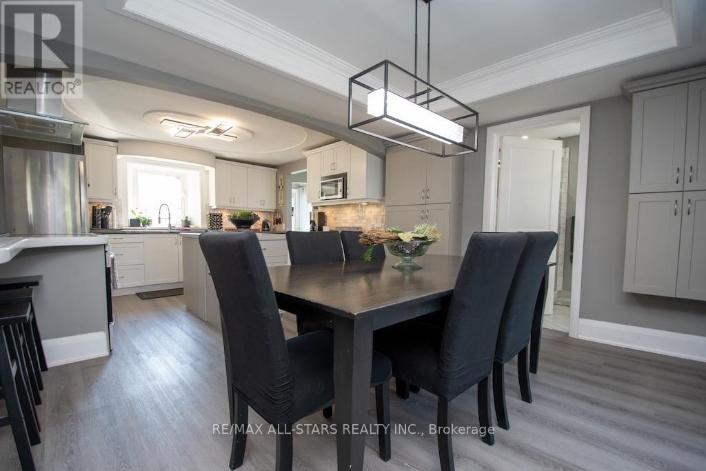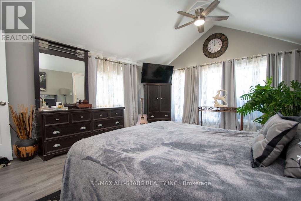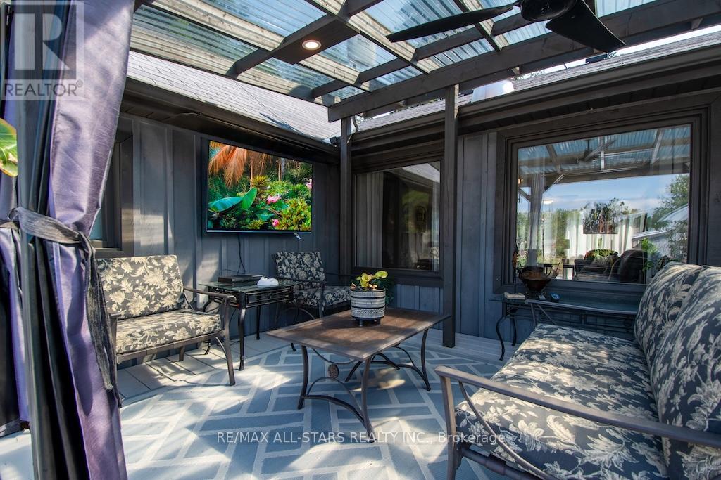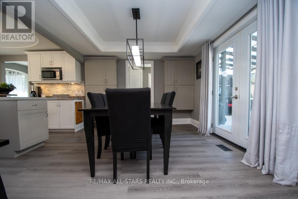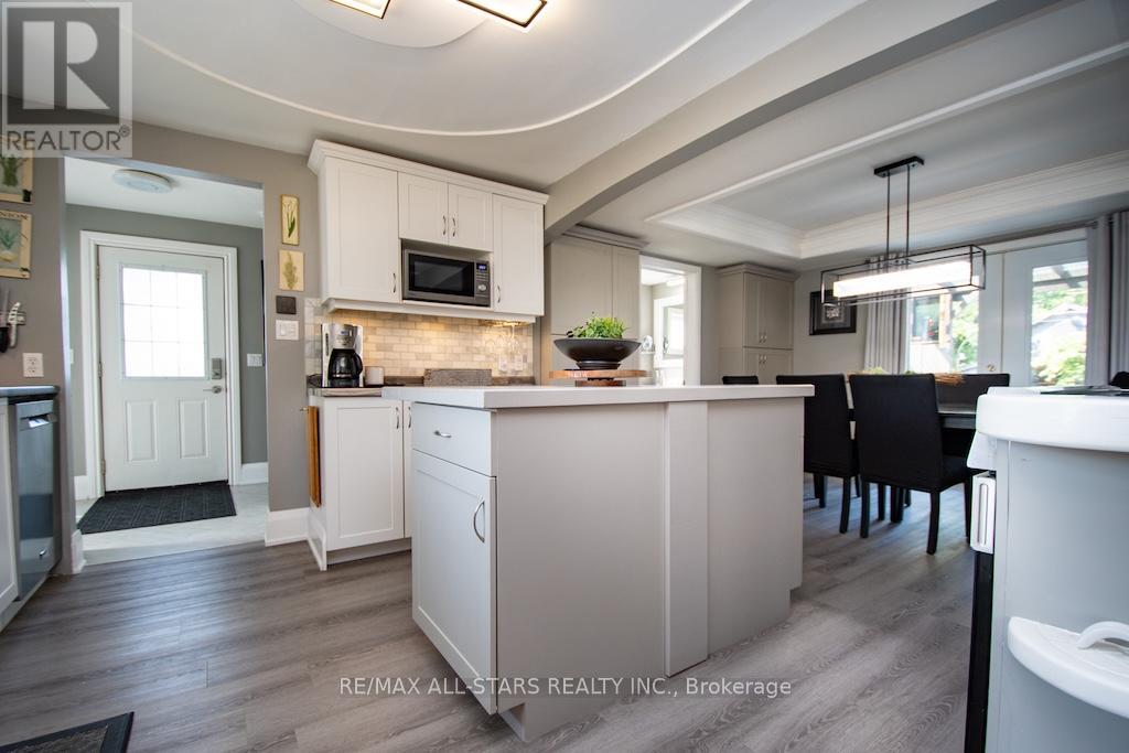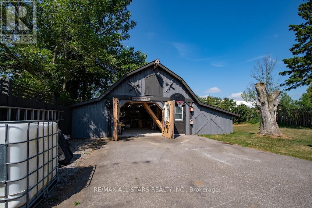 This stunning 3+1 bedroom, 2 bath bungalow sits on just under half an acre only 5 minutes from downtown Lindsay and boasts exceptional features both inside and out. The exterior showcases a freshly painted Board and Batten finish and a large, fully paved driveway with ample space for all your vehicles and recreational toys. Close the gates and escape into your backyard paradise! The new oversized entertaining deck includes an outdoor living room, a covered pergola, and a BBQ area with a hot and cold water sink. New granite walkways lead you to an above-ground pool, a newly constructed fire pit, and a concrete pond with a fountain. Additionally, the rear yard features a large insulated and heated barn/shop, matching the Board and Batten style, equipped with its own 100 amp panel.Inside, no detail has been overlooked. The home features new flooring throughout, a beautiful coffered ceiling in the dining room, all new crown moulding, extra kitchen pantries, new appliances, countertops, central air, and renovated bathrooms. The quality craftsmanship and true pride of ownership shine through in every aspect of this home. Plan your visit today! (id:51158)