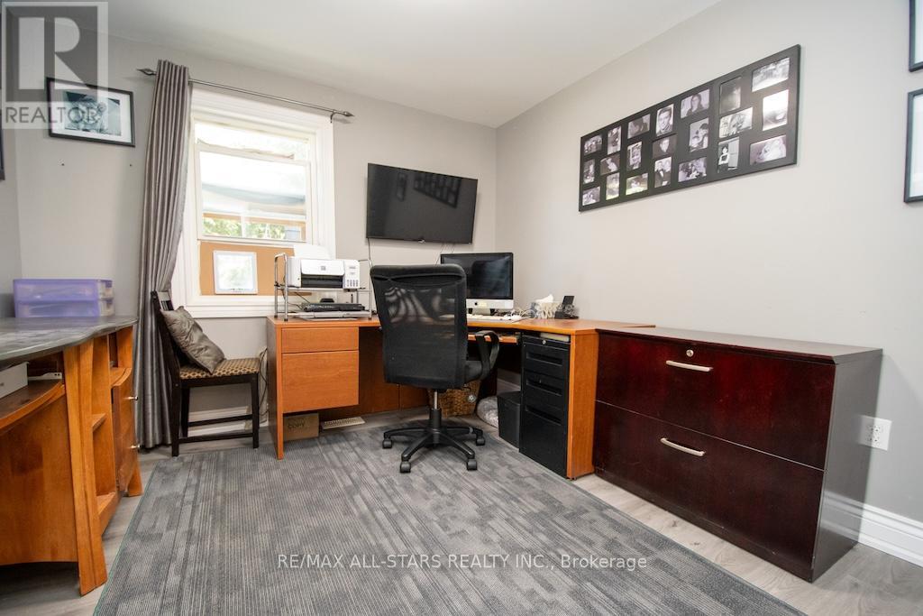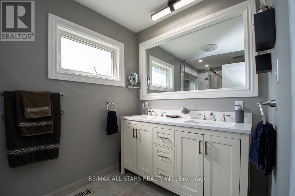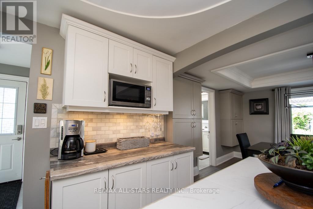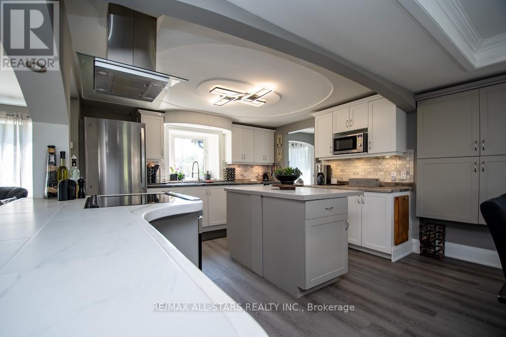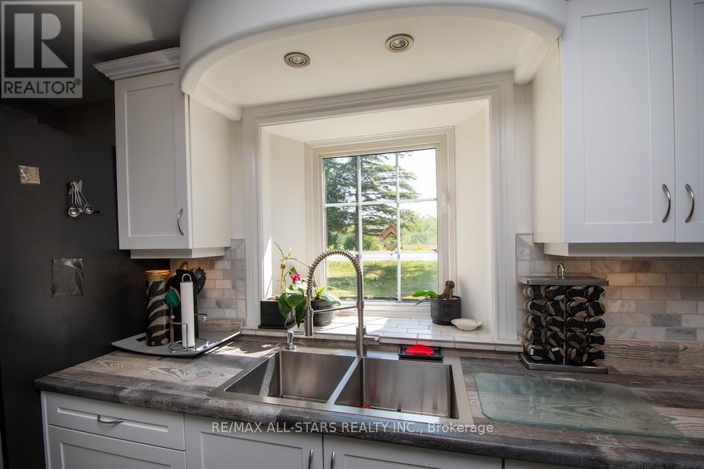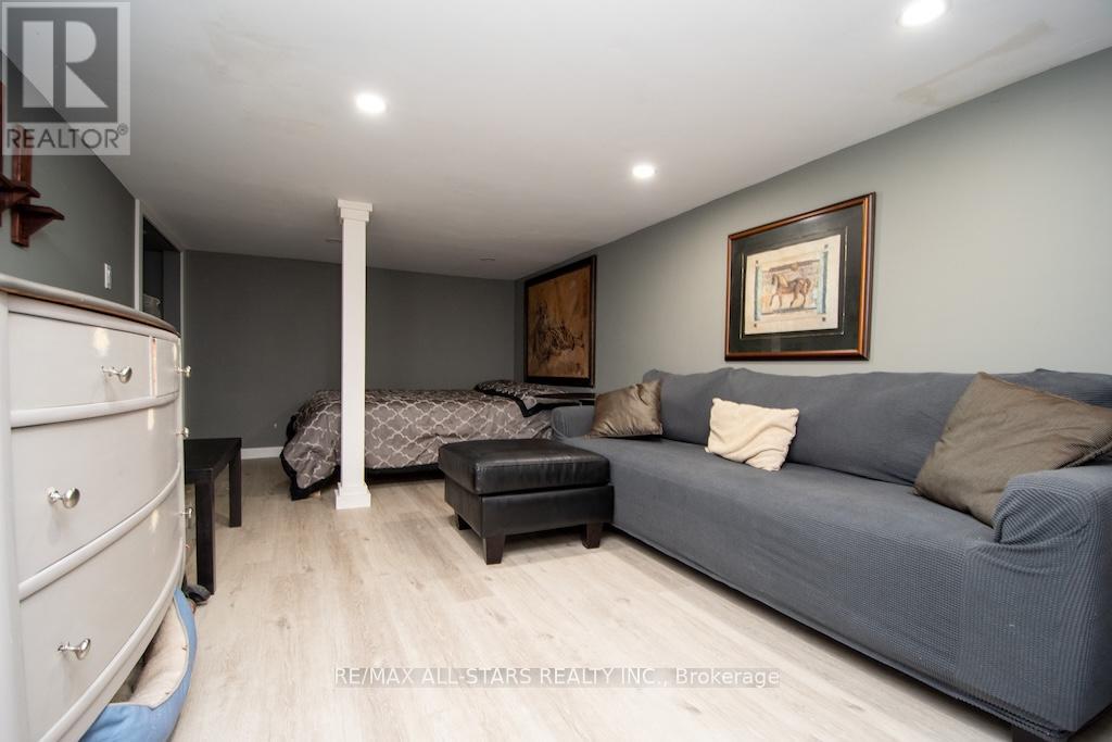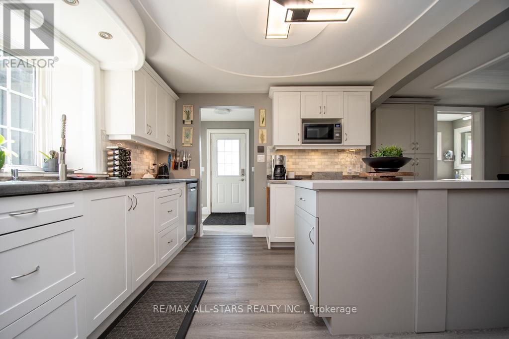This stunning 3+1 bedroom, 2 bath bungalow sits on just under half an acre only 5 minutes from downtown Lindsay and boasts exceptional features both inside and out. The exterior showcases a freshly painted Board and Batten finish and a large, fully paved driveway with ample space for all your vehicles and recreational toys. Close the gates and escape into your backyard paradise! The new oversized entertaining deck includes an outdoor living room, a covered pergola, and a BBQ area with a hot and cold water sink. New granite walkways lead you to an above-ground pool, a newly constructed fire pit, and a concrete pond with a fountain. Additionally, the rear yard features a large insulated and heated barn/shop, matching the Board and Batten style, equipped with its own 100 amp panel.Inside, no detail has been overlooked. The home features new flooring throughout, a beautiful coffered ceiling in the dining room, all new crown moulding, extra kitchen pantries, new appliances, countertops, central air, and renovated bathrooms. The quality craftsmanship and true pride of ownership shine through in every aspect of this home. Plan your visit today! (id:51158)