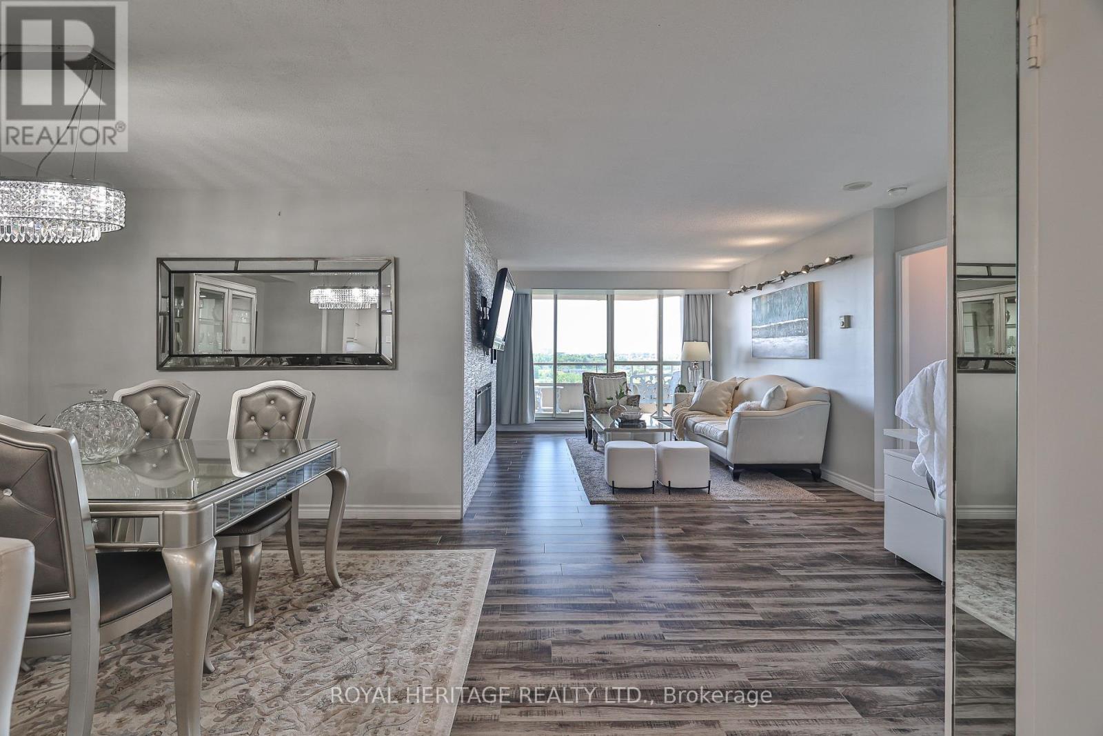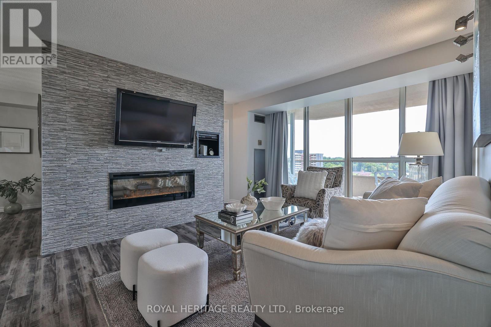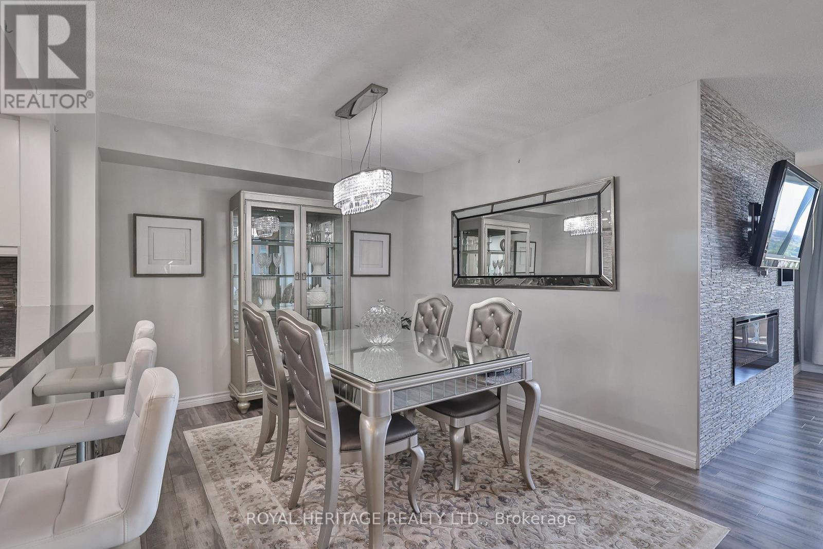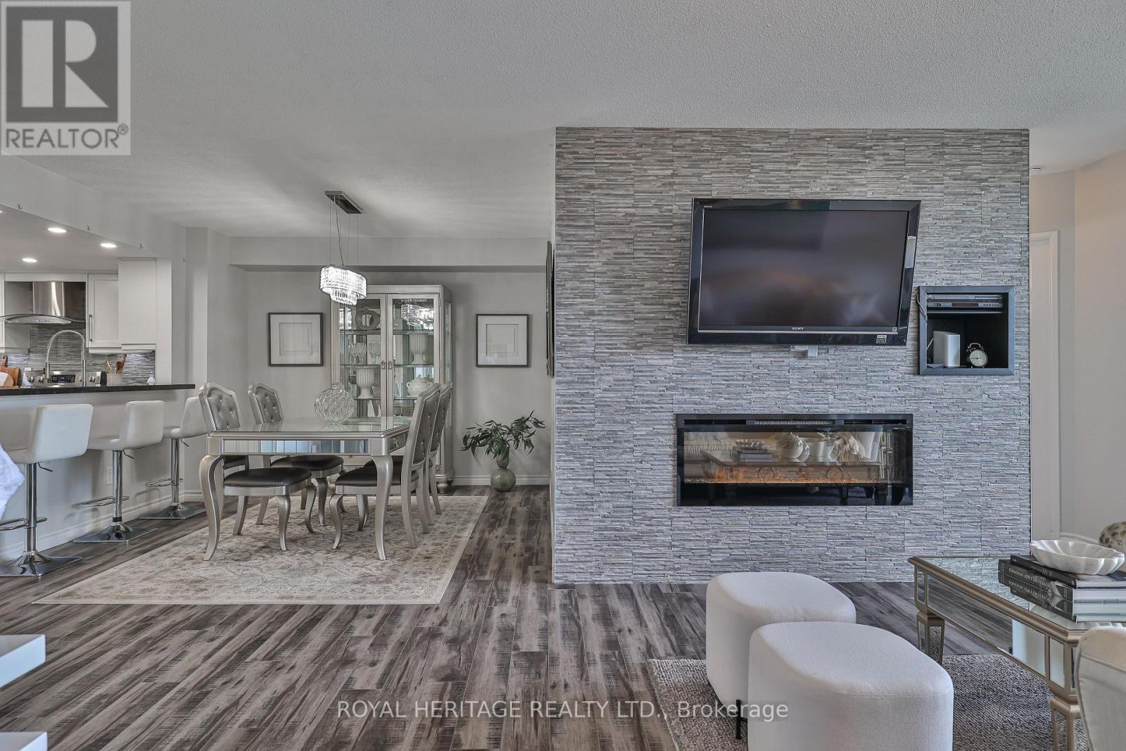 WOW! Over 1,200 sq ft of bright, beautifully upgraded space in the high-demand Savoy building with all utilities included in the maintenance fees (Rogers Ignite TV too!) * This split 2 bed + den layout, 2 full bath suite is full of stylish touches with thousands of dollars spent in upgrades * The modern kitchen is a showstopper: sleek quartz countertops & breakfast bar, updated backsplash, double door stainless steel appliances, double sink, and a breakfast bar that flows seamlessly into the main living space. There's also a walk-in pantry/storage room nearby for added convenience * The separate dining room makes hosting a breeze, while the open-concept living area features a cozy fireplace and walk-out to a great-sized balcony with a gorgeous west-facing view perfect for your morning coffee or evening unwind * The primary bedroom is a true retreat with a walk-in closet + secondary his closet, and a 4-piece ensuite with a large stand-up shower and tons of storage * The second bedroom is ideal for guests, and the versatile den works beautifully as a home office or reading nook * Bonus: There's even a linen closet for extra storage * Laminate flooring throughout, large windows, clean, bright, and move-in ready, this one checks all the boxes, and then some * Enjoy space, style, and comfort in a building known for its excellent management and unbeatable location * Building always looks fantastic with its fabulous landscaping & well maintained common areas* Don't wait- suites like this rarely come up! Building amenities include 24 hour security, indoor pool, sauna, large party room & guest Suites * Walking distance to TTC, retail stores, mins to the 401/407 *. Book your showing today! * Limited pets & no smoking building * 1 Locker & 1 Parking spot included * (id:51158)