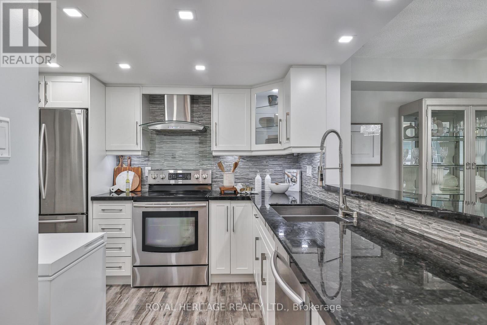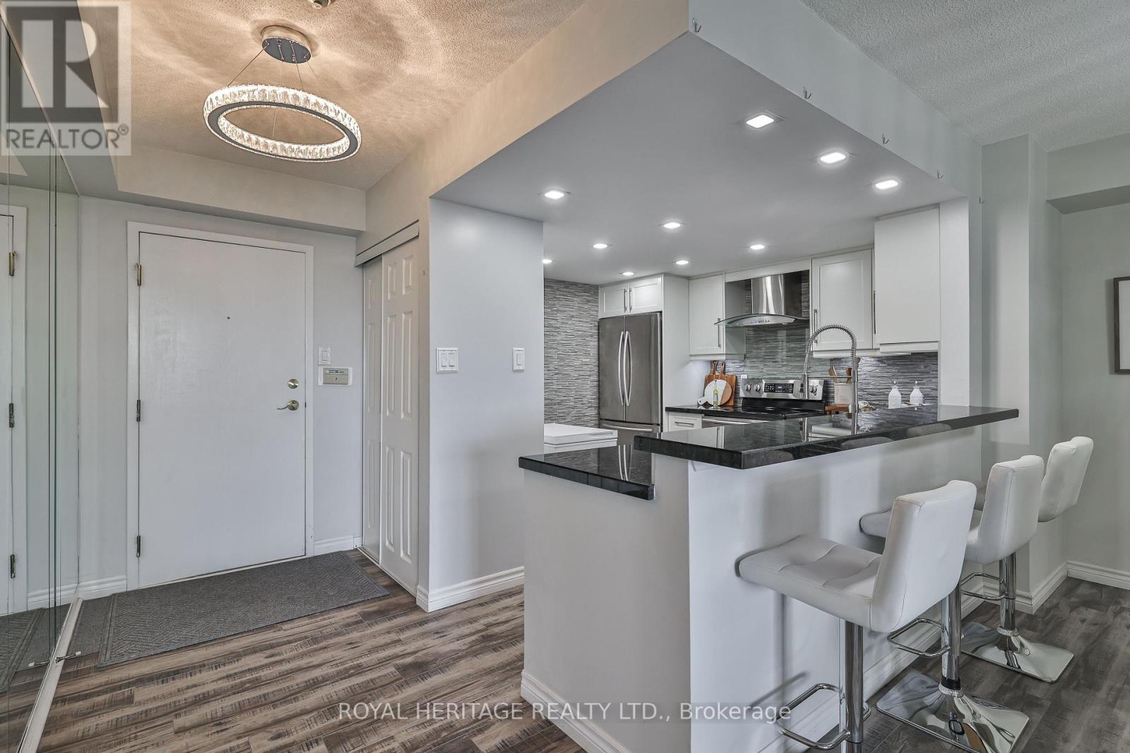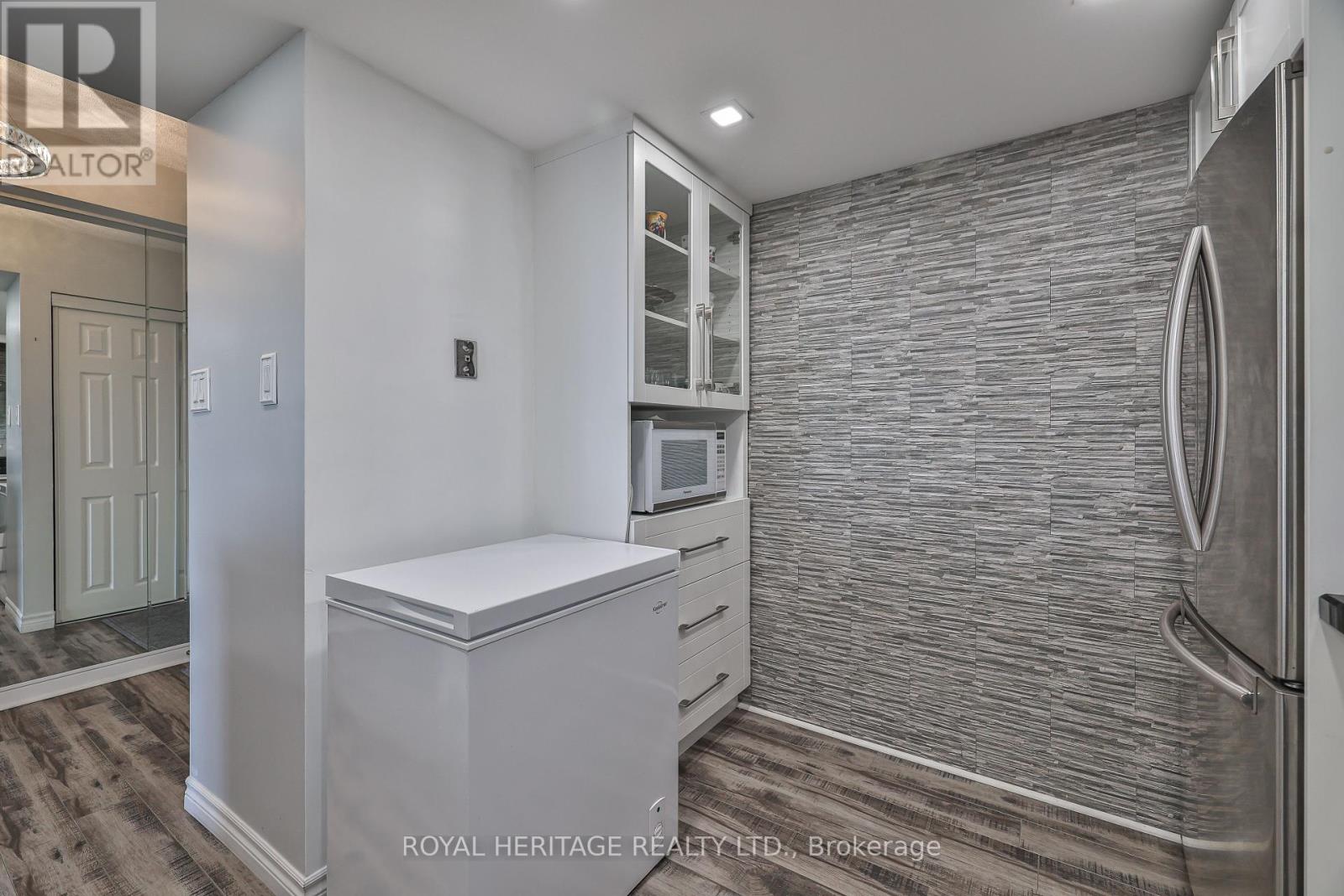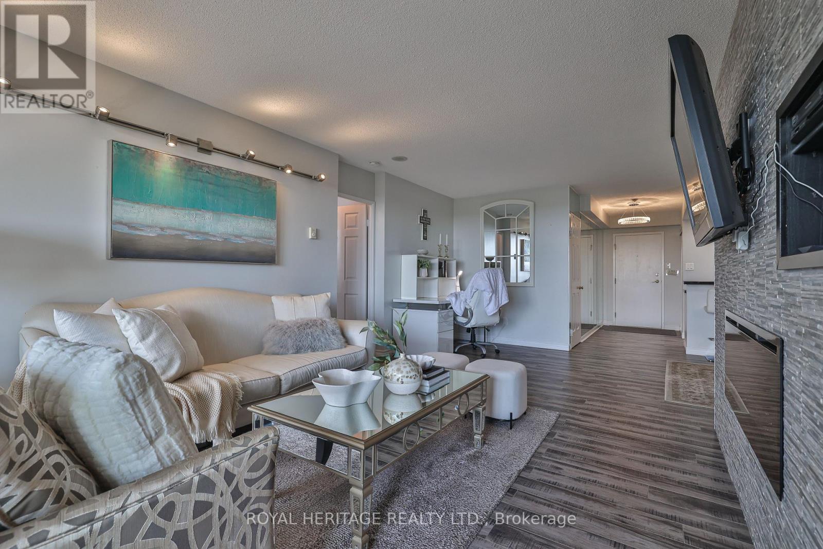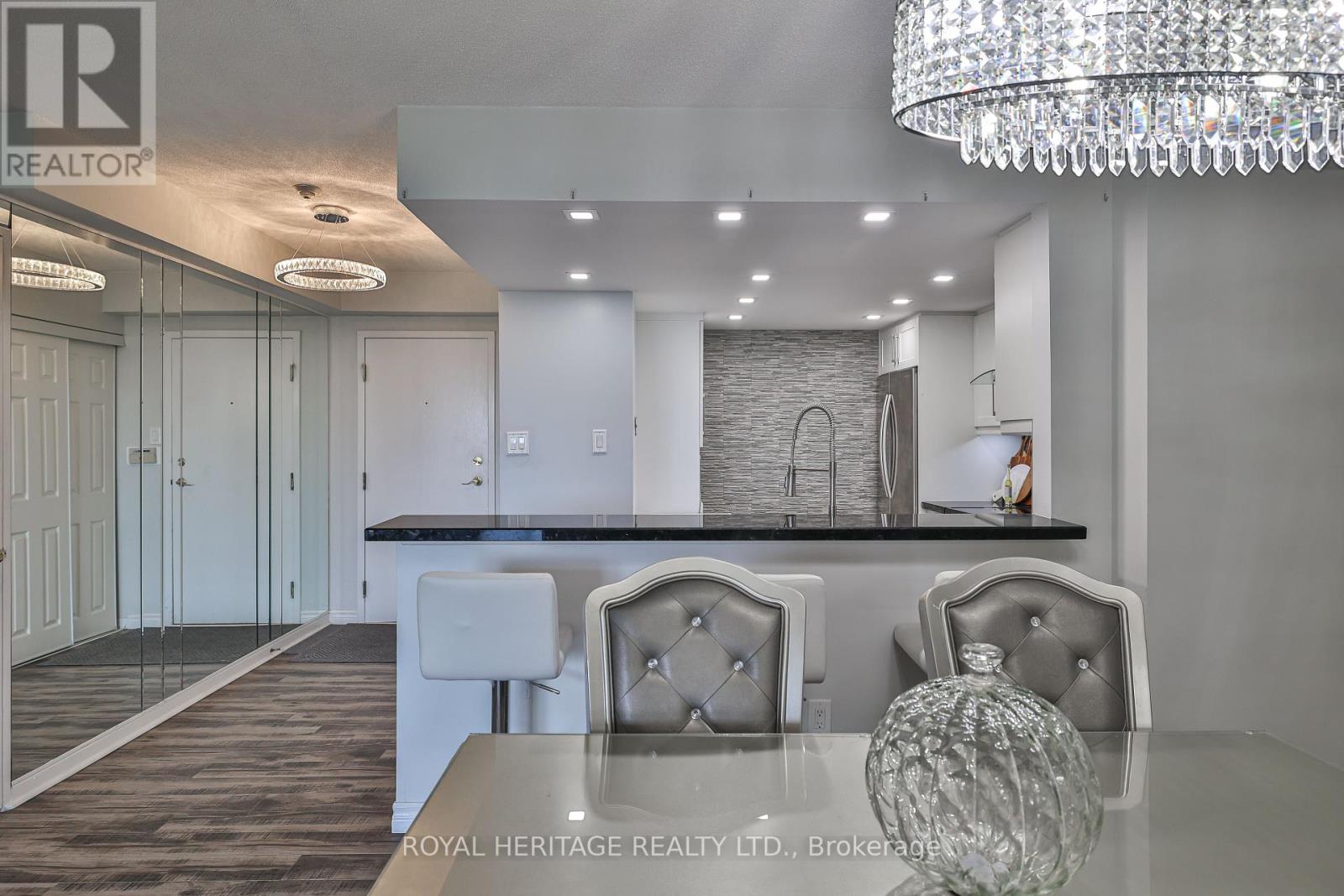WOW! Over 1,200 sq ft of bright, beautifully upgraded space in the high-demand Savoy building with all utilities included in the maintenance fees (Rogers Ignite TV too!) * This split 2 bed + den layout, 2 full bath suite is full of stylish touches with thousands of dollars spent in upgrades * The modern kitchen is a showstopper: sleek quartz countertops & breakfast bar, updated backsplash, double door stainless steel appliances, double sink, and a breakfast bar that flows seamlessly into the main living space. There's also a walk-in pantry/storage room nearby for added convenience * The separate dining room makes hosting a breeze, while the open-concept living area features a cozy fireplace and walk-out to a great-sized balcony with a gorgeous west-facing view perfect for your morning coffee or evening unwind * The primary bedroom is a true retreat with a walk-in closet + secondary his closet, and a 4-piece ensuite with a large stand-up shower and tons of storage * The second bedroom is ideal for guests, and the versatile den works beautifully as a home office or reading nook * Bonus: There's even a linen closet for extra storage * Laminate flooring throughout, large windows, clean, bright, and move-in ready, this one checks all the boxes, and then some * Enjoy space, style, and comfort in a building known for its excellent management and unbeatable location * Building always looks fantastic with its fabulous landscaping & well maintained common areas* Don't wait- suites like this rarely come up! Building amenities include 24 hour security, indoor pool, sauna, large party room & guest Suites * Walking distance to TTC, retail stores, mins to the 401/407 *. Book your showing today! * Limited pets & no smoking building * 1 Locker & 1 Parking spot included * (id:51158)