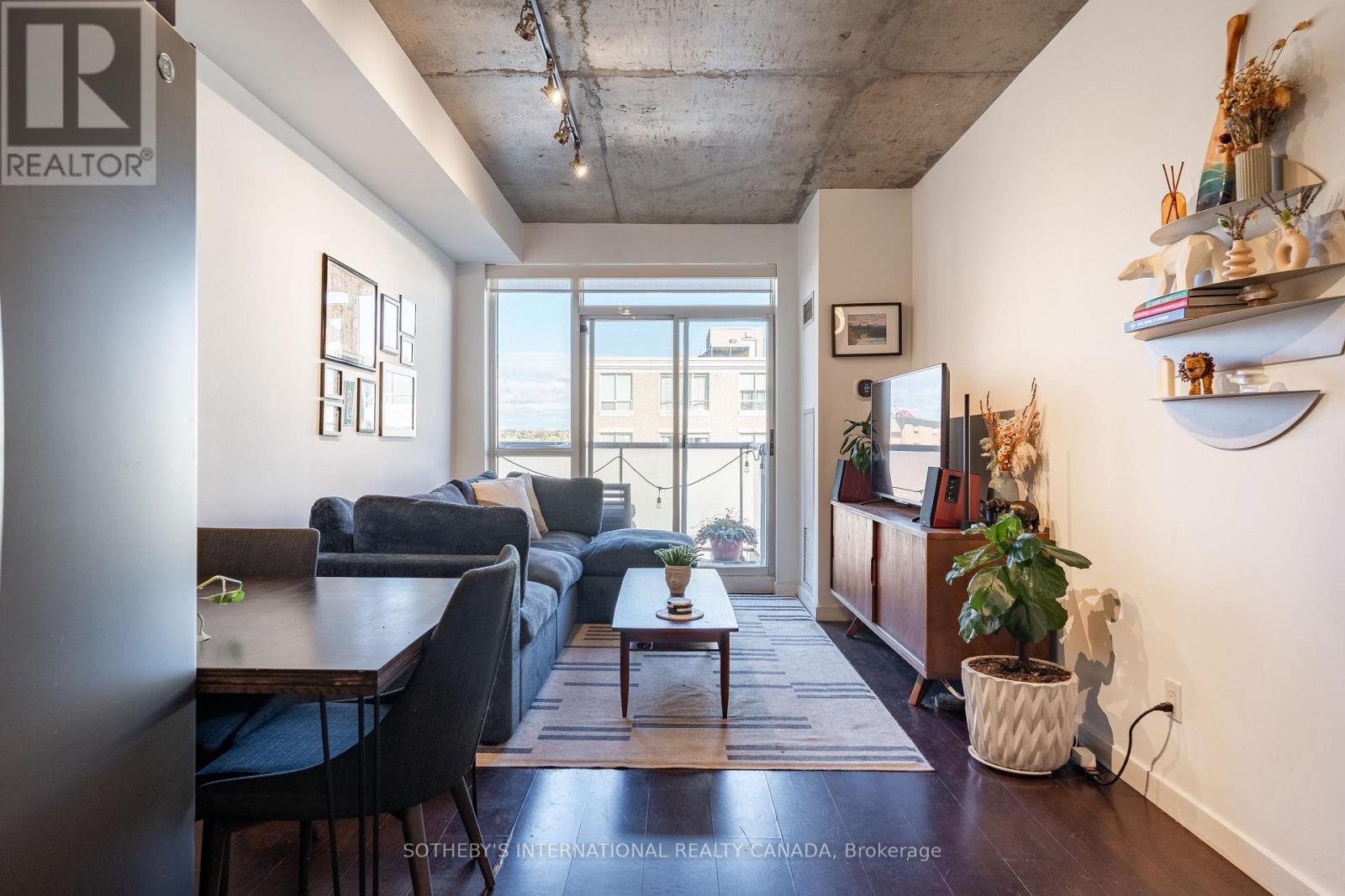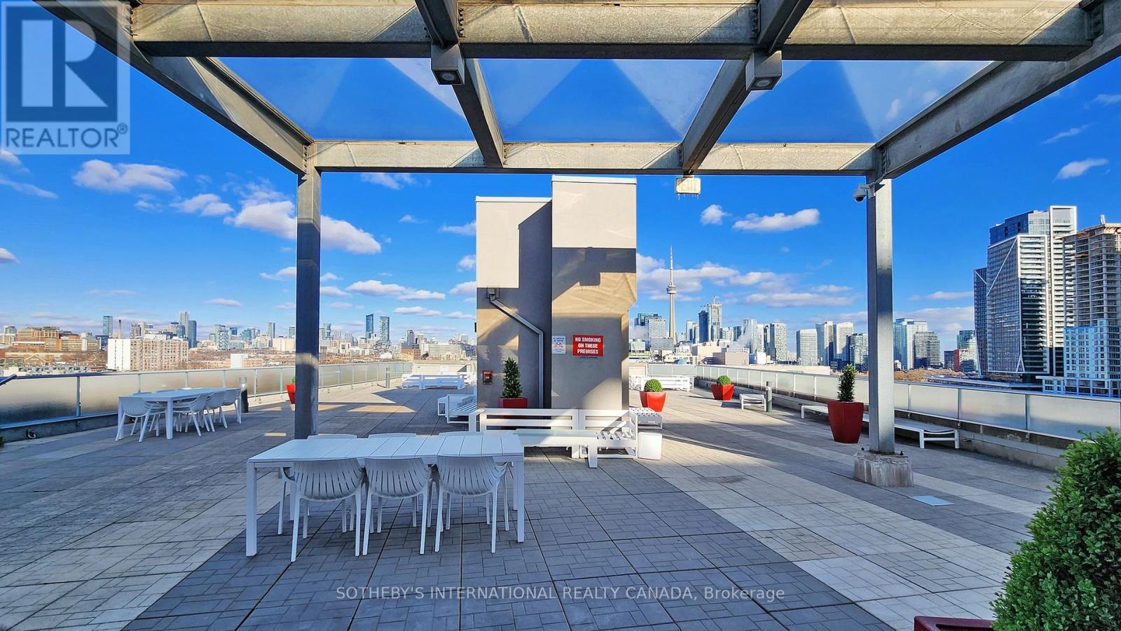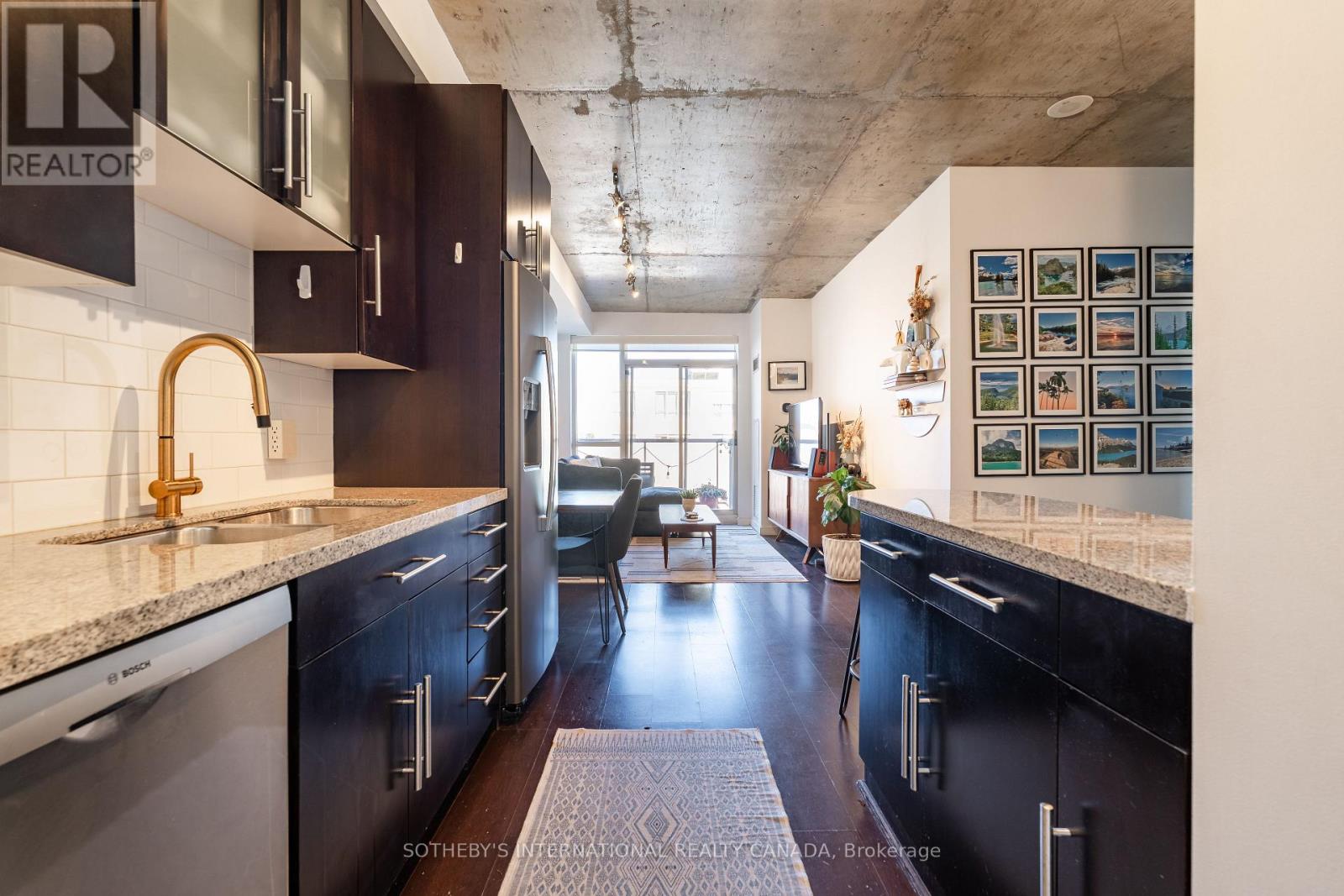 $827 MonthlyThis 845 sq ft, two-bedroom, two-bathroom suite at DNA Condos offers a smart, flexible layout. The 9-foot exposed concrete ceilings create a sense of volume and character, enhanced by new lighting and fresh paint. The kitchen is equipped with full-size appliances, and both washrooms feature deep soaker tubs. A rare find, this suite is a true quiet oasis while still being perfectly centered between the city's best neighbourhoods-King West, Queen West, Liberty Village, and Parkdale. Pet-friendly building and parking included. (id:51158)