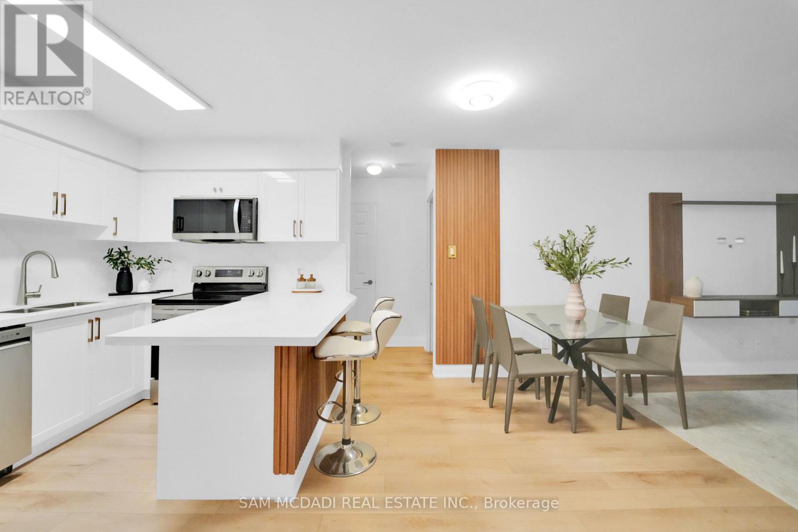 Welcome to Unit 811 at 260 Doris Avenue, a modern and beautifully updated 1-bedroom, 1-bathroom condo located in Toronto's highly sought-after Willowdale East neighbourhood. Just steps from the vibrant intersection of Yonge Street and Finch Avenue and within walking distance to Finch TTC Subway Station, this home offers exceptional convenience and connectivity. The unit features a bright and functional open-concept layout with a modern kitchen overlooking the dining and living area. Throughout the suite, you'll find waterproof luxury vinyl plank flooring complemented by elegant fluted wood trim details. The beautiful kitchen is equipped with stainless steel appliances, backsplash, ample cabinetry, breakfast bar, and double sink. Both the living room and bedroom provide direct access to the balcony, filling the space with natural light. The bedroom can accommodate a king-sized bed and a full furniture setup. Additional highlights include a 4-piece bathroom, in-suite laundry, one underground parking space, and one locker for added storage. Maintenance fees include all utilities, offering excellent value and peace of mind. Residents enjoy an impressive selection of building amenities, including a gym, sauna, party room, meeting room, rec room, guest suites, and visitor parking. Added security services include concierge, on-site security guard, and a monitored security system. Surrounded by a diverse dining scene, major grocery stores such as Metro and specialty markets, parks, green spaces, community centres, and athletic facilities, this location truly has it all. Minutes from Finch TTC Subway Station, the area also offers extensive bus connections, including GO Transit and York Region Transit. This home is an ideal opportunity for professionals, first-time buyers, or investors seeking comfort, convenience, and lifestyle in one complete package. (id:51158)