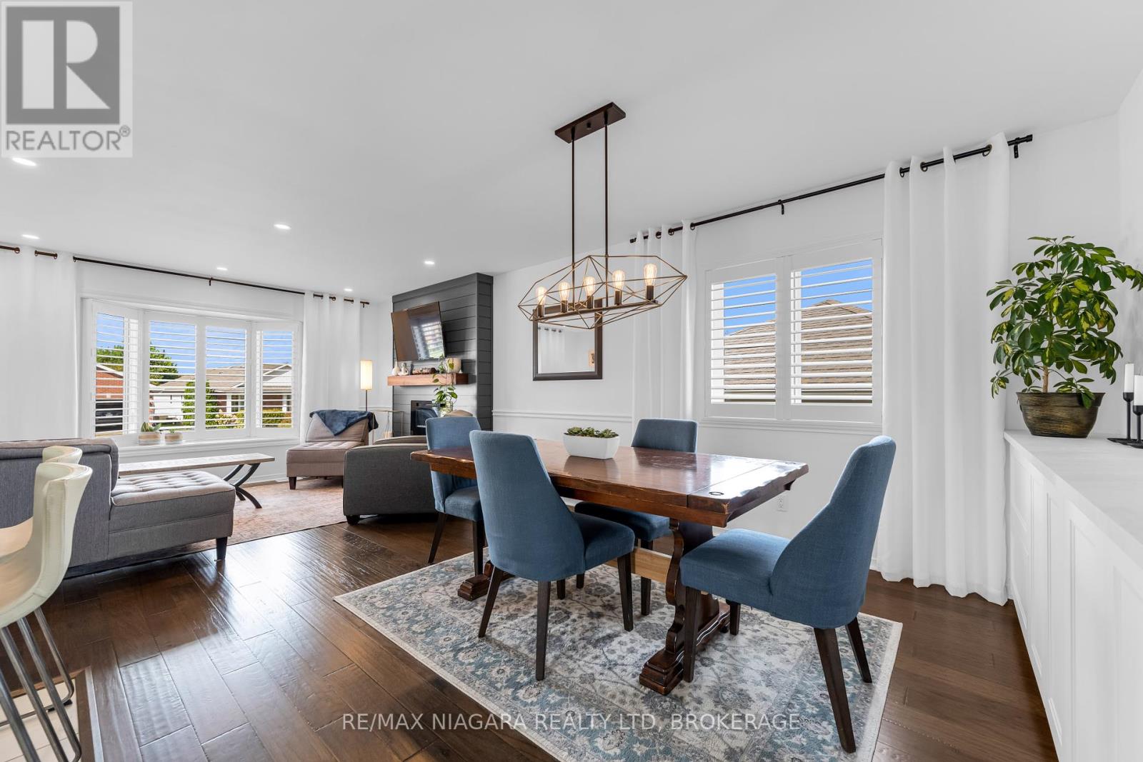 Welcome to 8142 Macron Street! This home features a chic and warm interior with unique light fixtures complimenting the clean minimalist aesthetic. The living room highlights a custom black walnut entertainment wall with a built-in fireplace and recessed lighting. The spacious family room located on the lower level is perfect for your next game night or cozy movie night in. The large backyard has endless entertaining opportunities and has a covered concrete patio with plenty of green-space. This renovated beautiful family home is located in a quiet well-maintained neighbourhood close to amenities, schools and green-spaces. Recessed lighting (2023), roof (2018), furnace (2020), bay window (2021), A/C (2022), engineered hardwood (2022), California shutters (2021). (id:51158)