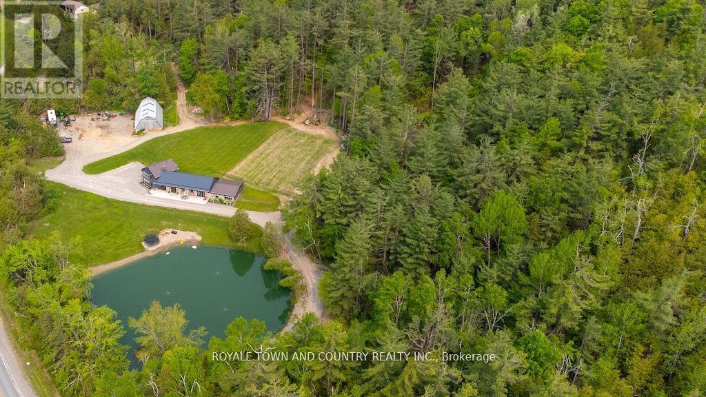 Experience the perfect balance of privacy, adventure, and modern luxury on this breathtaking 45-acre retreat. Surrounded by white pine, cedar, and birch, the property is alive with wildflowers, birdsong, and the gentle hum of nature - idyllic sanctuary just waiting to be called home. Explore your own spring-fed pond, scenic trails for hiking, biking, horseback riding, or cross-country skiing, and a charming sugar shack ready for maple syrup season. (With new lines.) Approximately 10 acres are cleared for pasture, offering endless possibilities. Nestled across from the pristine Emily Tract Forest and just minutes from a public boat launch, this location invites you to embrace the outdoors in every season. At the heart of the property stands a beautifully upgraded 4-bedroom, 4-bathroom home, perfectly paired with a versatile barn (Large Equipment storage, 3 stalls plus loose housing - good for horses and cattle too). Circular Driveway. Inside, discover: A custom kitchen with hidden walk-in pantry, soft-close pullouts, and professional-grade stainless appliances - side by side fridge/ freezer, huge centre island, farmhouse sink & beverage station. Heated floors in the entry and powder room. Dedicated office - open and bright just off the main floor family room. SO much storage! (14.4 x 12.2 feet - floor to ceiling!) with electrical and mechanical room. Thoughtful upgrades like: USB-integrated outlets and hardwired cable/internet throughout. Plus: newer windows, doors, wiring, plumbing, propane furnace, air conditioning, and water softener & steel roof too. Every detail reflects a blend of rustic charm and modern refinement crafted for comfort, functionality, and connection to nature. Whether you're a nature lover, hobby farmer, remote professional, or simply seeking tranquility, this rare property offers more than a home- it offers a lifestyle. (id:51158)