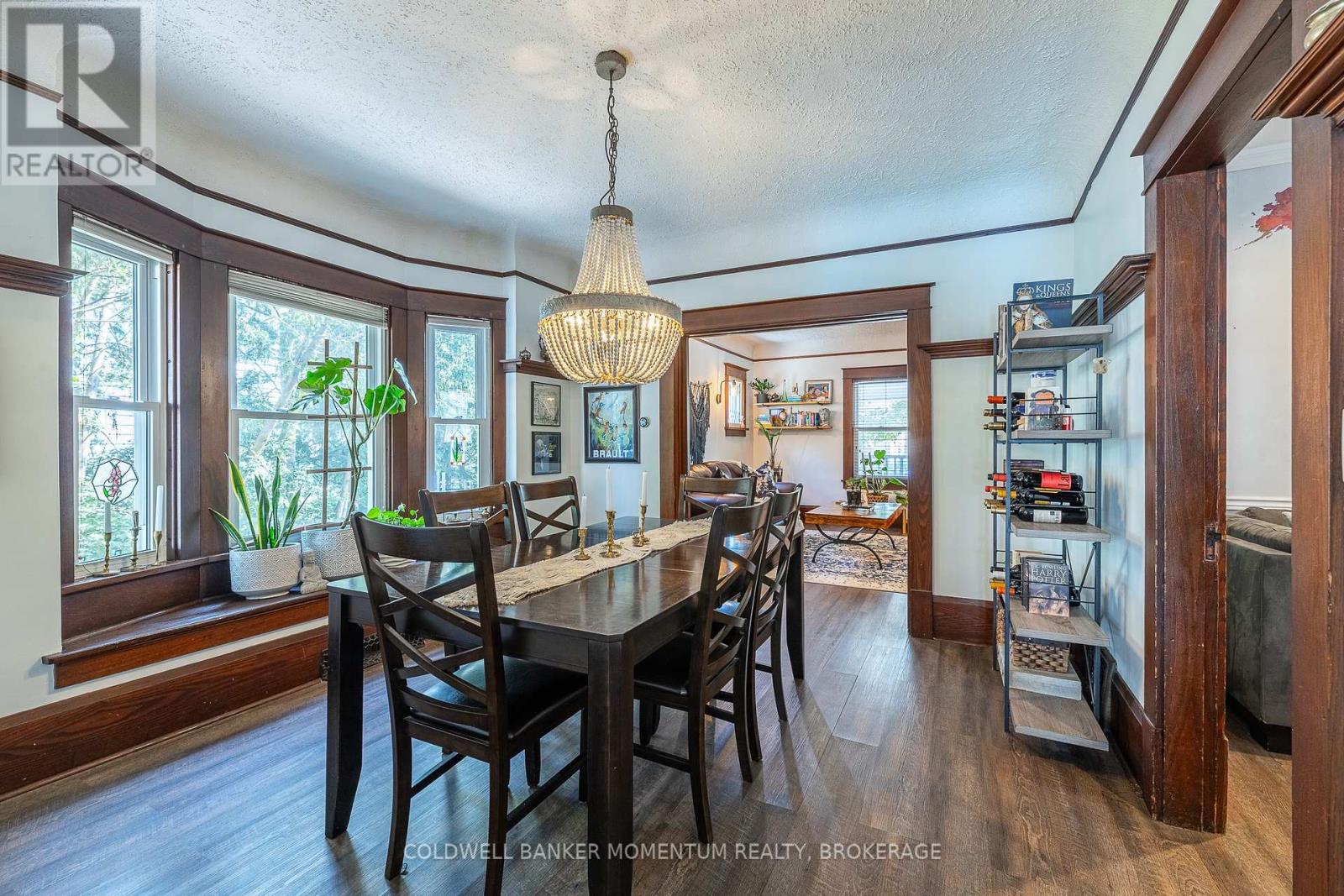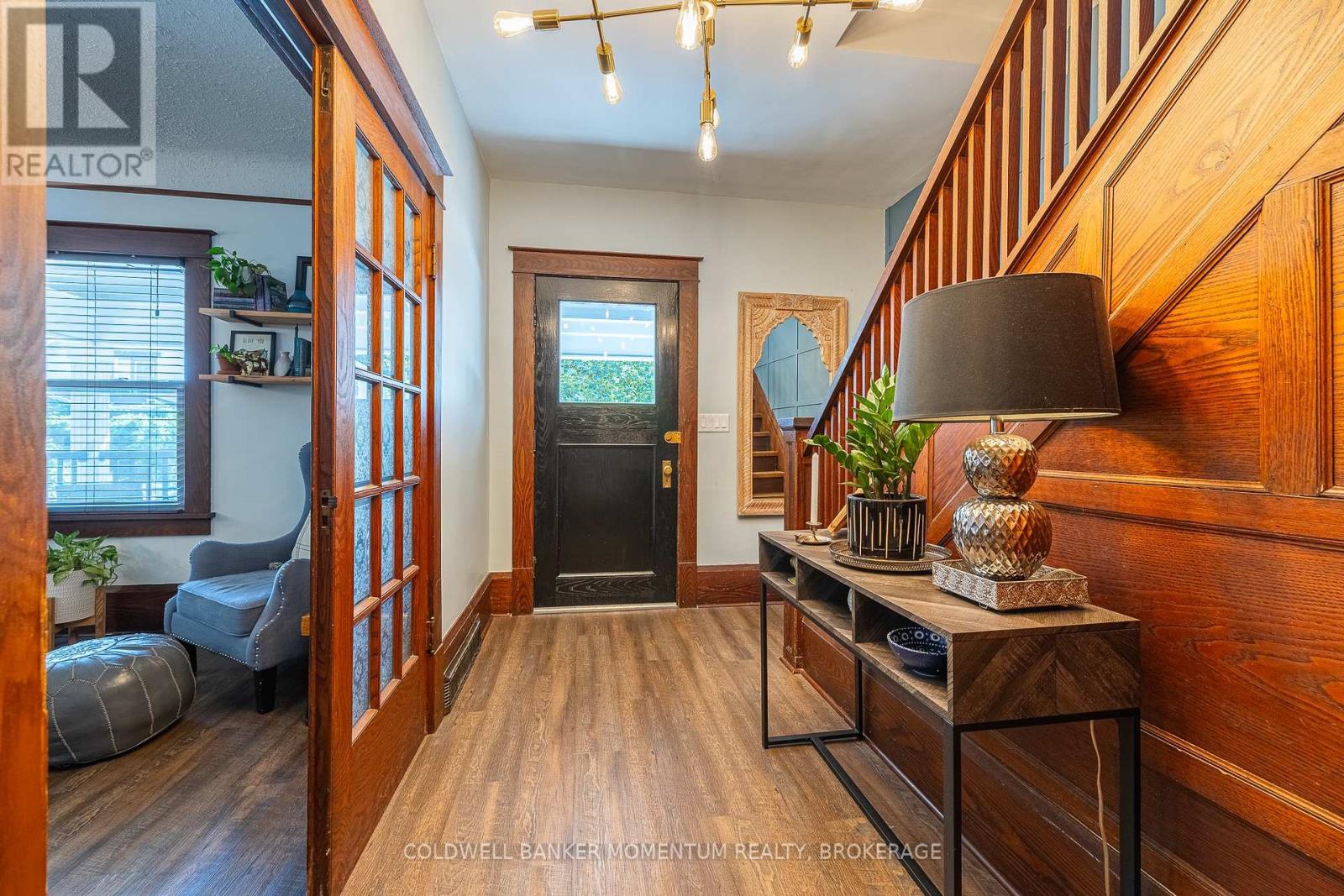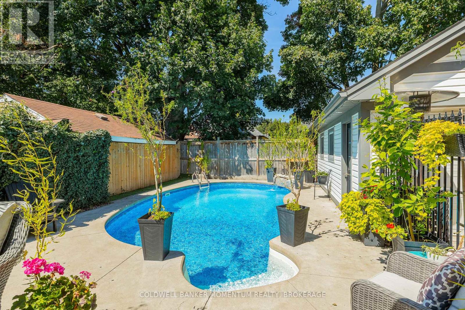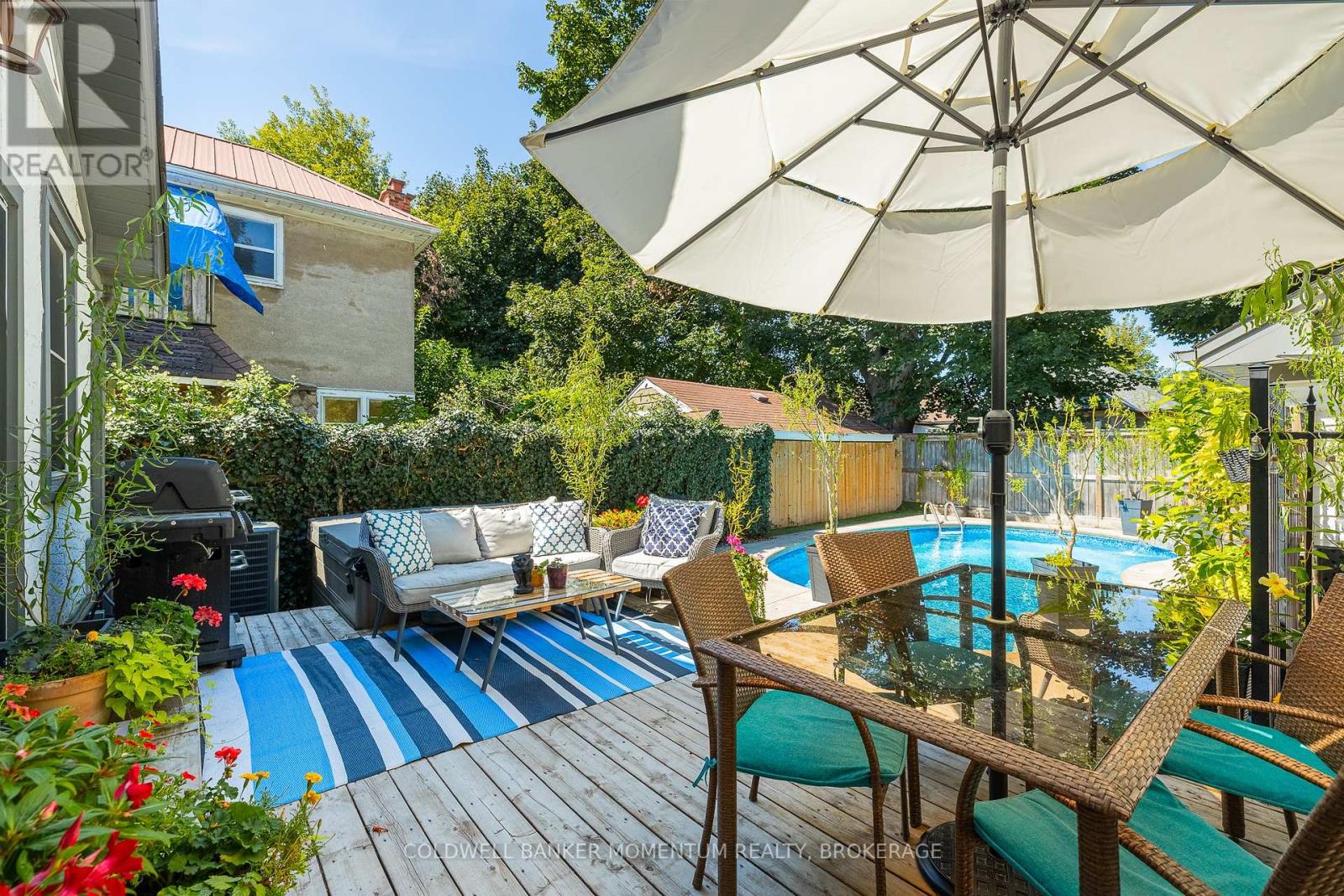 Exceptional one-of-a-kind property in the heart of downtown St. Catharines. Circa 1917, this 2 story century home has all the timelessness of its original design w/ modern updates throughout that makes this such a desirable home to live in. From the moment you enter the welcoming foyer you can feel the homes rich history. The original gumwood trim, doors, high baseboards & classic layout radiates warmth & tradition. With just over 1,950 sq ft of total finished living space there are some really impressive features that is unique to only this property. Newer luxury vinyl plank flooring throughout. The main floor offers a spacious living room w/ lead glass windows, a formal dining room w/ big bay window thats ideal for hosting large gatherings & a versatile den w/ updated 2pc bath that could be used as a 4th bdrm or home office. The heart of the home is the beautifully updated oversized eat-in kitchen that showcases a lrg island w/ newer quartz countertops, newer tile backsplash & pot filler, stainless steel appliances, custom cabinetry by Millbrook Cabinetry & patio doors that lead to a private backyard sanctuary w/ spacious deck (rebuilt in 2019), hot tub (2019), heated saltwater inground pool w/ stone waterfall feature (new saltwater system 2025) & gas hook-up for BBQ. The second floor offers 3 bdrms, an updated 4pc bath w/ vintage claw foot tub, separate shower, newer vanity & lighting (2019). One of the standout features is the super convenient laundry rm on the second floor. The basement is partially finished w/ a rec rm & huge unfinished storage space. The covered cedar front porch was rebuilt (2021) & is the perfect spot to enjoy the last warm days of Summer & the crisp start of Fall. The private driveway fits 6 cars & another standout feature is the detached insulated double car garage w/ hydro & lrg loft for storage. Located in a family-friendly neighbourhood w/ quick & easy HWY access. Walking distance to parks, schools, restaurants & so much more! (id:51158)
