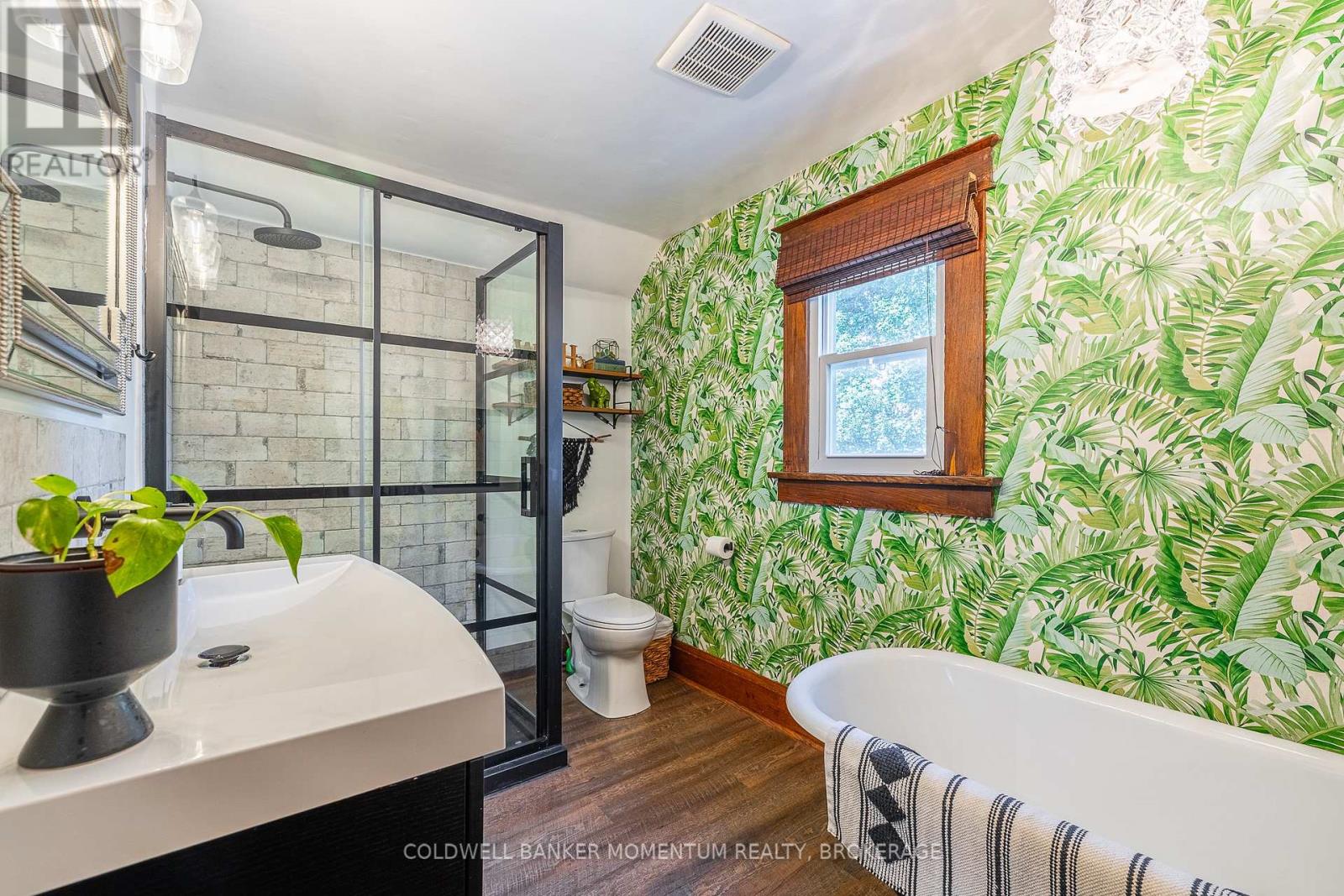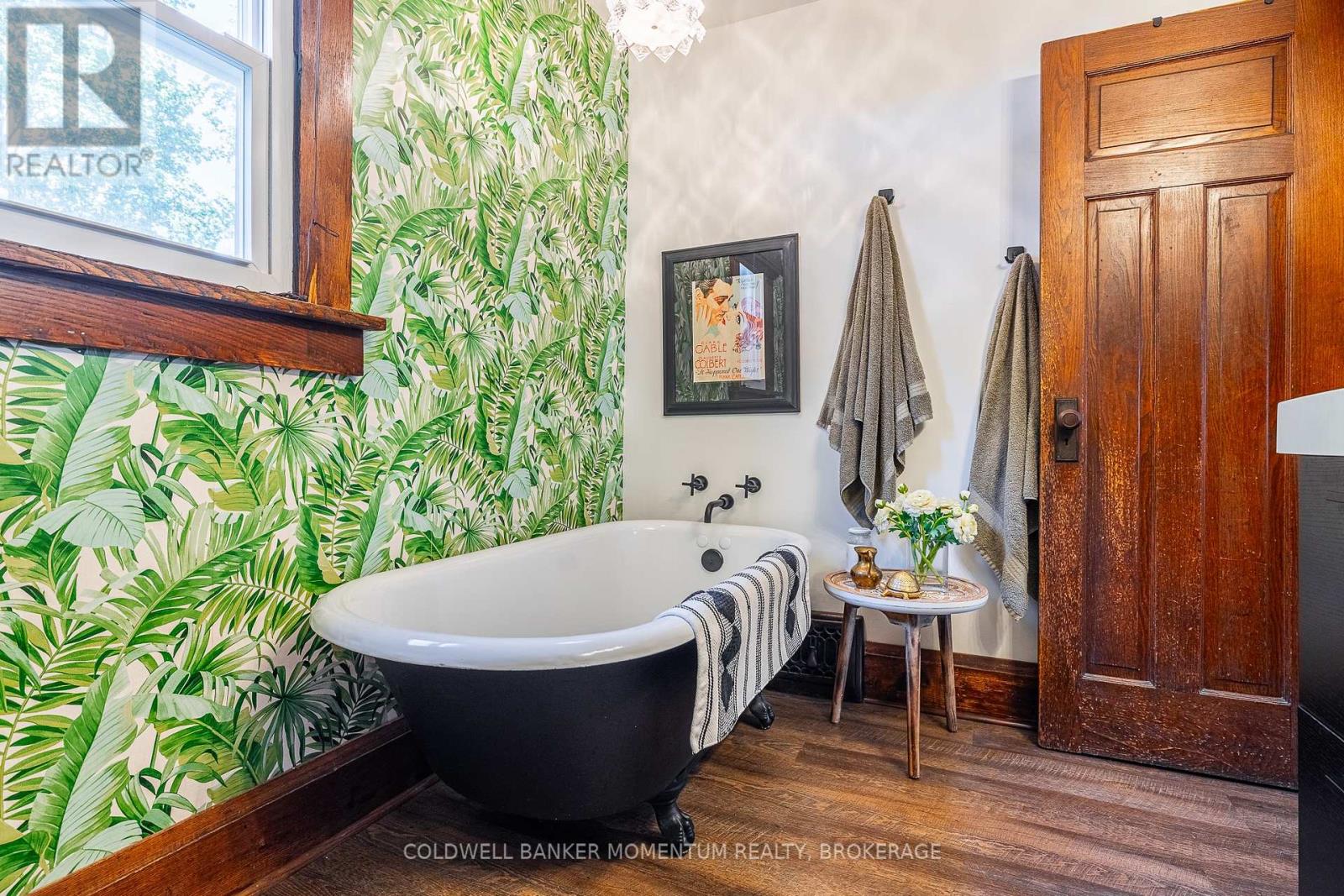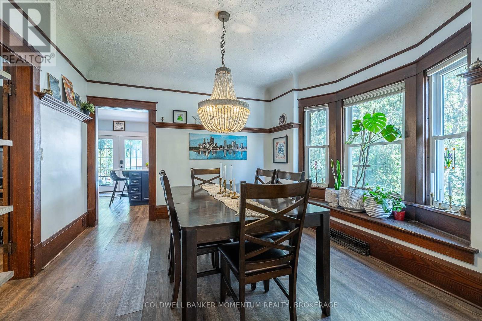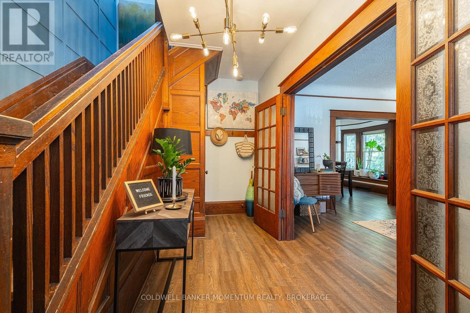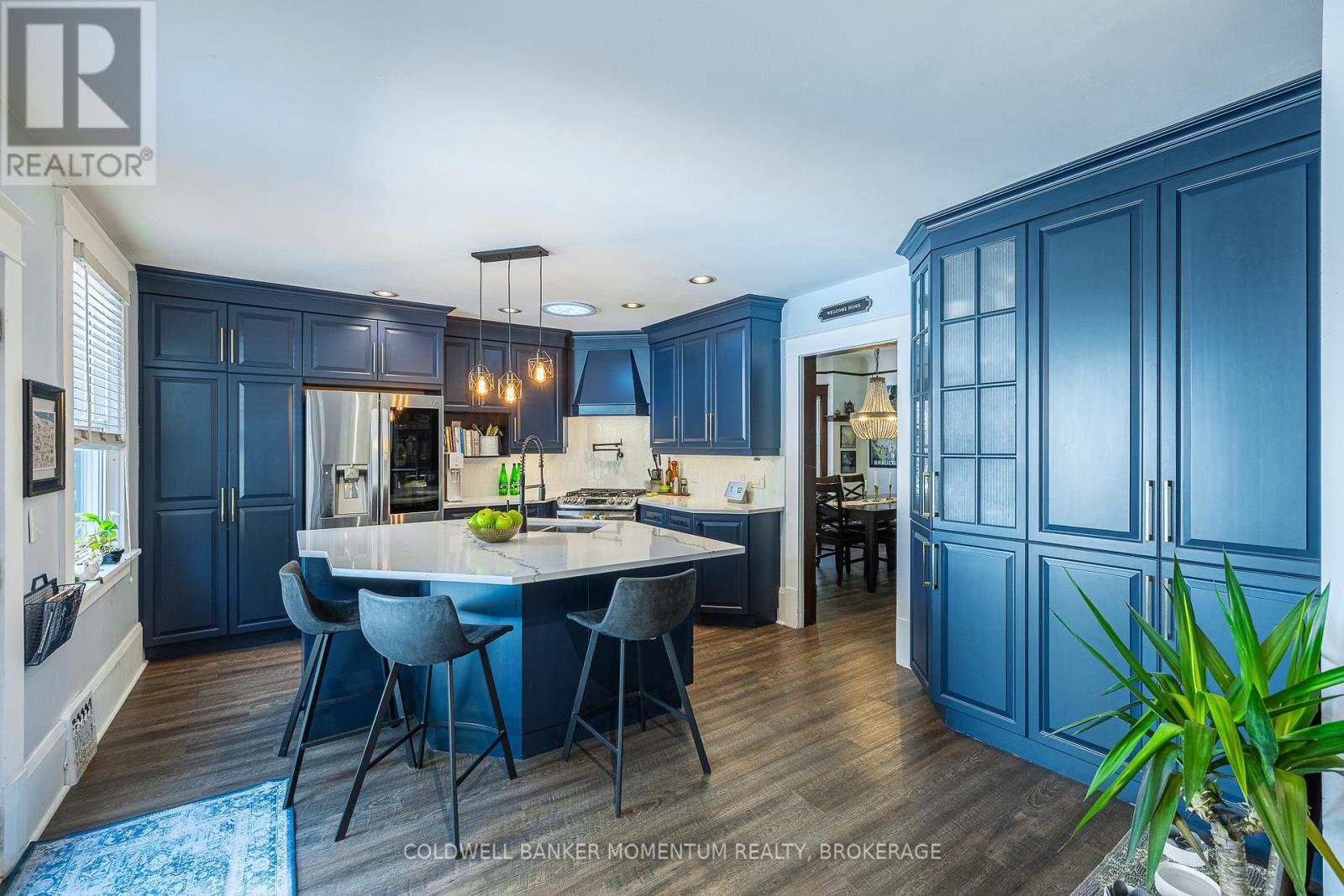 Exceptional one-of-a-kind property in the heart of downtown St. Catharines. Circa 1917, this 2 story century home has all the timelessness of its original design w/ modern updates throughout that makes this such a desirable home to live in. From the moment you enter the welcoming foyer you can feel the homes rich history. The original gumwood trim, doors, high baseboards & classic layout radiates warmth & tradition. With just over 1,950 sq ft of total finished living space there are some really impressive features that is unique to only this property. Newer luxury vinyl plank flooring throughout. The main floor offers a spacious living room w/ lead glass windows, a formal dining room w/ big bay window thats ideal for hosting large gatherings & a versatile den w/ updated 2pc bath that could be used as a 4th bdrm or home office. The heart of the home is the beautifully updated oversized eat-in kitchen that showcases a lrg island w/ newer quartz countertops, newer tile backsplash & pot filler, stainless steel appliances, custom cabinetry by Millbrook Cabinetry & patio doors that lead to a private backyard sanctuary w/ spacious deck (rebuilt in 2019), hot tub (2019), heated saltwater inground pool w/ stone waterfall feature (new saltwater system 2025) & gas hook-up for BBQ. The second floor offers 3 bdrms, an updated 4pc bath w/ vintage claw foot tub, separate shower, newer vanity & lighting (2019). One of the standout features is the super convenient laundry rm on the second floor. The basement is partially finished w/ a rec rm & huge unfinished storage space. The covered cedar front porch was rebuilt (2021) & is the perfect spot to enjoy the last warm days of Summer & the crisp start of Fall. The private driveway fits 6 cars & another standout feature is the detached insulated double car garage w/ hydro & lrg loft for storage. Located in a family-friendly neighbourhood w/ quick & easy HWY access. Walking distance to parks, schools, restaurants & so much more! (id:51158)