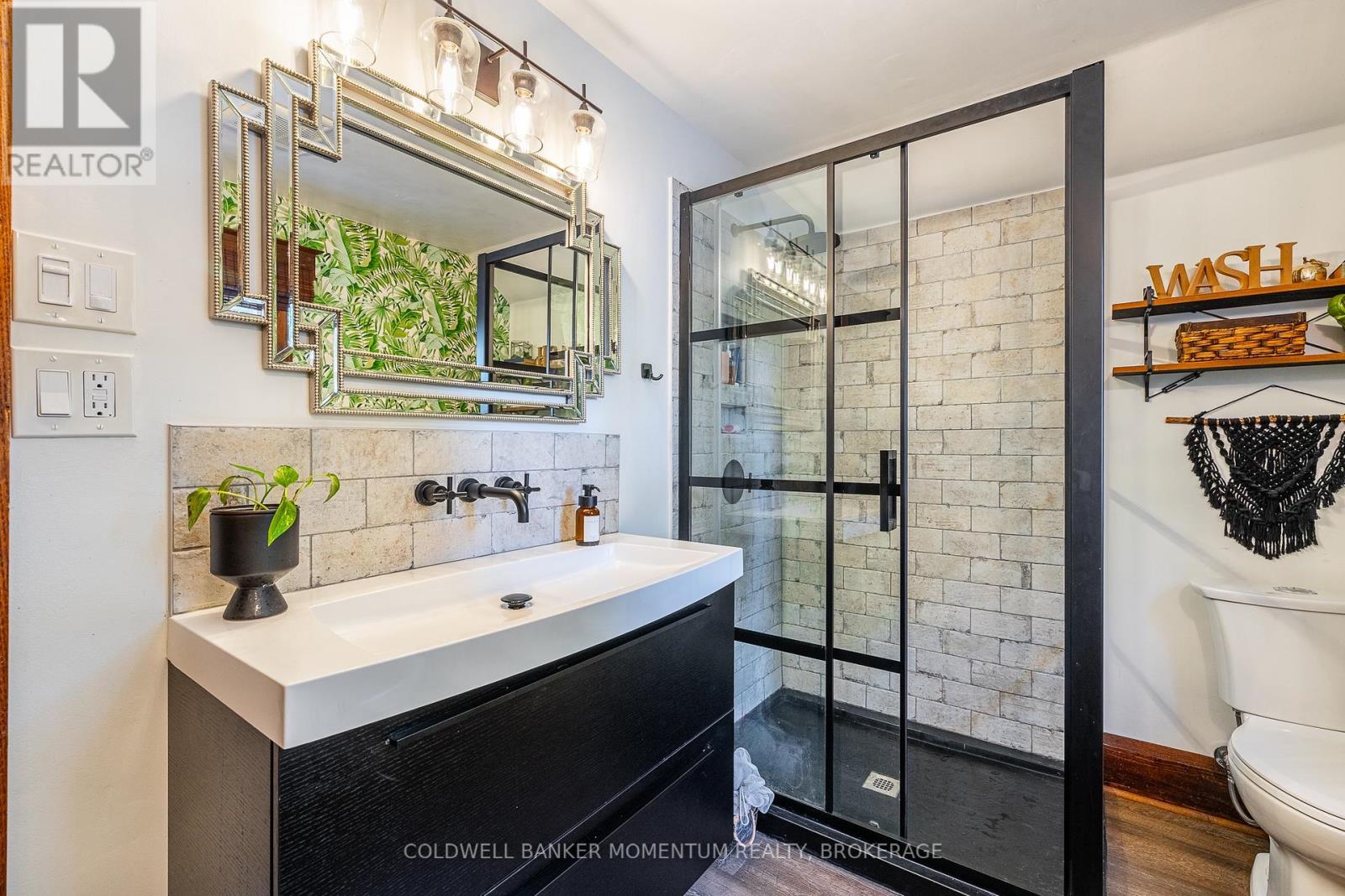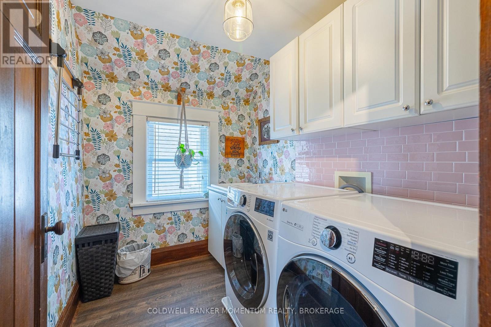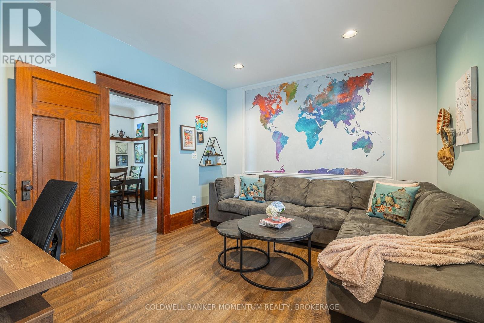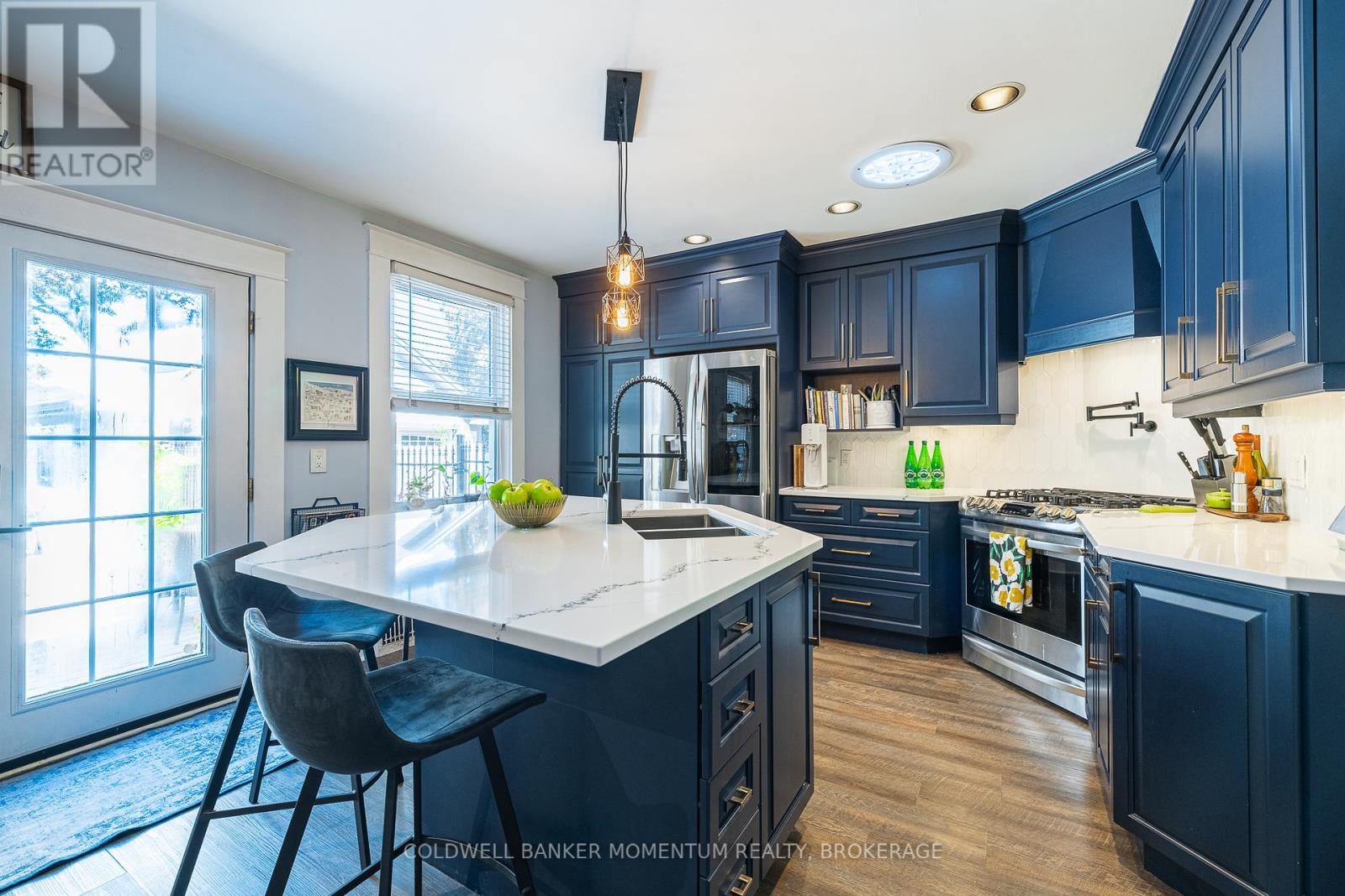 Exceptional one-of-a-kind property in the heart of downtown St. Catharines. Circa 1917, this 2 story century home has all the timelessness of its original design w/ modern updates throughout that makes this such a desirable home to live in. From the moment you enter the welcoming foyer you can feel the homes rich history. The original gumwood trim, doors, high baseboards & classic layout radiates warmth & tradition. With just over 1,950 sq ft of total finished living space there are some really impressive features that is unique to only this property. Newer luxury vinyl plank flooring throughout. The main floor offers a spacious living room w/ lead glass windows, a formal dining room w/ big bay window thats ideal for hosting large gatherings & a versatile den w/ updated 2pc bath that could be used as a 4th bdrm or home office. The heart of the home is the beautifully updated oversized eat-in kitchen that showcases a lrg island w/ newer quartz countertops, newer tile backsplash & pot filler, stainless steel appliances, custom cabinetry by Millbrook Cabinetry & patio doors that lead to a private backyard sanctuary w/ spacious deck (rebuilt in 2019), hot tub (2019), heated saltwater inground pool w/ stone waterfall feature (new saltwater system 2025) & gas hook-up for BBQ. The second floor offers 3 bdrms, an updated 4pc bath w/ vintage claw foot tub, separate shower, newer vanity & lighting (2019). One of the standout features is the super convenient laundry rm on the second floor. The basement is partially finished w/ a rec rm & huge unfinished storage space. The covered cedar front porch was rebuilt (2021) & is the perfect spot to enjoy the last warm days of Summer & the crisp start of Fall. The private driveway fits 6 cars & another standout feature is the detached insulated double car garage w/ hydro & lrg loft for storage. Located in a family-friendly neighbourhood w/ quick & easy HWY access. Walking distance to parks, schools, restaurants & so much more! (id:51158)
