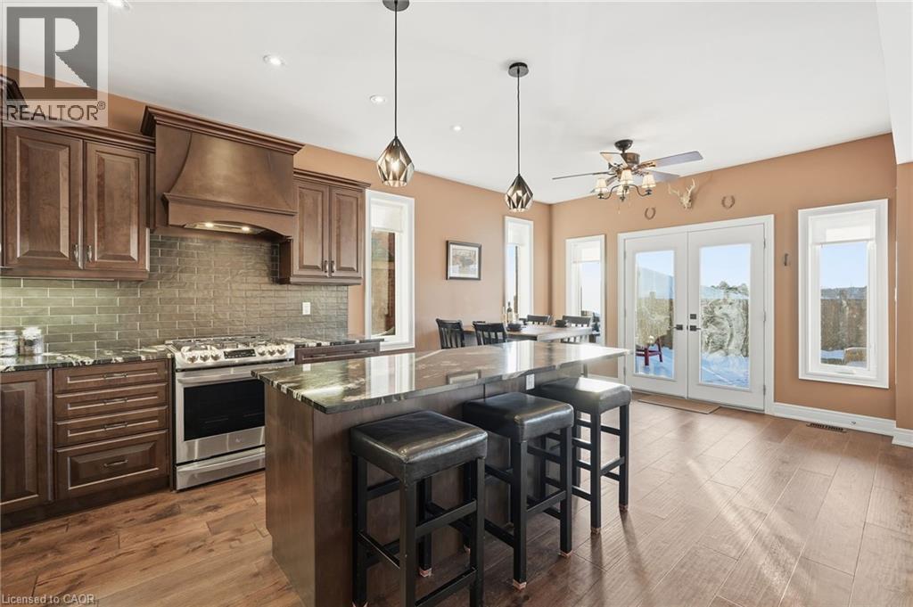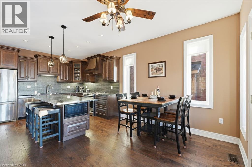 Welcome to 83 Homestead Way a refined, custom-built residence where luxury meets warmth in the heart of Thorold's Rolling Meadows. This exceptional 4-bedroom, 2.5-bath home offers approx. 2400 sq ft of thoughtfully designed living space, perfect for families seeking both elegance and comfort. Step into the grand front foyer with soaring ceilings and a bright, open-concept main level finished with premium flooring and designer touches throughout. The great room is anchored by a sleek electric fireplace and a show-stopping glass-enclosed wine room a rare feature that adds instant style and sophistication. The chef's kitchen impresses with granite countertops, custom cabinetry, gas range, statement hood fan, and a large centre island that naturally brings everyone together. Upstairs, you'll find four generous bedrooms including a serene primary retreat with a spa-like ensuite. The separate-entry basement is framed and roughed-in for a future bathroom ideal for an in-law suite, home gym or media space. Situated on a fully fenced lot in a vibrant, family-friendly community with new schools and parks nearby, this home offers elevated living with lasting appeal. (id:51158)