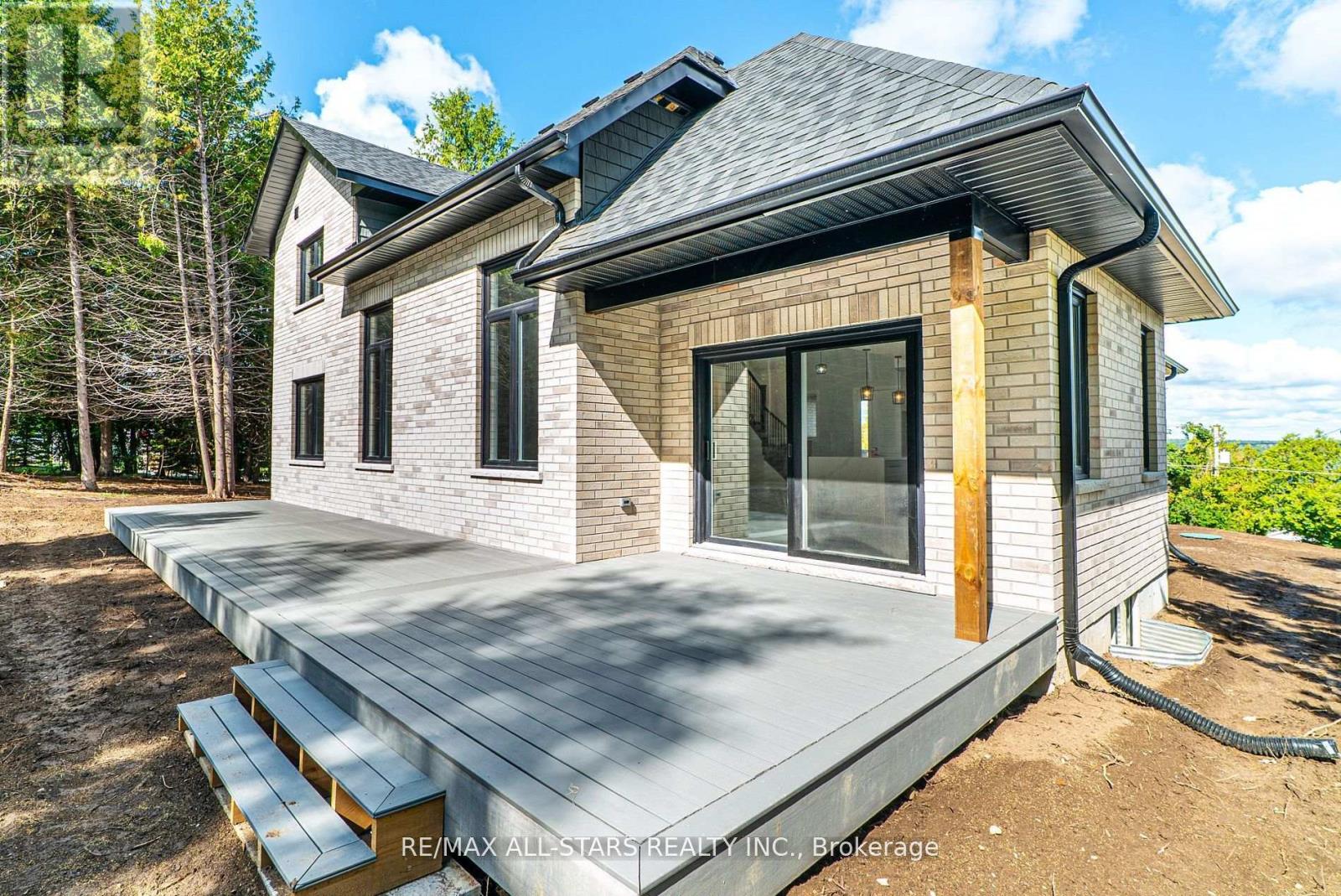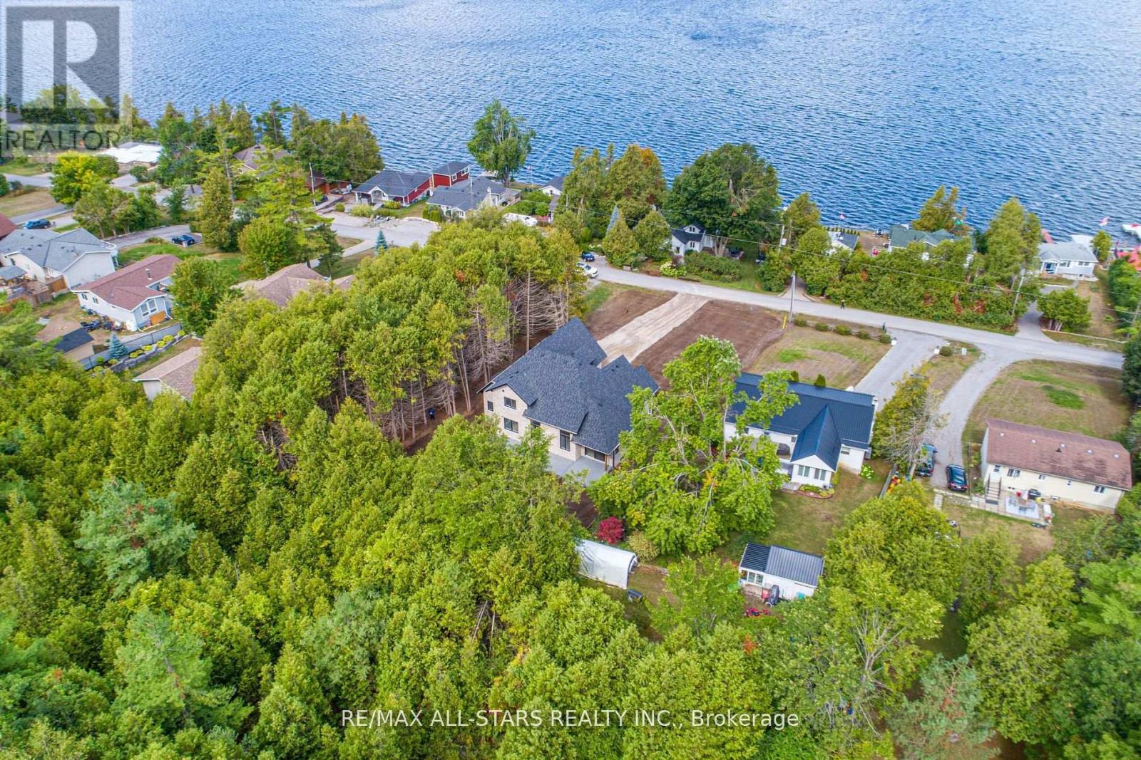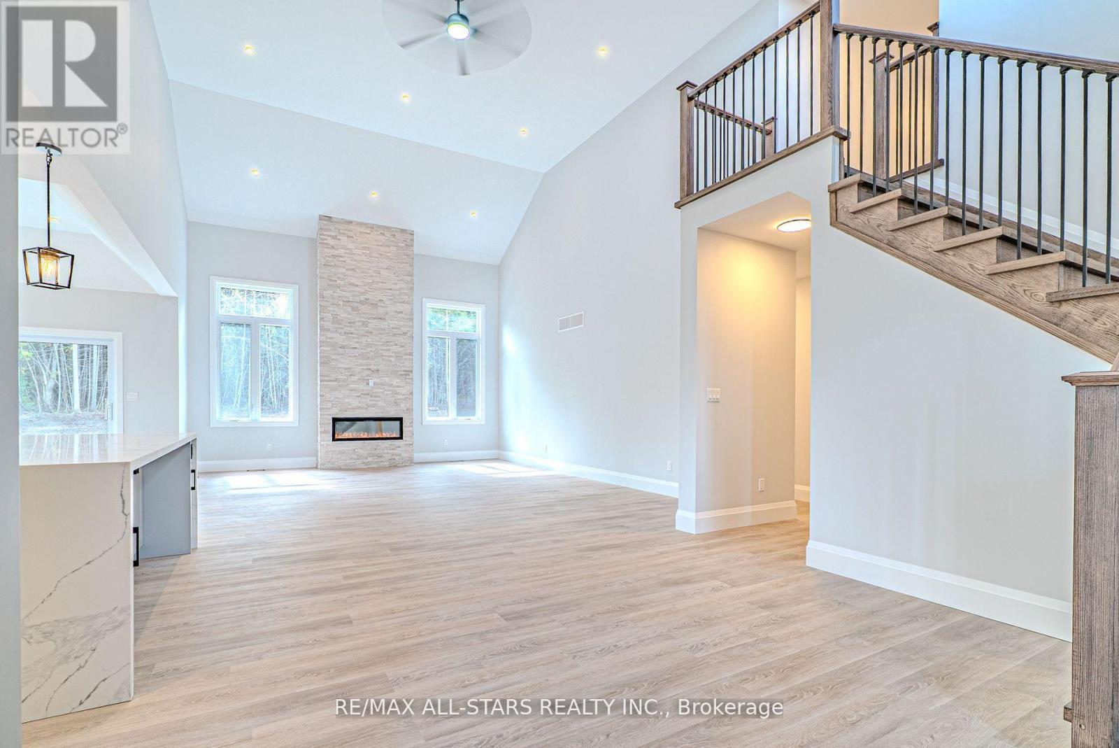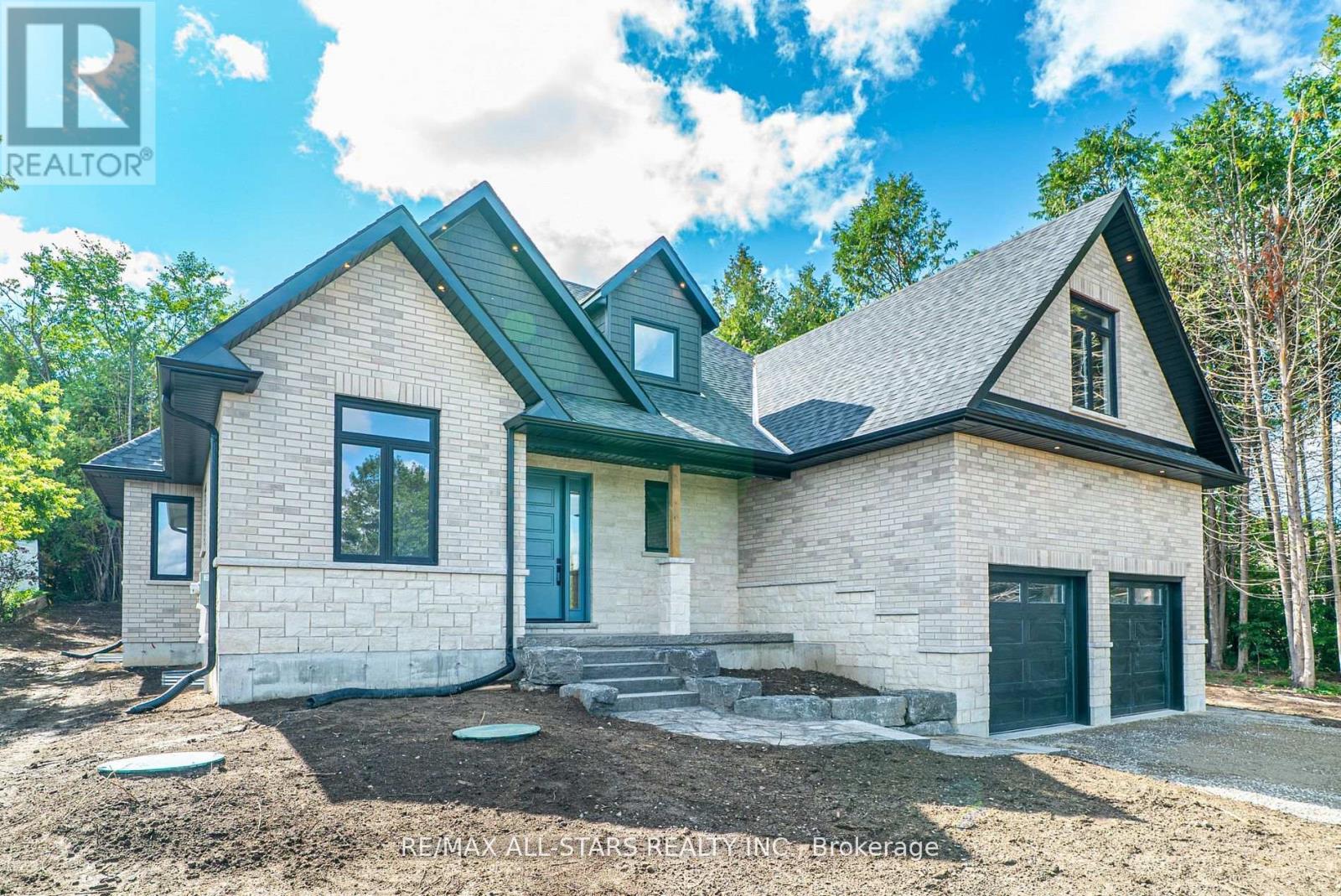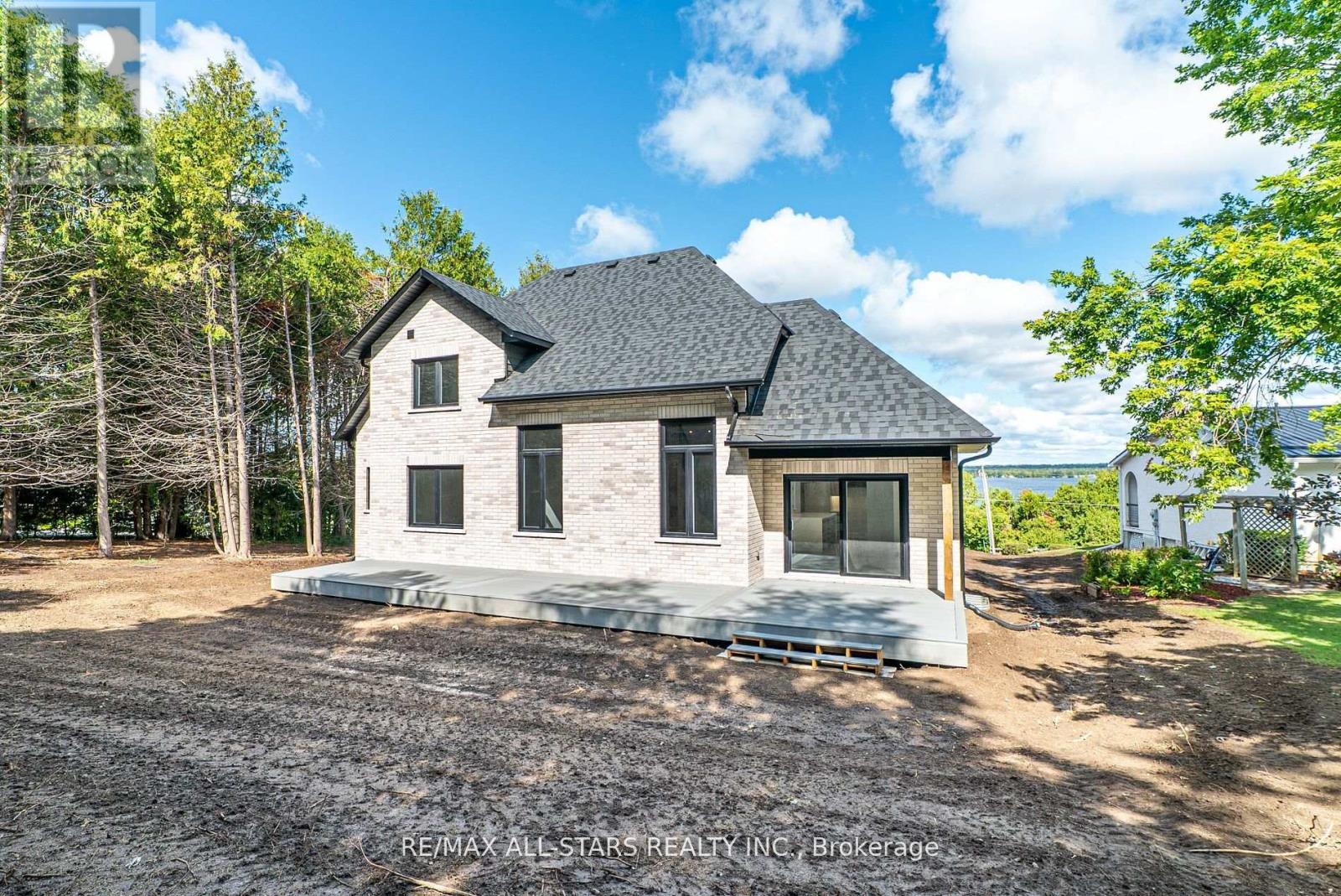 Premium brick/stone and modern designed approx 2665 sqft new home fully completed and ready for a quick closing. Private treed property with access and views over Sturgeon Lake. Located close proximity to Bobcaygeon and Lindsay. 3 bedrooms, m/f den, 2.5 baths, vaulted great room with 22ft ceiling & towering fireplace. Established custom builder with a very long list of standard enhanced features. Including Trenton ergonomic design cabinetry with extended uppers (decorative trim to ceiling), glass doors, valance lighting plus more. See complete feature sheet. Quartz tops in all baths, m/f laundry including new washer & dryer, kitchen with island waterfalls. Includes all new SS appliances. Bold interior baseboards and casing. Ensuite with heated floor, soaker tub, dbl vanity and large walk in tiled/frameless glassed shower. Walk in closets. Stylish interior oak stairs with black iron rod pickets. Full basement with rough in bath including pump. Large composite deck completed with black aluminum railings. Oversized insulated fully drywall finished garage. Includes HST & full Tarion Home Warranty. Property not assessed yet, taxes are land value only. (id:51158)