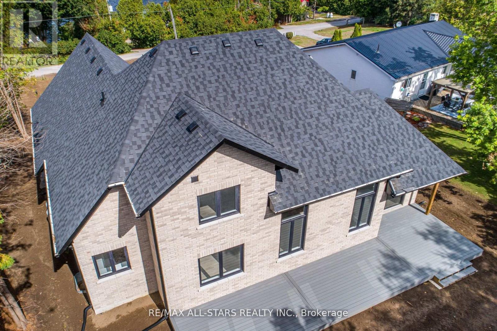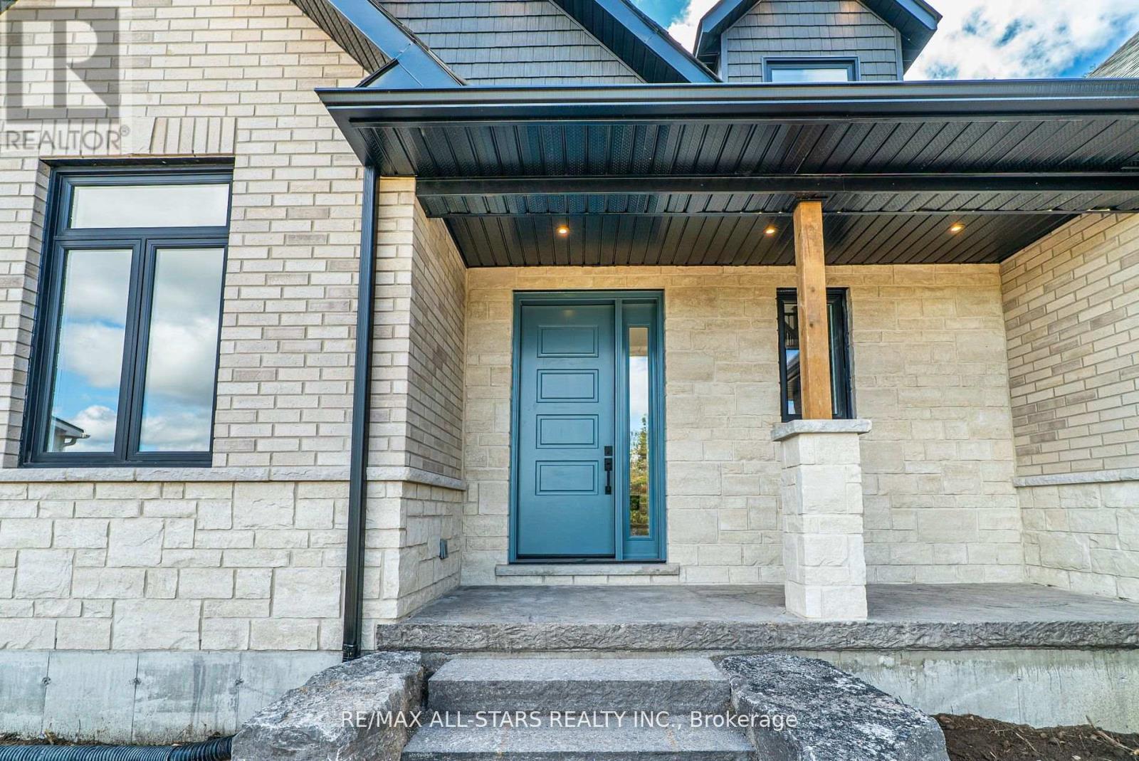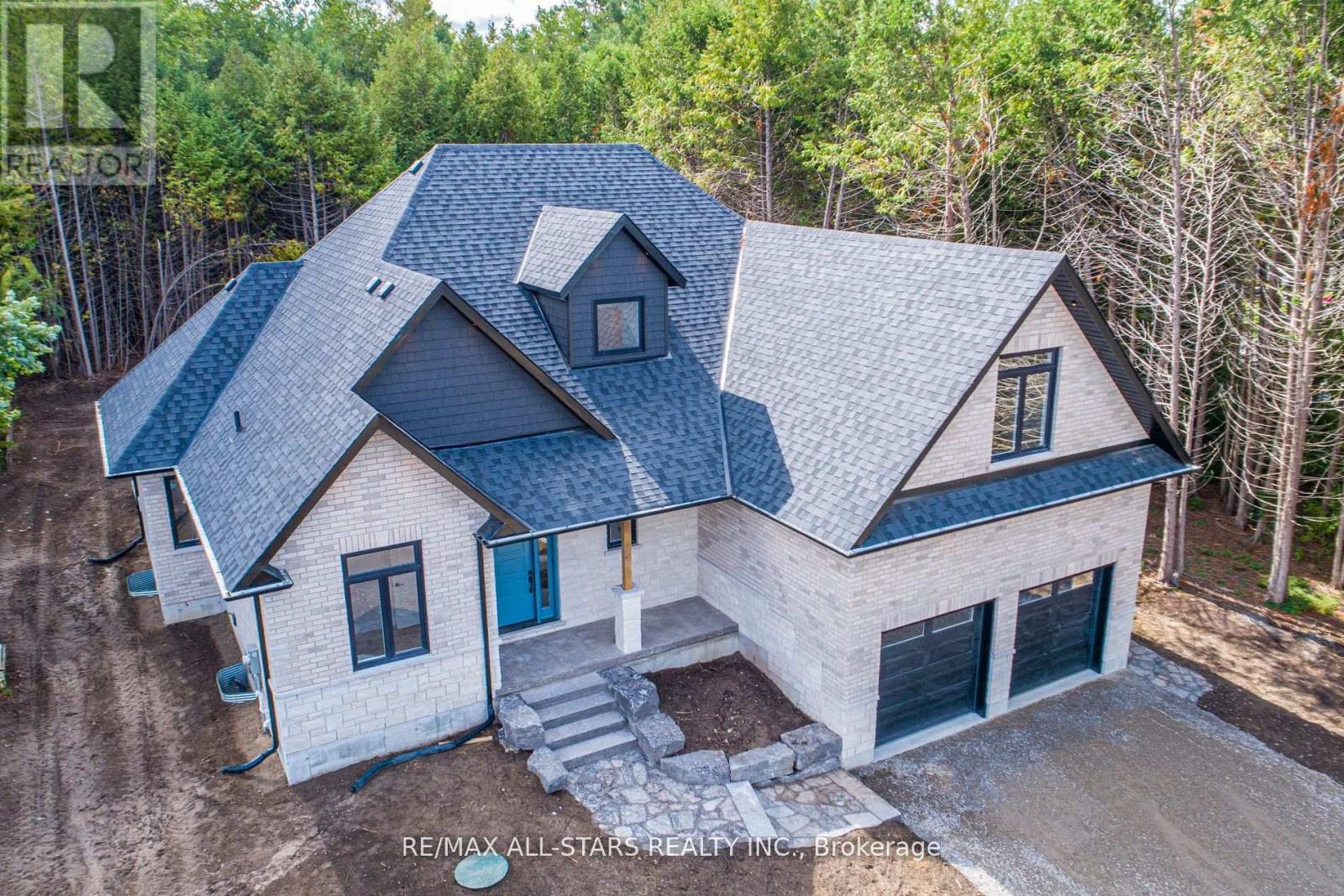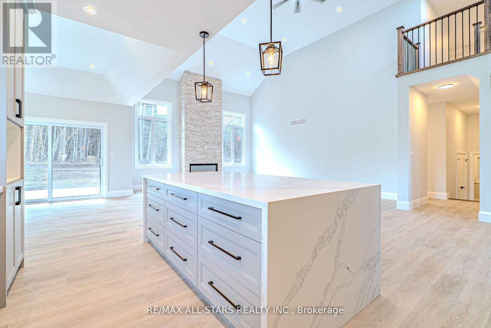 Premium brick/stone and modern designed approx 2665 sqft new home fully completed and ready for a quick closing. Private treed property with access and views over Sturgeon Lake. Located close proximity to Bobcaygeon and Lindsay. 3 bedrooms, m/f den, 2.5 baths, vaulted great room with 22ft ceiling & towering fireplace. Established custom builder with a very long list of standard enhanced features. Including Trenton ergonomic design cabinetry with extended uppers (decorative trim to ceiling), glass doors, valance lighting plus more. See complete feature sheet. Quartz tops in all baths, m/f laundry including new washer & dryer, kitchen with island waterfalls. Includes all new SS appliances. Bold interior baseboards and casing. Ensuite with heated floor, soaker tub, dbl vanity and large walk in tiled/frameless glassed shower. Walk in closets. Stylish interior oak stairs with black iron rod pickets. Full basement with rough in bath including pump. Large composite deck completed with black aluminum railings. Oversized insulated fully drywall finished garage. Includes HST & full Tarion Home Warranty. Property not assessed yet, taxes are land value only. (id:51158)