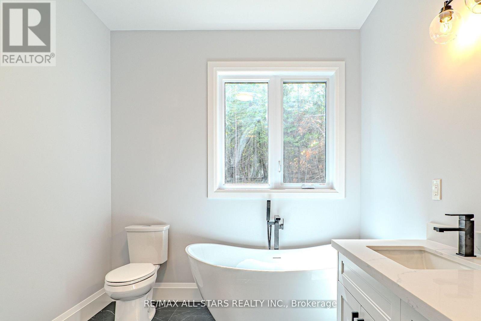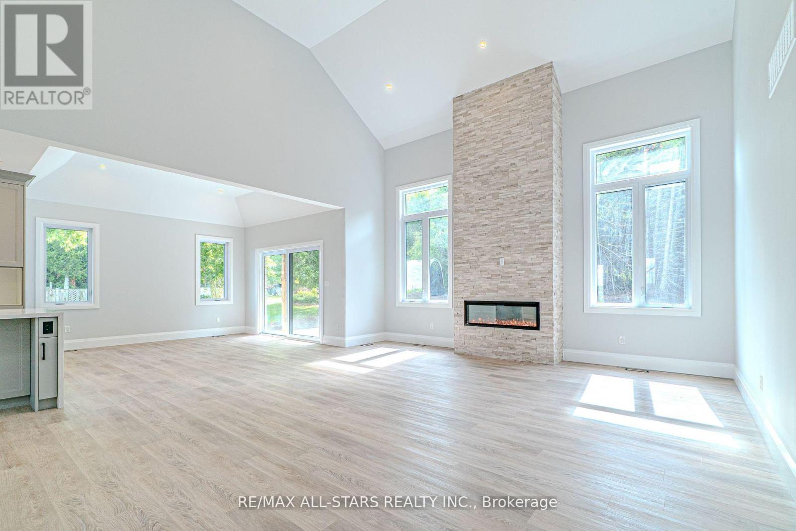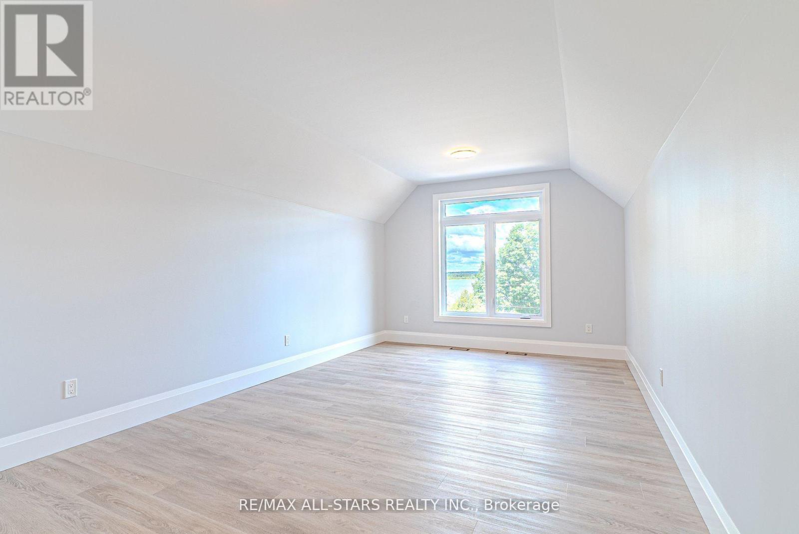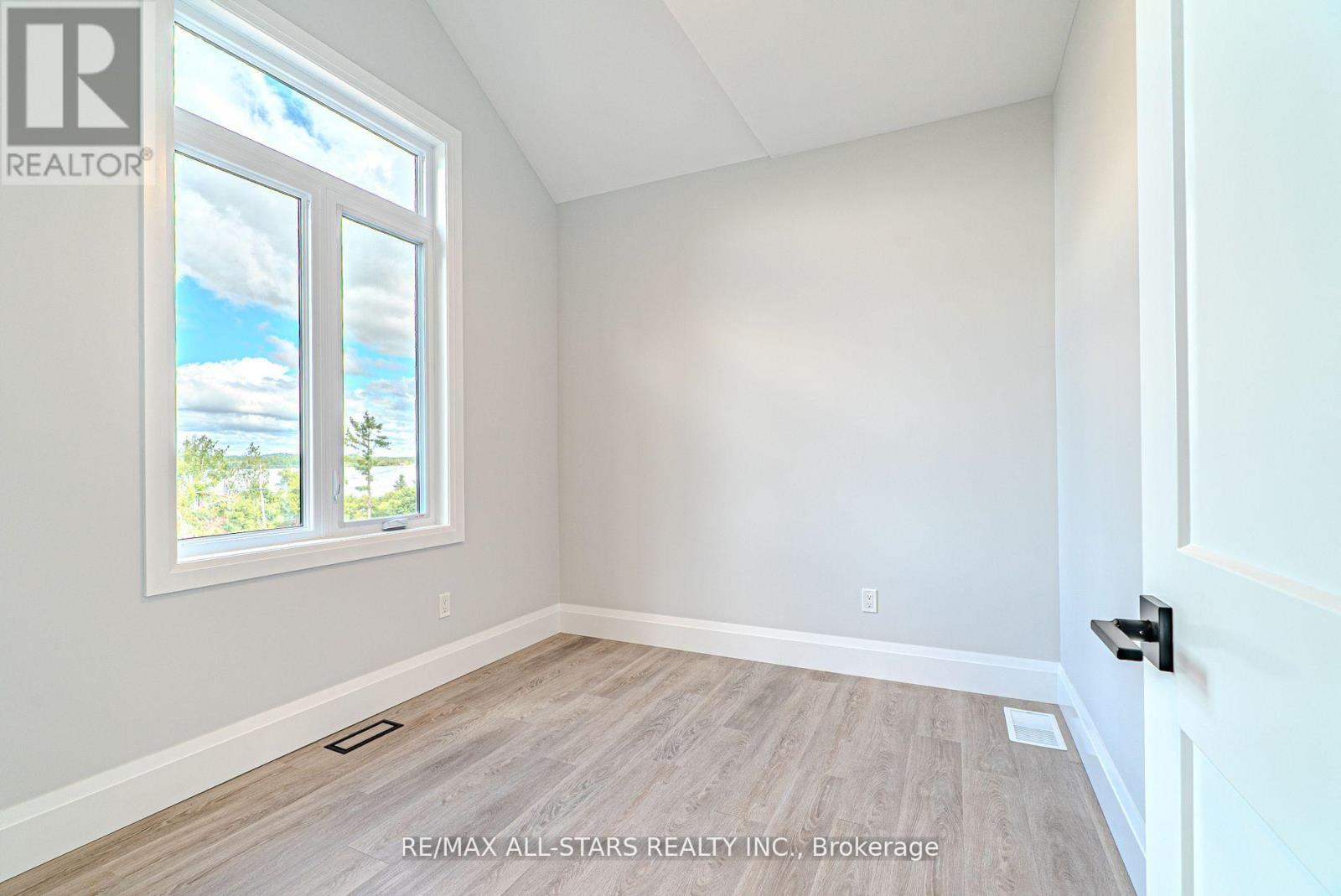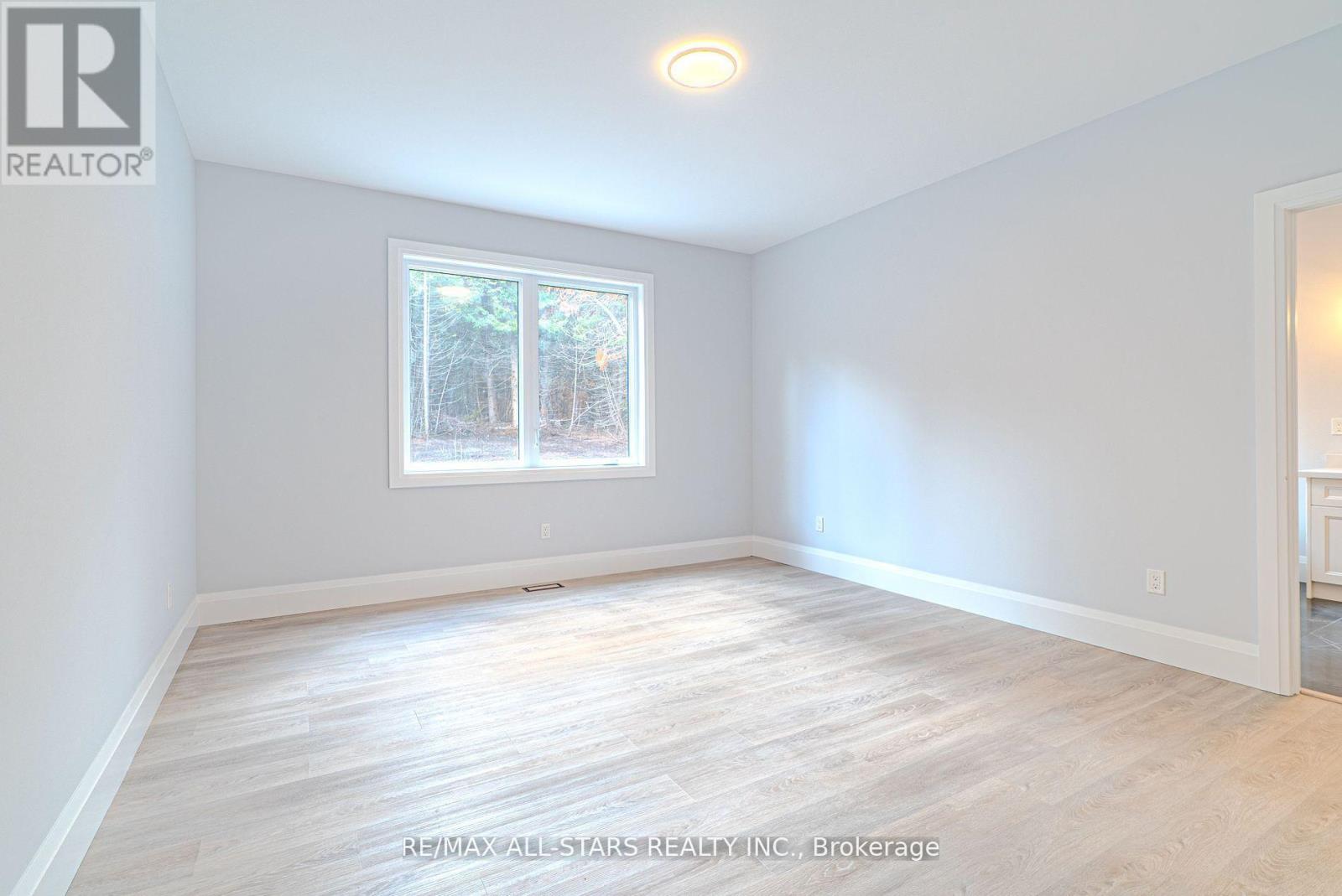 Premium brick/stone and modern designed approx 2665 sqft new home fully completed and ready for a quick closing. Private treed property with access and views over Sturgeon Lake. Located close proximity to Bobcaygeon and Lindsay. 3 bedrooms, m/f den, 2.5 baths, vaulted great room with 22ft ceiling & towering fireplace. Established custom builder with a very long list of standard enhanced features. Including Trenton ergonomic design cabinetry with extended uppers (decorative trim to ceiling), glass doors, valance lighting plus more. See complete feature sheet. Quartz tops in all baths, m/f laundry including new washer & dryer, kitchen with island waterfalls. Includes all new SS appliances. Bold interior baseboards and casing. Ensuite with heated floor, soaker tub, dbl vanity and large walk in tiled/frameless glassed shower. Walk in closets. Stylish interior oak stairs with black iron rod pickets. Full basement with rough in bath including pump. Large composite deck completed with black aluminum railings. Oversized insulated fully drywall finished garage. Includes HST & full Tarion Home Warranty. Property not assessed yet, taxes are land value only. (id:51158)