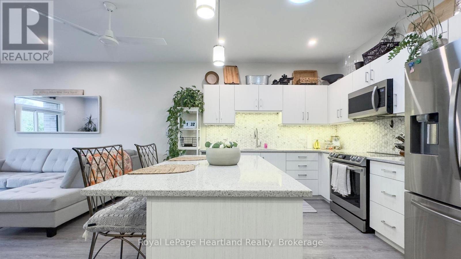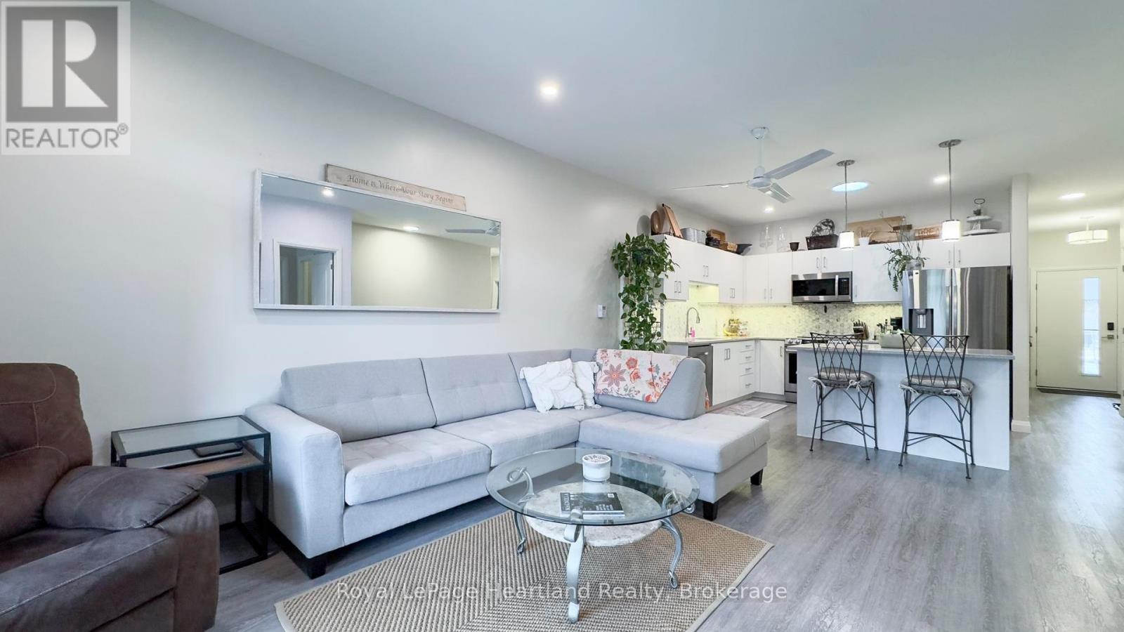 MLS# X12037912 – FOR SALE : 84 Rowe Avenue Exeter South Huron – 2 Beds, 3 Baths Attached Row / Townhouse ** Beautiful Modern design Energy Efficient Bungalow Home located in trendy neighbourhood in south Exeter! Front porch is ideal for evening coffee as you watch the world go by. Open concept main Living areas with stylish kitchen, dining area and living room that overlooks a fenced yard featuring a deck, pond and gardens. Backyard backs on to cedar hedge and creek so enjoy the privacy and all the birds that call this home. Two good size bedrooms complete this level Master with walk in closet and 3 piece ensuite. Lower level is finished with a large but cozy family room, office or 3rd bedroom and a 2 piece bath plus there is lots of great storage in this level. Upgrades include backsplash in kitchen 2024, 2 Solar Tubes in Living Room and Kitchen in 2024, painted throughout Main Level in 2024, Fenced Yard, Deck and Pond in 2023, New flooring on main level in 2024, and finished basement in 2022. (id:51158) ** 84 Rowe Avenue Exeter South Huron **