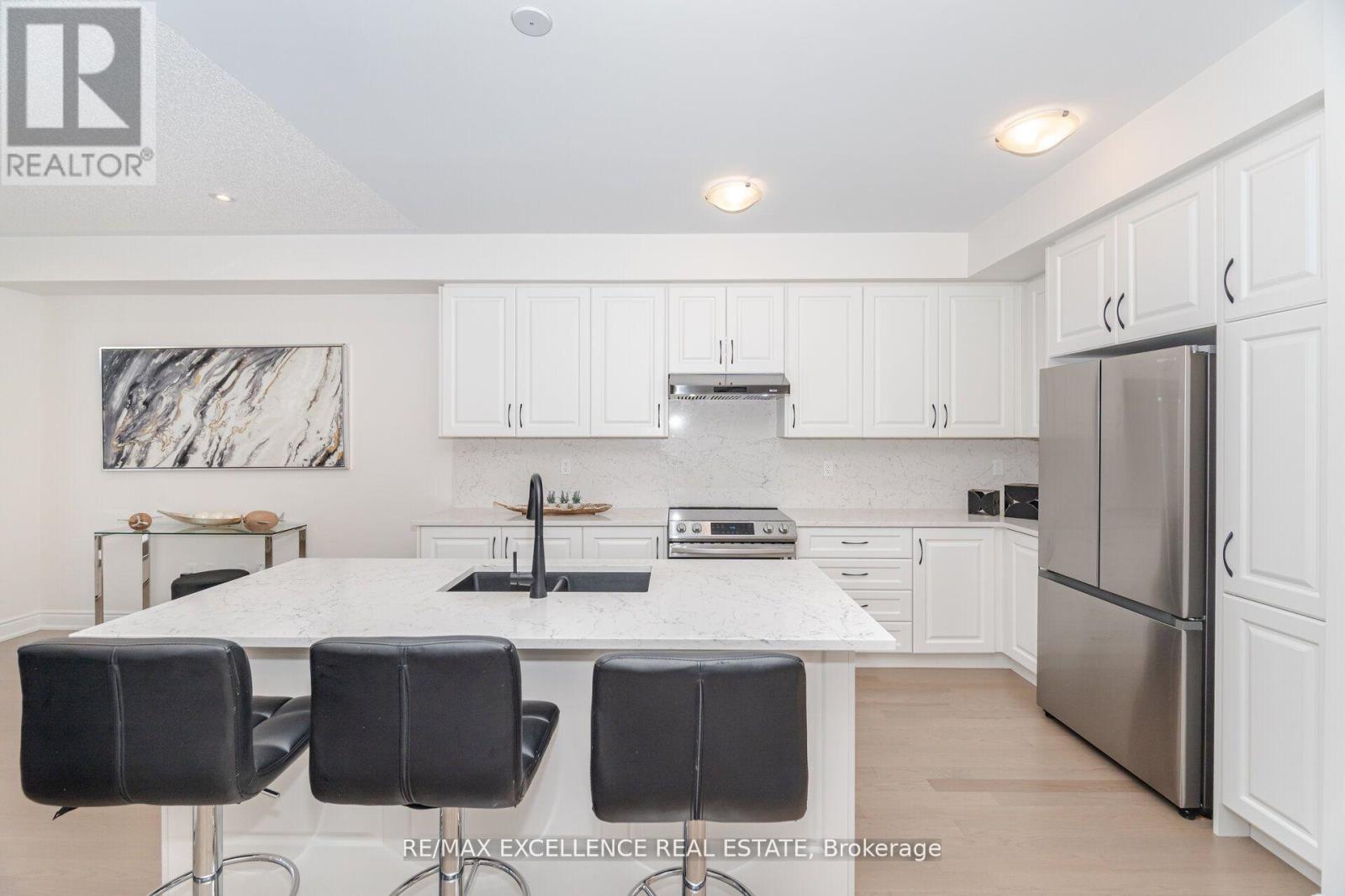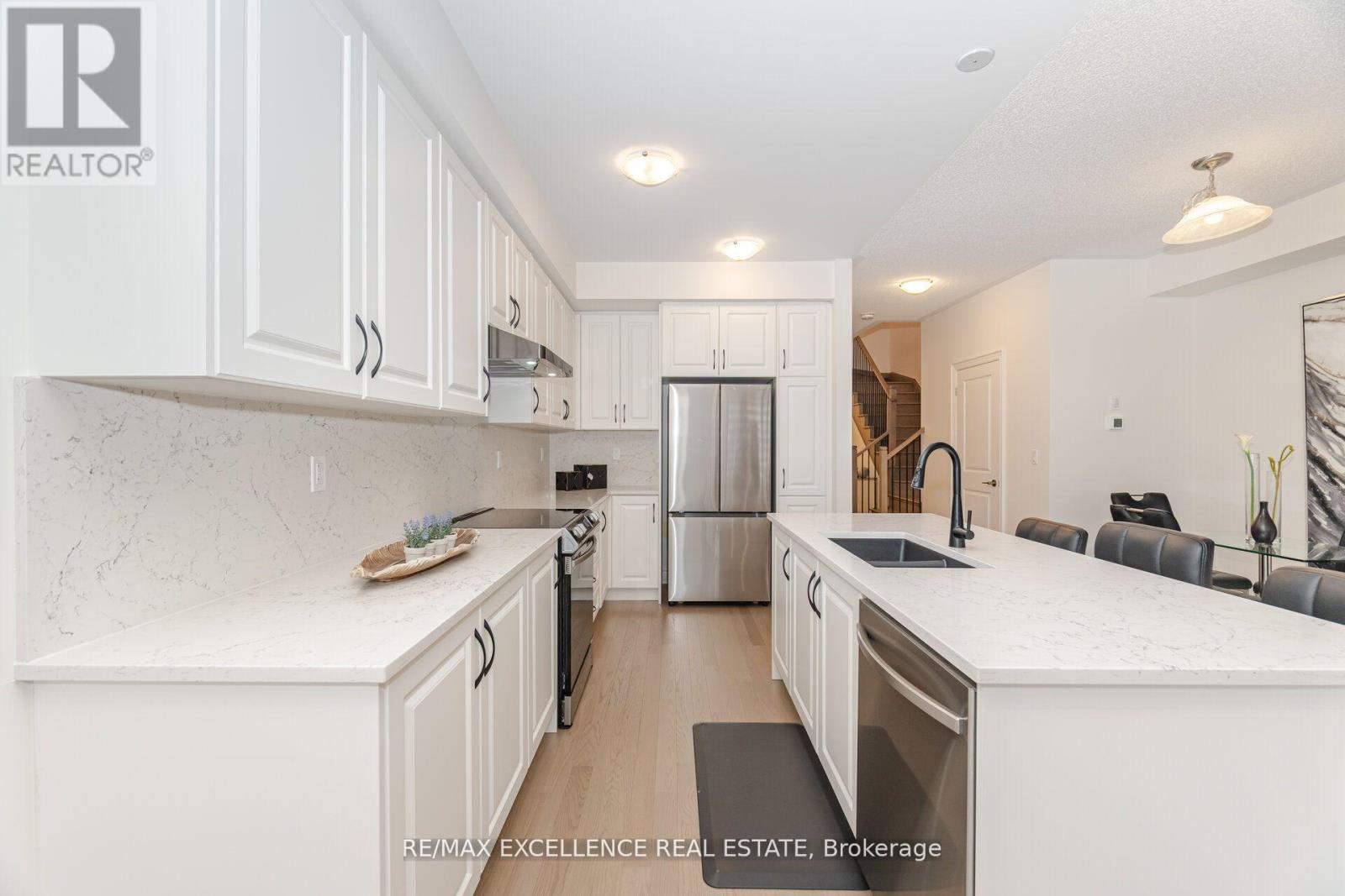 Welcome to 85 Bermondsey Way! This stunning 2-year-old upgraded freehold townhome in thedesirable Bram West community offers exceptional value and modern living with 4 spaciousbedrooms and 3.5 baths. Featuring 9 ceilings, pot lights on the main floor, elegant hardwoodfloors throughout (no carpet), and an open-concept layout perfect for entertaining. Thechef-inspired kitchen boasts quartz countertops, matching backsplash, upgraded soft-closecabinetry, stainless steel appliances, and a functional center island. The primary suiteincludes a spa-like grand ensuite, while additional highlights include hardwood stairs withwrought iron spindles, second-floor laundry, parking for 3 vehicles with no sidewalk, anddirect garage access. Conveniently located near Hwy 407 & 401, transit, schools, parks, golf,shopping and future community amenities. Built by award-winning Great Gulf Homes, this propertytruly combines luxury, location, and lifestyle! (id:51158)