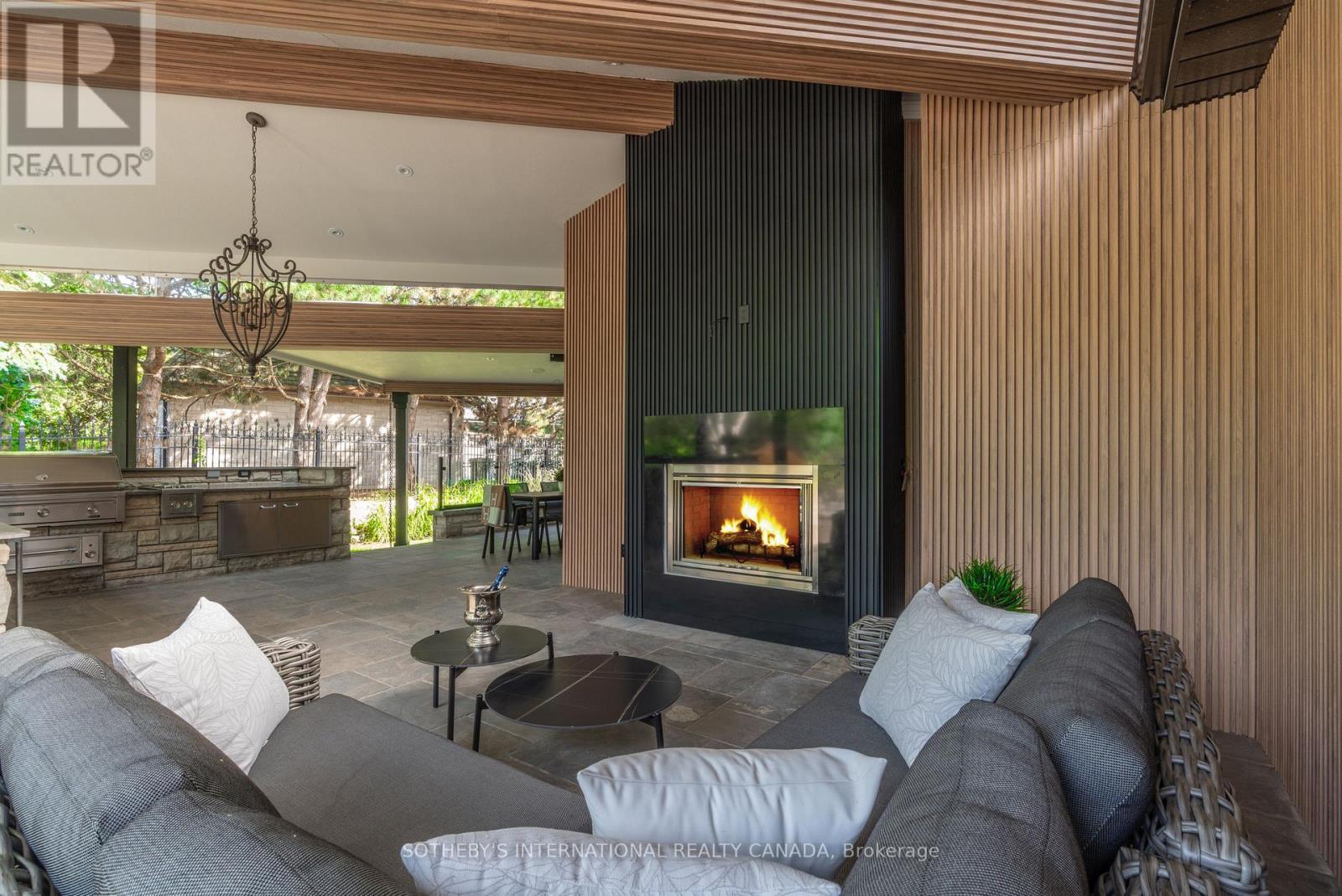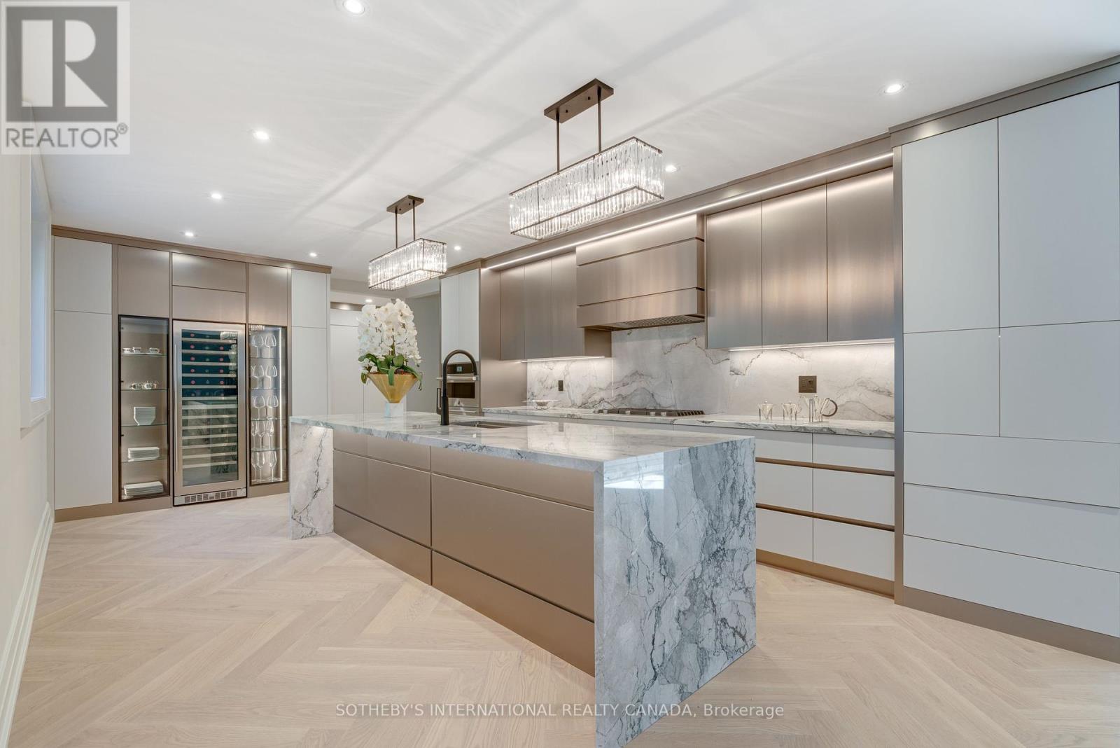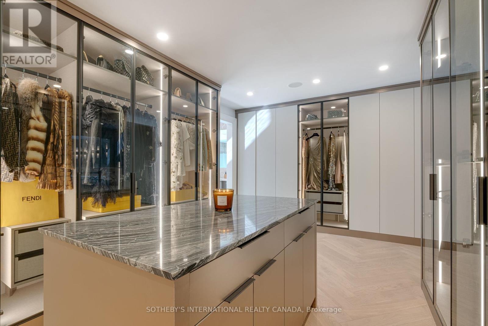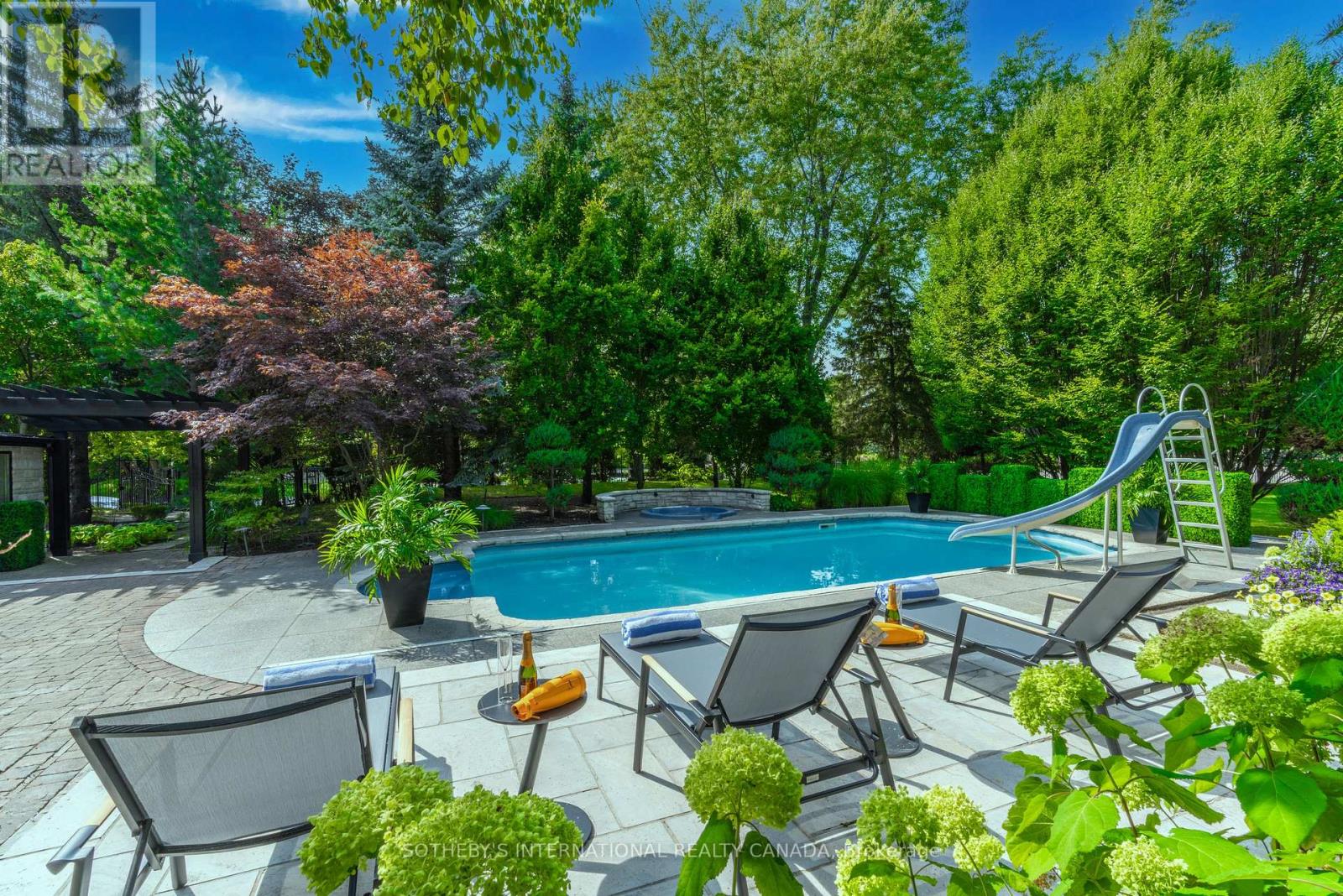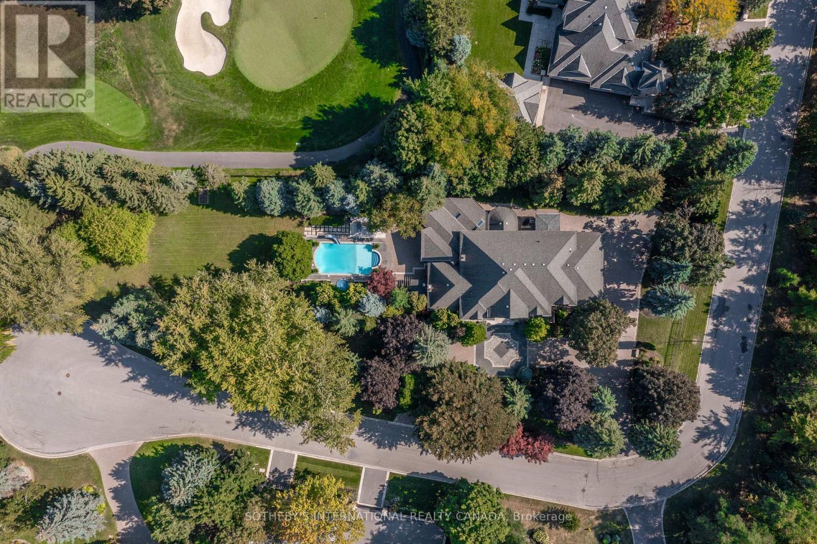 Fully renovated, this 5+1-bedroom, 8-bathroom transitional estate backs onto holes 6 and 7 of the prestigious National Golf Course in Woodbridge. Set on a private 1+ acre lot with dual-gated entrances, intricate stonework, professional landscape lighting, mature trees, and striking black glass doors at both the entrance and garages, the property blends quiet elegance with secure living. Inside, refined craftsmanship is showcased through slab stone finishes, marble fireplaces, and a grand reception entrance with a 3-storey floating staircase. The residence offers: A primary suite with a Fendi Casa inspired walk-in closet and spa-like bath, ensuite baths and built-in closets in every upper-level bedroom; 3+1 kitchens and 2 laundry rooms for ultimate convenience; a wellness area with heated floors, change room, powder room and contemporary spa-shower plus direct pool access. Media and games rooms, sauna, home gym (or nanny's suite), and a dedicated space for a customized panic room. The resort-style backyard is designed for entertaining with an inground pool, covered loggia with outdoor kitchen and fireplace, dining and seating areas, and open, park-like grounds perfect for growing an organic vegetable garden or children's play. Parking for 15 vehicles includes a 3-car garage with lift-ready capacity. Move-in ready before Christmas, this estate combines contemporary luxury, privacy, and security - perfect for the discerning buyer. *Some pictures are virtually furnished. (id:51158)
