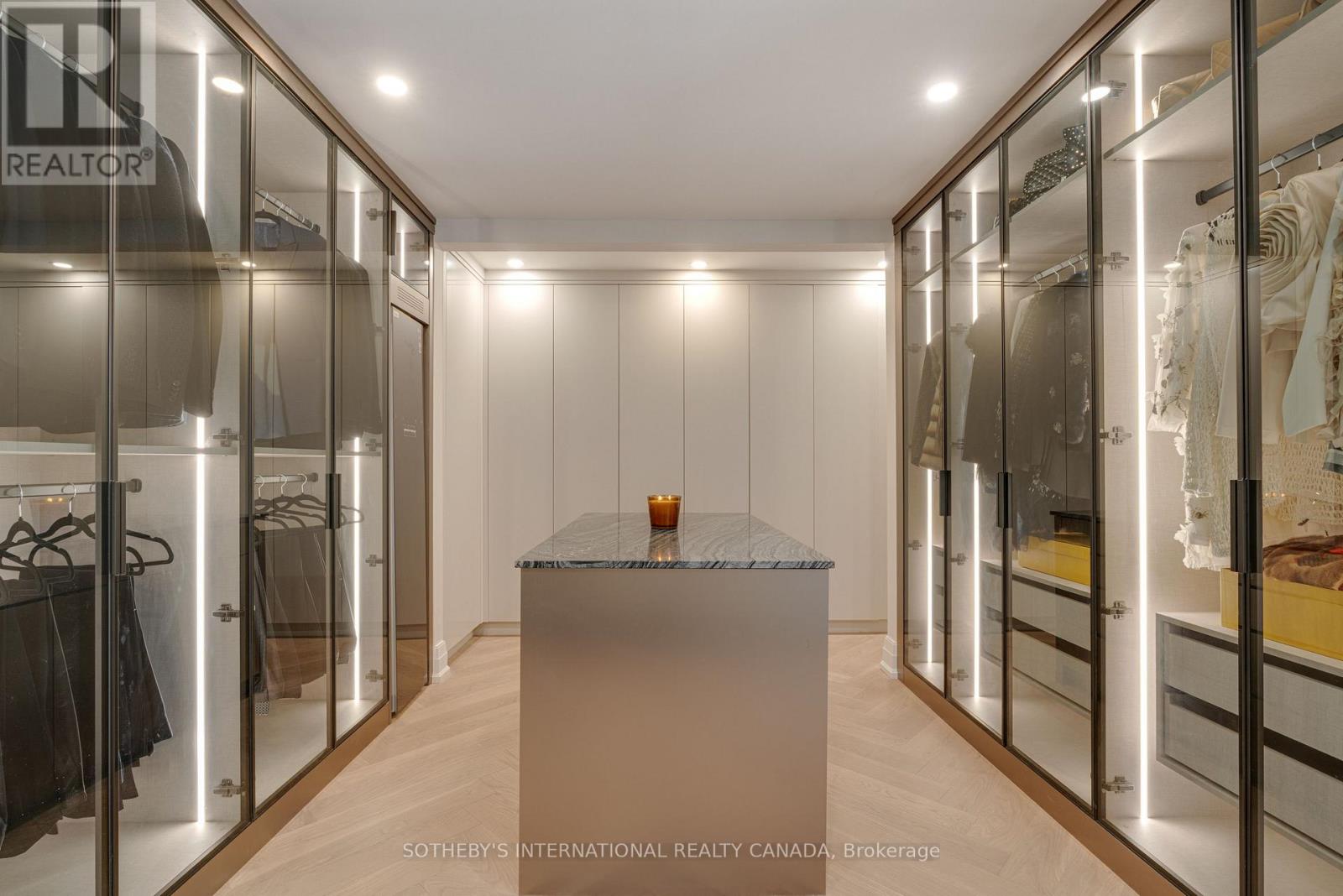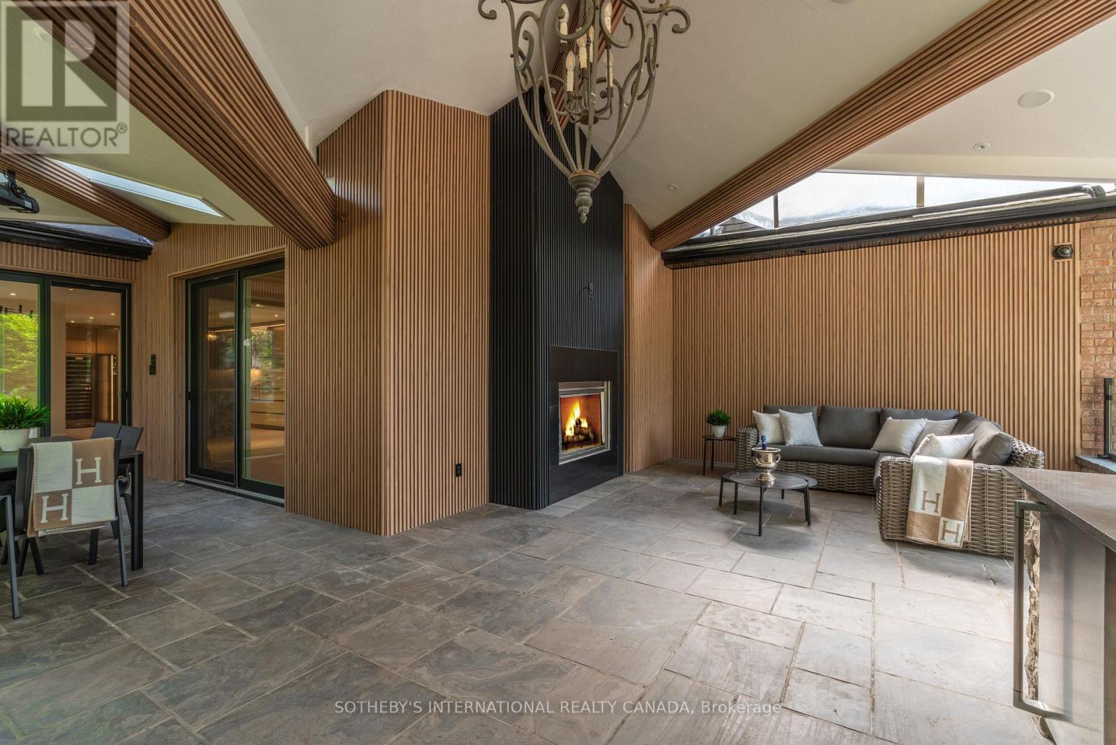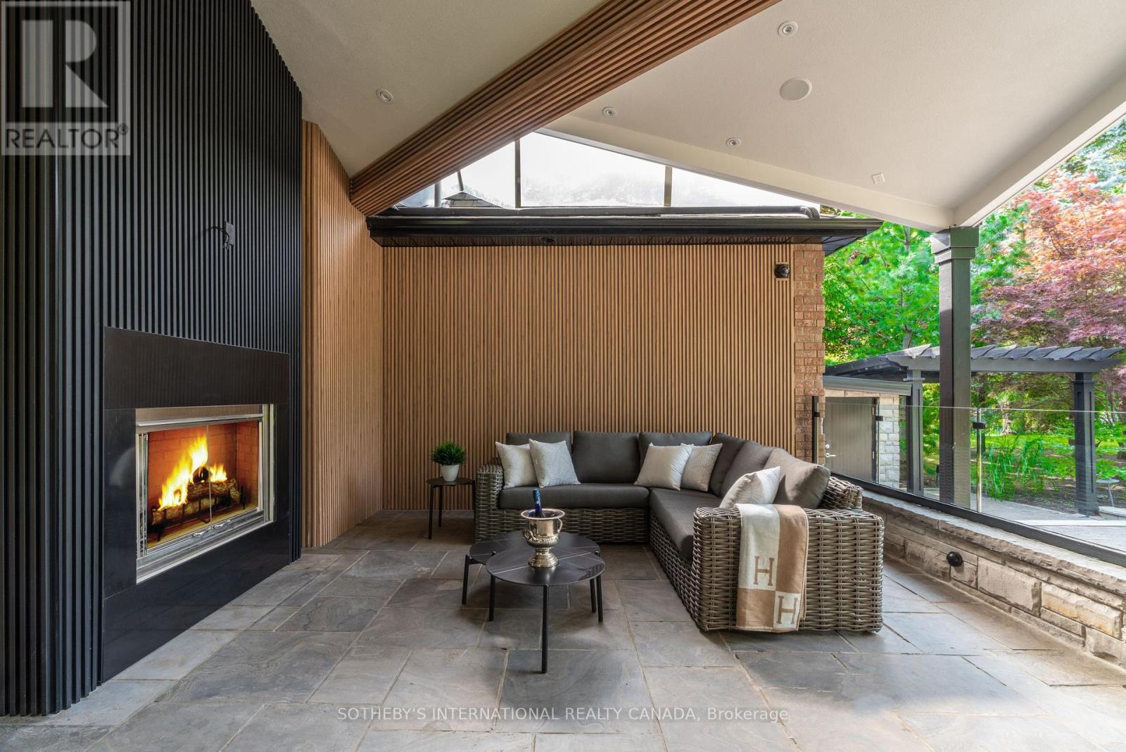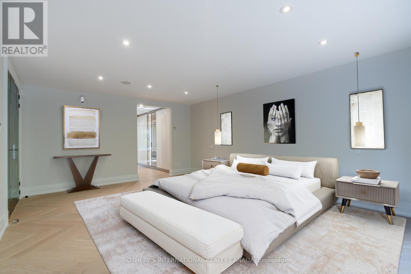 Fully renovated, this 5+1-bedroom, 8-bathroom transitional estate backs onto holes 6 and 7 of the prestigious National Golf Course in Woodbridge. Set on a private 1+ acre lot with dual-gated entrances, intricate stonework, professional landscape lighting, mature trees, and striking black glass doors at both the entrance and garages, the property blends quiet elegance with secure living. Inside, refined craftsmanship is showcased through slab stone finishes, marble fireplaces, and a grand reception entrance with a 3-storey floating staircase. The residence offers: A primary suite with a Fendi Casa inspired walk-in closet and spa-like bath, ensuite baths and built-in closets in every upper-level bedroom; 3+1 kitchens and 2 laundry rooms for ultimate convenience; a wellness area with heated floors, change room, powder room and contemporary spa-shower plus direct pool access. Media and games rooms, sauna, home gym (or nanny's suite), and a dedicated space for a customized panic room. The resort-style backyard is designed for entertaining with an inground pool, covered loggia with outdoor kitchen and fireplace, dining and seating areas, and open, park-like grounds perfect for growing an organic vegetable garden or children's play. Parking for 15 vehicles includes a 3-car garage with lift-ready capacity. Move-in ready before Christmas, this estate combines contemporary luxury, privacy, and security - perfect for the discerning buyer. *Some pictures are virtually furnished. (id:51158)