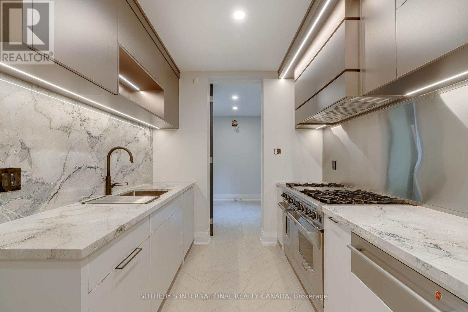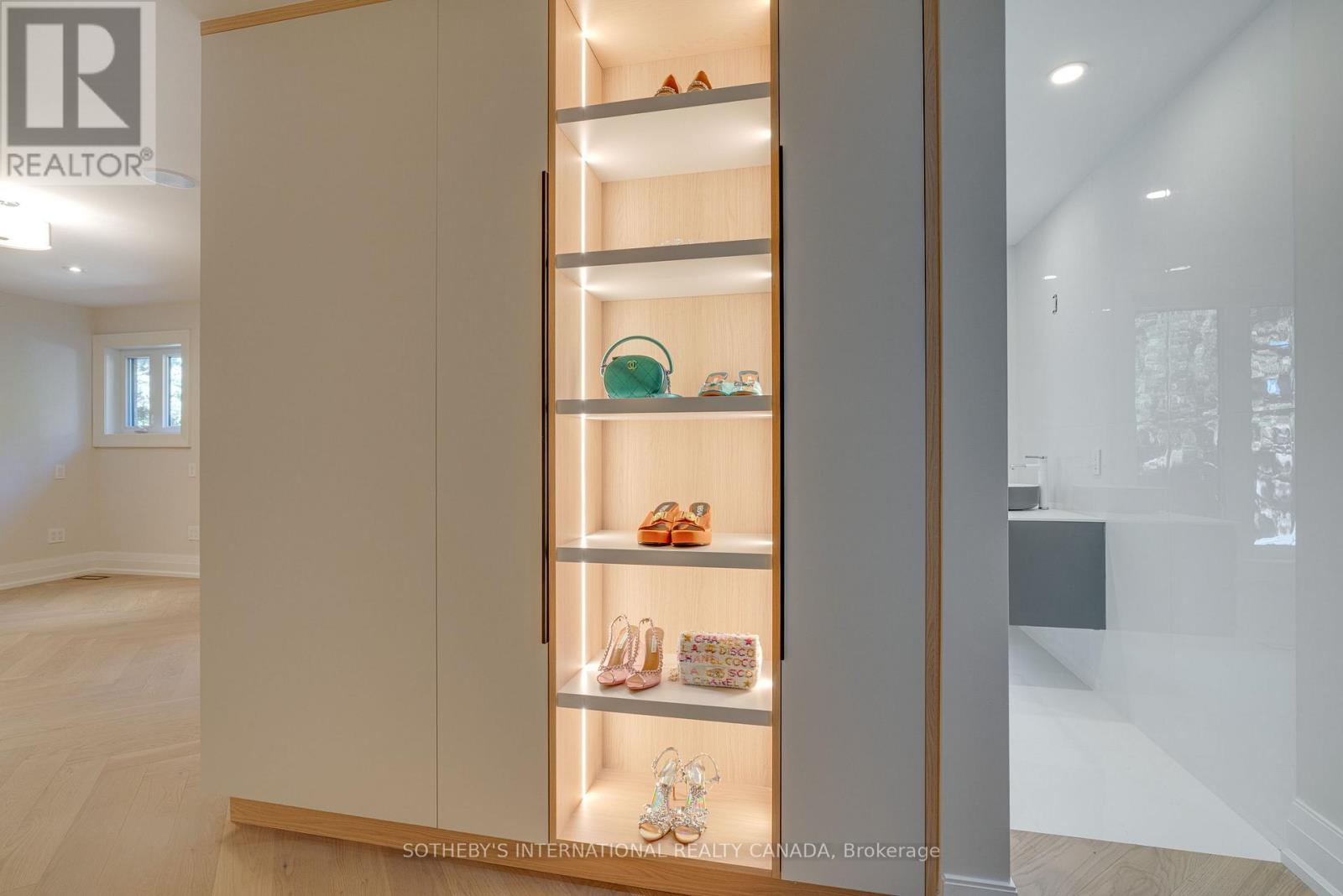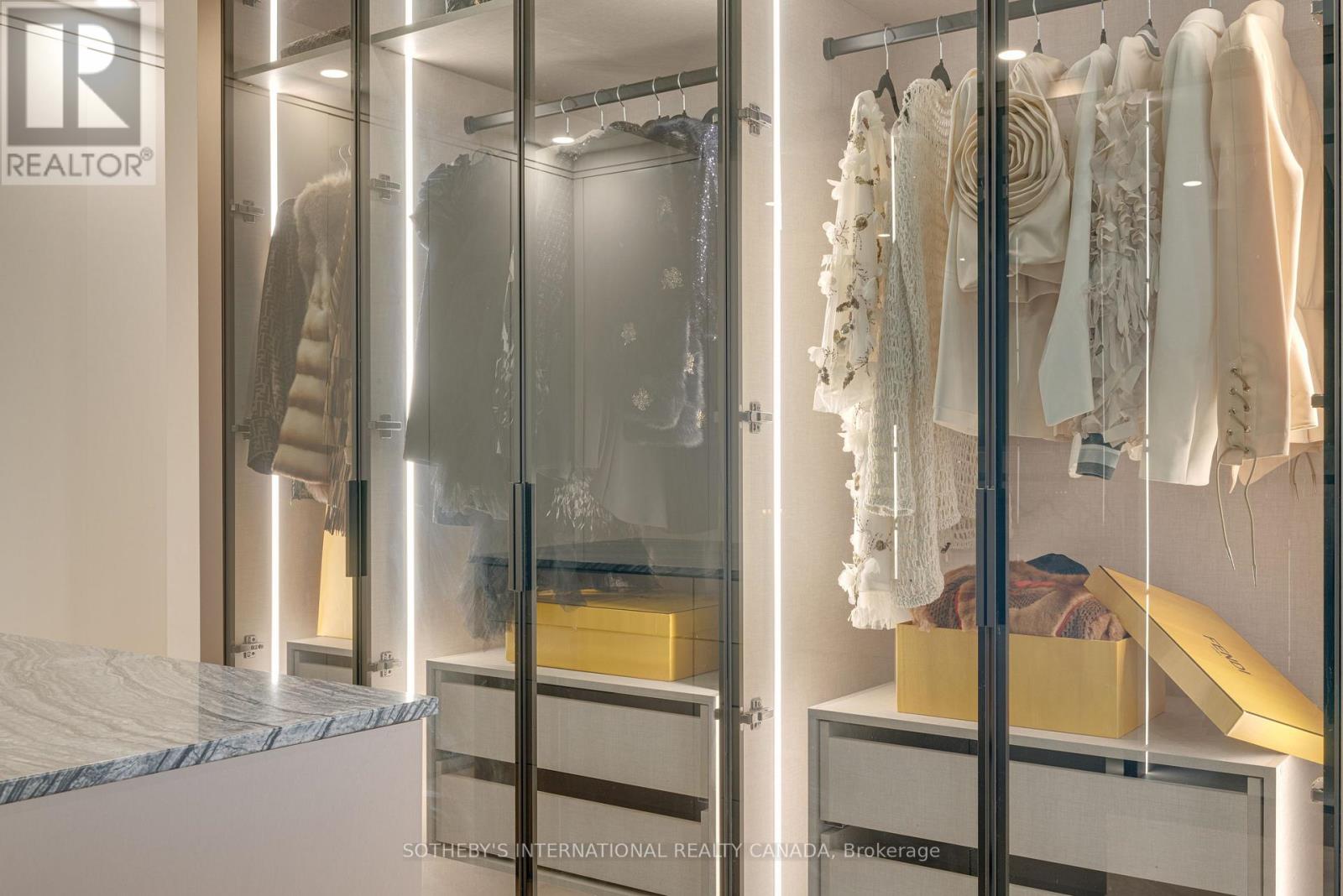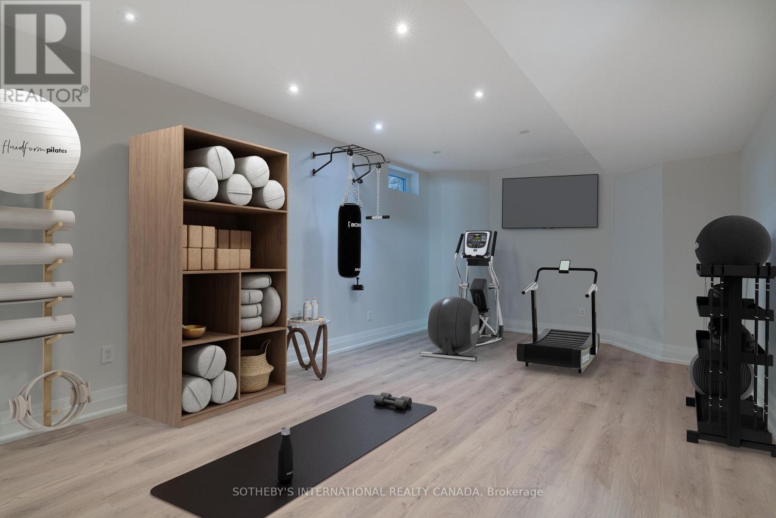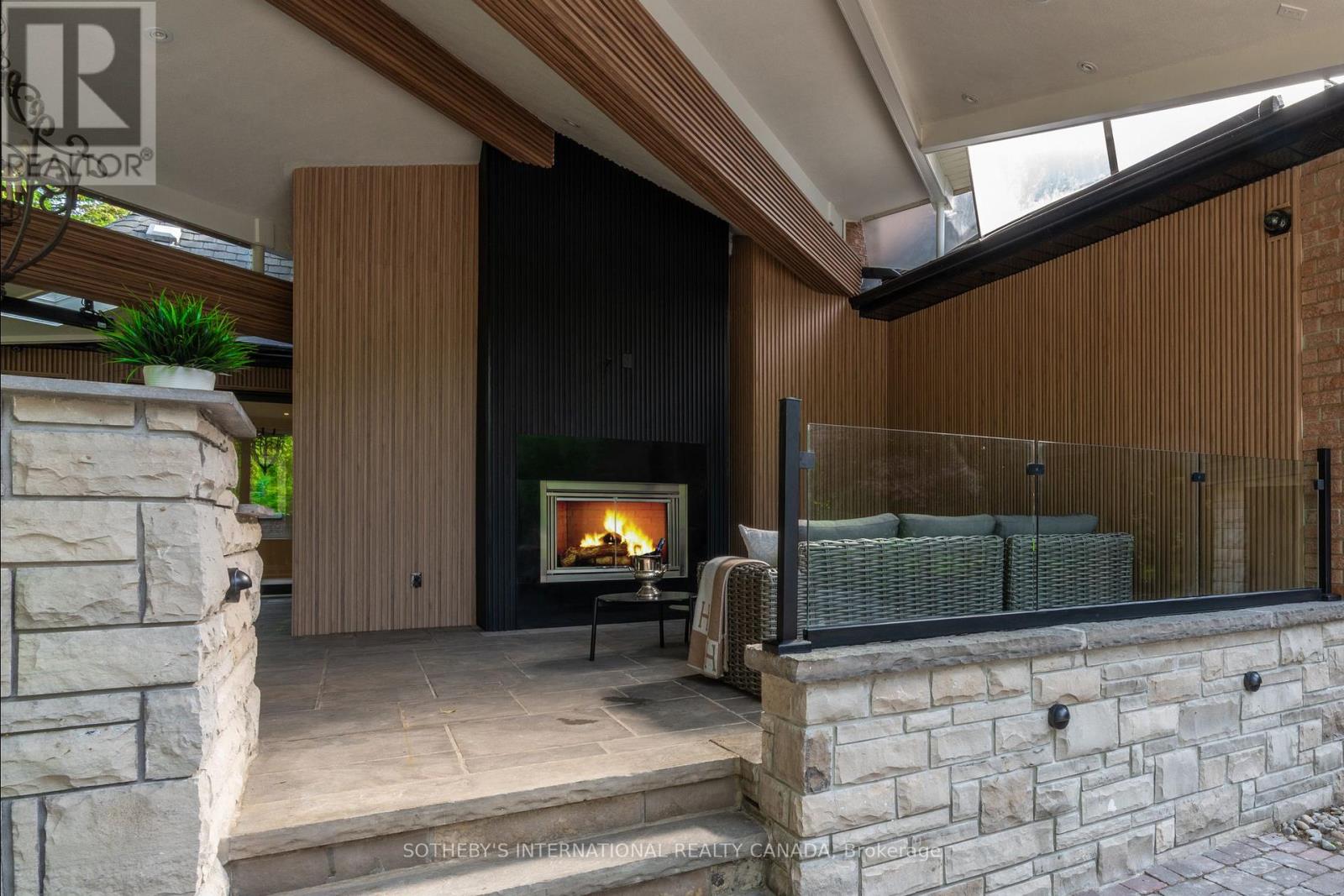 Fully renovated, this 5+1-bedroom, 8-bathroom transitional estate backs onto holes 6 and 7 of the prestigious National Golf Course in Woodbridge. Set on a private 1+ acre lot with dual-gated entrances, intricate stonework, professional landscape lighting, mature trees, and striking black glass doors at both the entrance and garages, the property blends quiet elegance with secure living. Inside, refined craftsmanship is showcased through slab stone finishes, marble fireplaces, and a grand reception entrance with a 3-storey floating staircase. The residence offers: A primary suite with a Fendi Casa inspired walk-in closet and spa-like bath, ensuite baths and built-in closets in every upper-level bedroom; 3+1 kitchens and 2 laundry rooms for ultimate convenience; a wellness area with heated floors, change room, powder room and contemporary spa-shower plus direct pool access. Media and games rooms, sauna, home gym (or nanny's suite), and a dedicated space for a customized panic room. The resort-style backyard is designed for entertaining with an inground pool, covered loggia with outdoor kitchen and fireplace, dining and seating areas, and open, park-like grounds perfect for growing an organic vegetable garden or children's play. Parking for 15 vehicles includes a 3-car garage with lift-ready capacity. Move-in ready before Christmas, this estate combines contemporary luxury, privacy, and security - perfect for the discerning buyer. *Some pictures are virtually furnished. (id:51158)