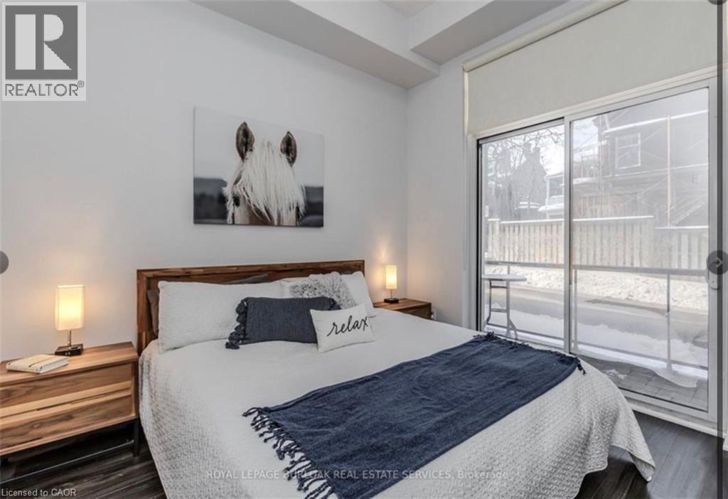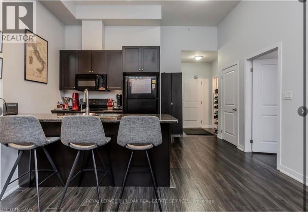 Welcome to City Square, a stylish and modern condo in Hamilton’s sought-after Durand neighbourhood! This stunning 1-bedroom, 1-bathroom unit offers 11 ft ceilings and oversized windows, flooding the open-concept space with natural light. The contemporary kitchen features a peninsula with a breakfast bar, a pantry, and sleek finishes, while the spacious bedroom offers private balcony access. The modern bathroom boasts a glass and tile shower with ample counter space. Enjoy the convenience of in-suite laundry and a bright, airy living space. The City Square building offers hotel-like amenities, including an exercise room, party room, media room, yoga room, and a two-floor terrace with BBQs, bike storage, and lockers. Located just steps from shopping, dining, and public transit, this condo is also close to St. Joseph’s Hospital and the Hunter Street GO Station—perfect for professionals and commuters. Don't miss this opportunity to live in one of Hamilton’s most vibrant communities! Book your showing today (id:51158)