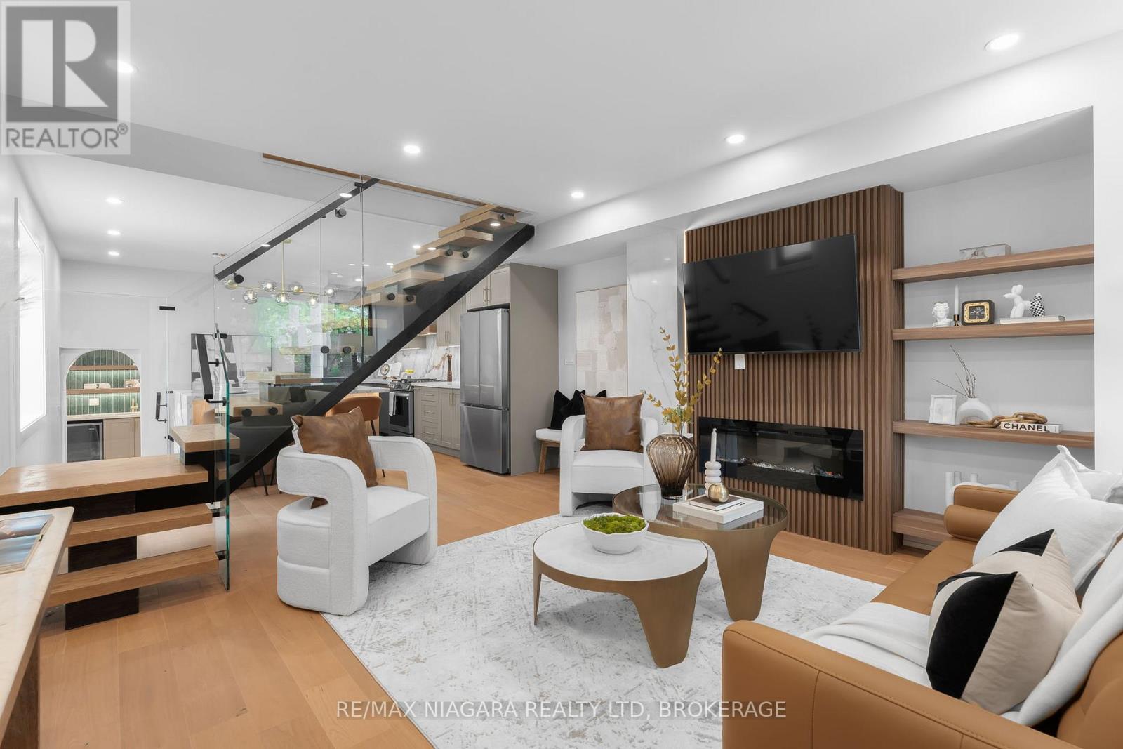 Welcome to 853 Sammon Avenue, a fully renovated detached home with a garage and ample parking, offering four bedrooms, three bathrooms, an open-concept living space, and a fully finished basement. This stunning property has been updated from top to bottom, featuring a new roof, windows, furnace, and an AC. The main floor showcases a bright, open-concept layout with a designer fireplace and a striking glass staircase featuring a monorail design that seamlessly separates the living and kitchen areas. The modern chef's kitchen boasts an oversized island with abundant storage, a dedicated coffee bar with extra cabinetry, a bar sink, and a bar fridge, perfect for both everyday living and entertaining. A convenient and stylish main-floor powder room completes this level. Upstairs, you'll find three spacious bedrooms and two beautifully finished bathrooms. The primary suite is generously sized and includes a luxurious spa-like ensuite. The remaining bedrooms share a modern and well-appointed full bath. The fully finished lower level offers additional living space, including a large recreation room with built-in storage, a laundry area, and a versatile fourth bedroom that can also serve as a home office or gym. Outside, enjoy a private, fenced backyard, perfect for children, pets, or outdoor gatherings. Situated in a desirable East York neighbourhood, this home is close to excellent schools, shopping, transit, and Woodbine Beach. This is a rare opportunity to move into a completely renovated home in a prime location, offering every modern convenience. (id:51158)